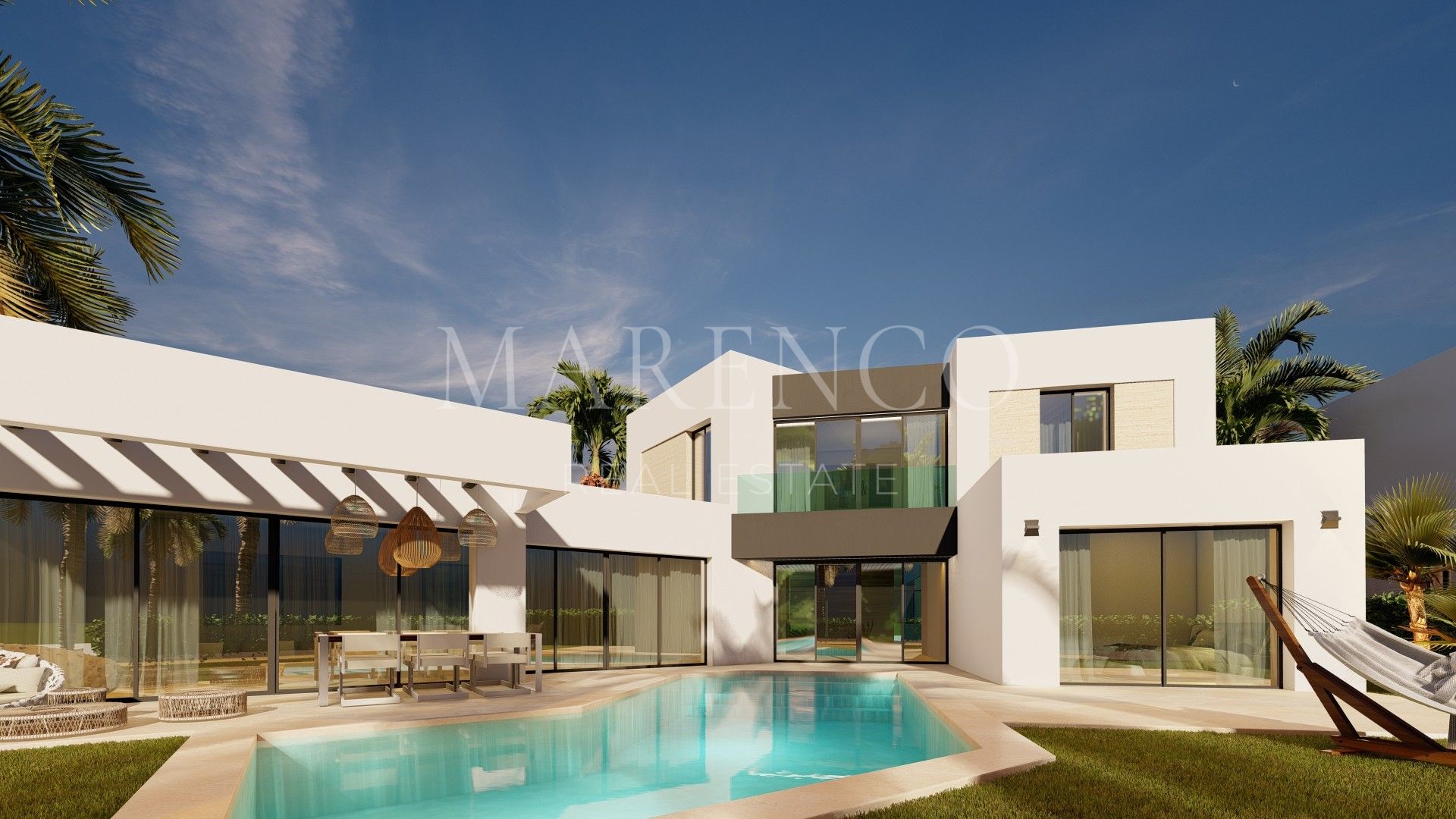 Willkommen bei den Oasis Levels Villas! Diese exklusive Wohnanlage besteht aus 17 freistehenden Villen entlang des 9. Lochs des Azata Golfplatzes in der wunderschönen Stadt Estepona in der Provinz Málaga. Diese luxuriösen Villen bieten einen Panoramablick auf das Mittelmeer und befinden sich in einer geschlossenen Wohnanlage mit 24-Stunden-Sicherheitsdienst.