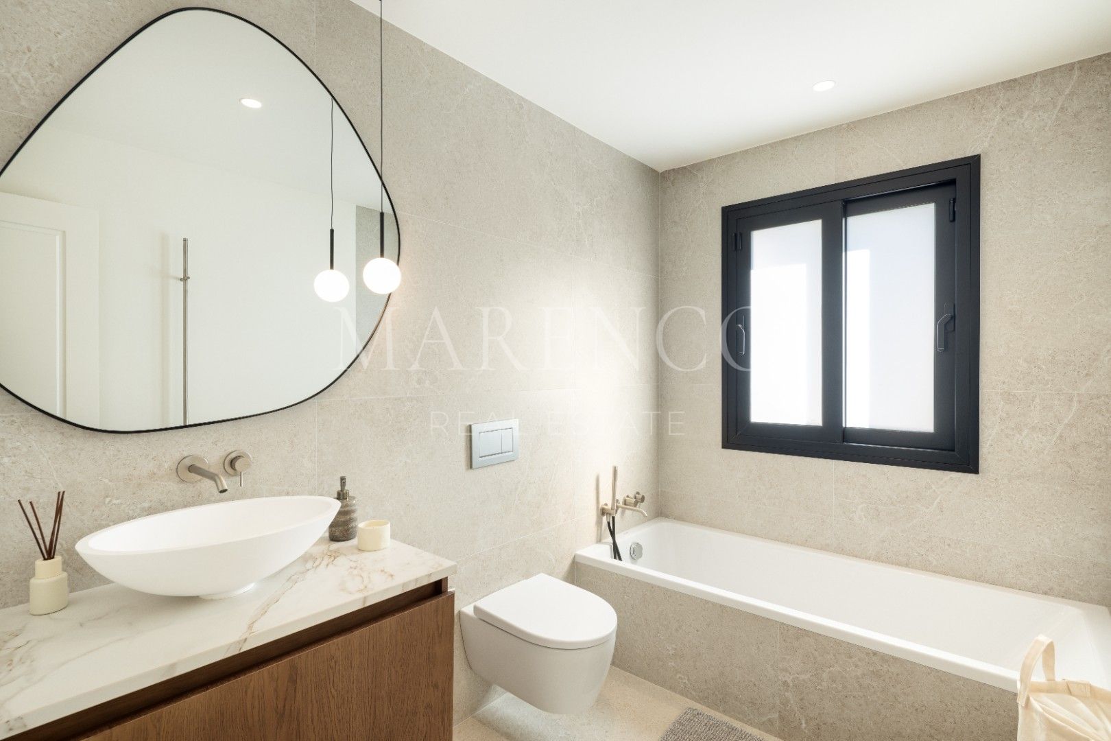 Die Außenbereiche zählen zu den größten Highlights, mit Terrassen, die darauf ausgelegt sind, das Klima der Costa del Sol zu genießen, einem überdachten Essbereich im Freien und einem privaten Garten mit mehreren Entspannungszonen. Die Südausrichtung sorgt für ganztägiges Tageslicht und schafft eine warme und einladende Atmosphäre.