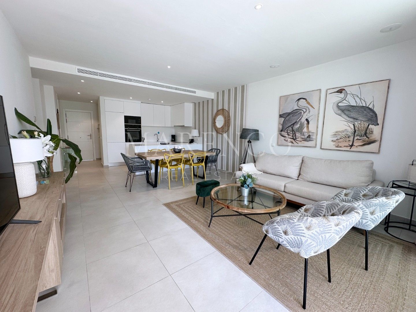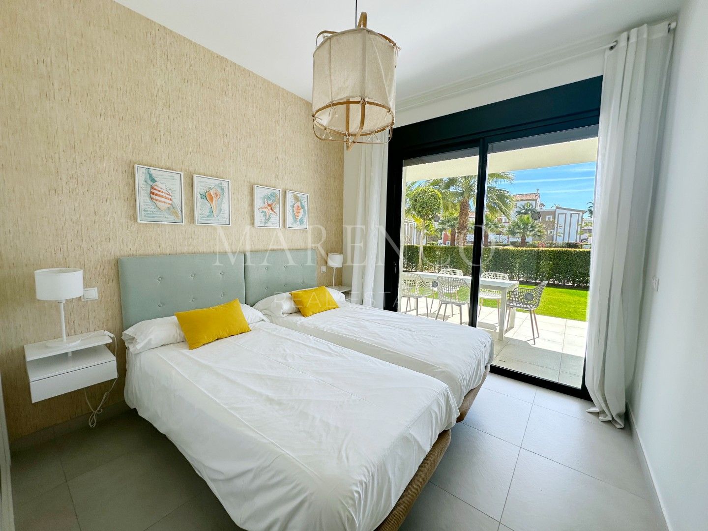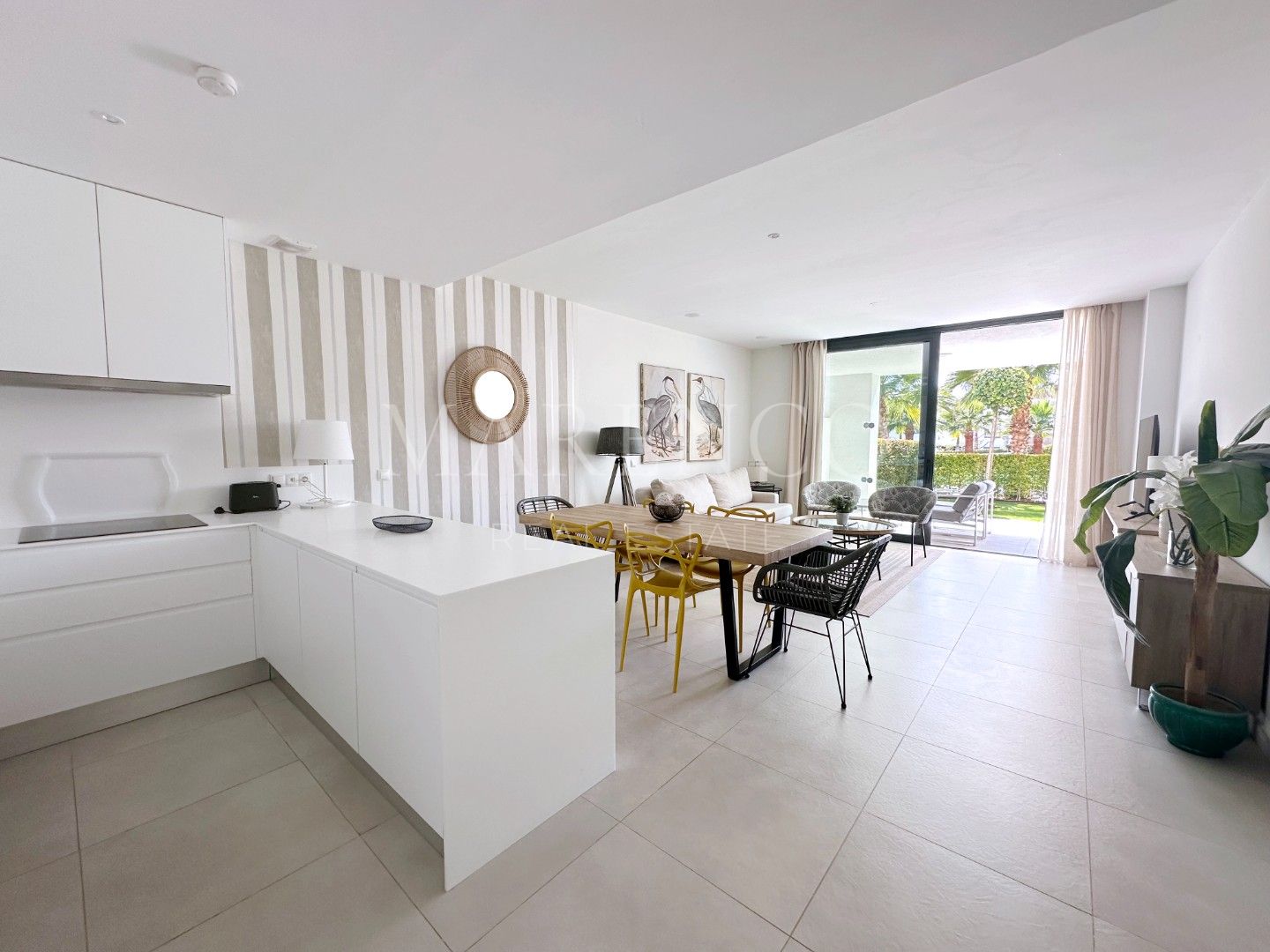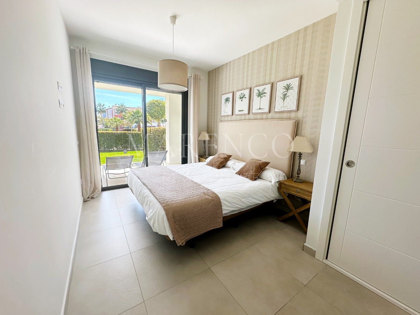 Erdgeschosswohnung zu verkaufen in El Campanario, Estepona Ost mit 2 Schlafzimmer. Maße: 136m² handlung.