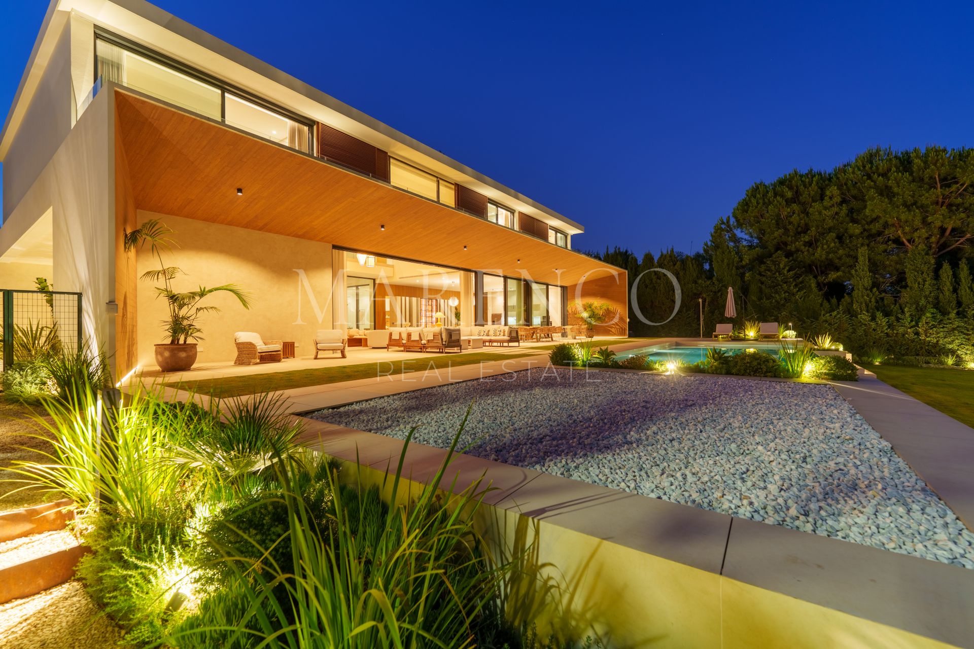 Der Außenbereich bietet ein unvergleichliches Erlebnis: privater Pool, gepflegte Gärten und großzügige Sonnen- und Schattenbereiche zum Entspannen und Essen im Freien. Die Südostausrichtung sorgt den ganzen Tag über für natürliches Licht, während das abgeschlossene Eingangstor und die private Garage für drei Fahrzeuge absolute Privatsphäre und Sicherheit gewährleisten. Intelligente Klima- und Beleuchtungssysteme vervollständigen dieses bezugsfertige Anwesen.
