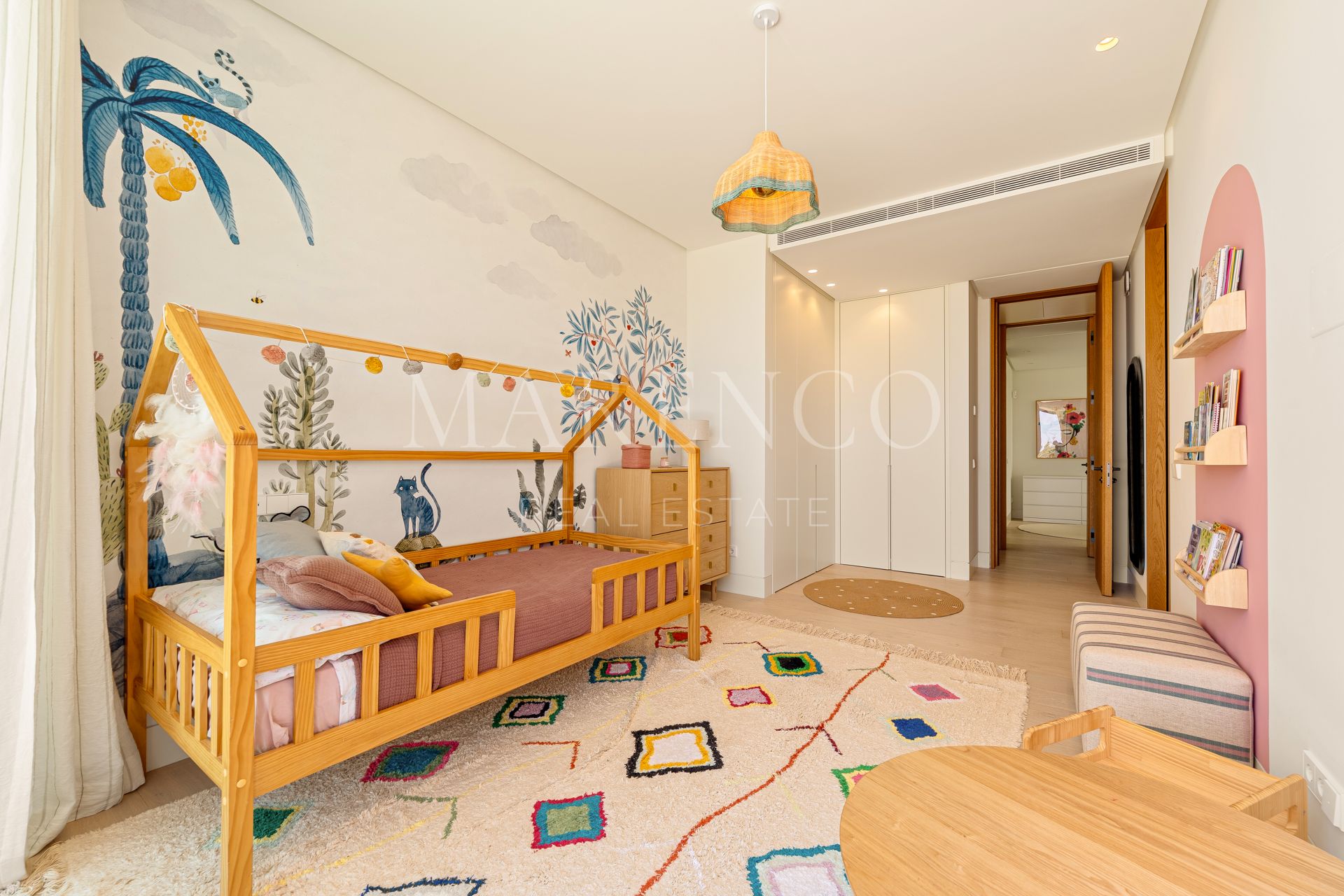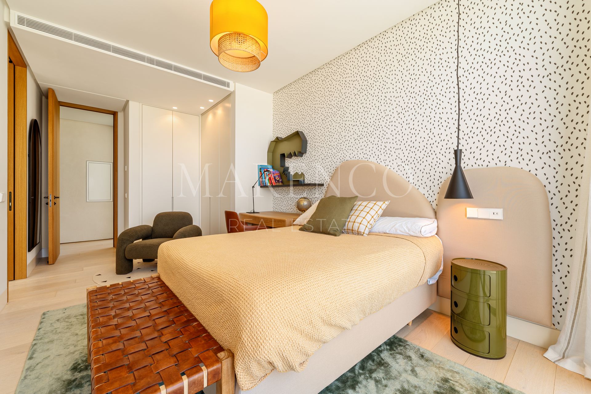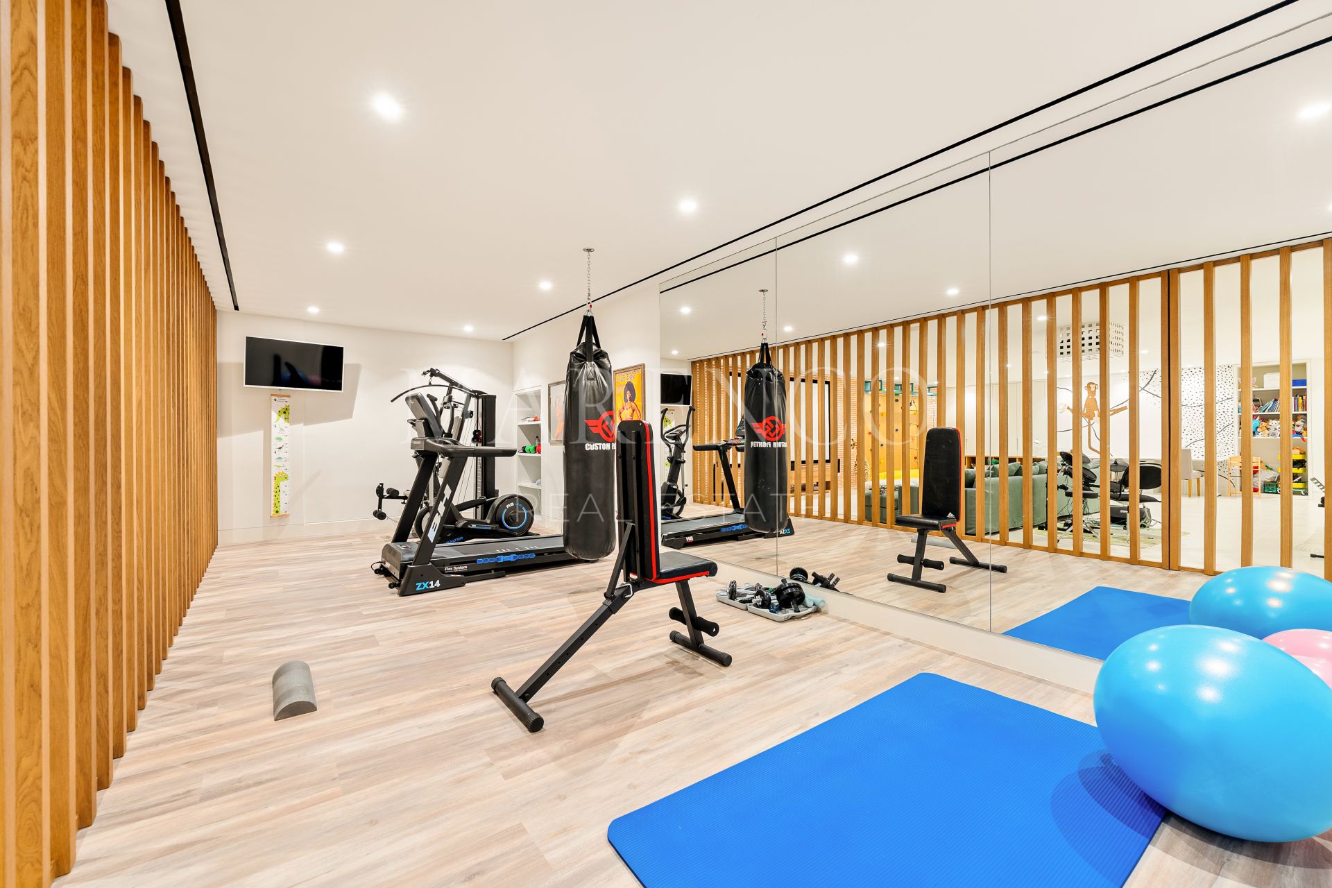 Das Haus verfügt über sechs Schlafzimmer und sieben Badezimmer, darunter eine prächtige Hauptsuite mit Ankleideraum und eigenem Bad. Im Untergeschoss befindet sich ein Bereich für Wellness und Freizeit mit privatem Fitnessraum, Multimedia-Zone und Unterhaltungsräumen sowie ein perfekt integriertes Büro zum Arbeiten von zu Hause aus. Jeder Raum wurde mit hochwertigen Materialien und größter Liebe zum Detail gestaltet.