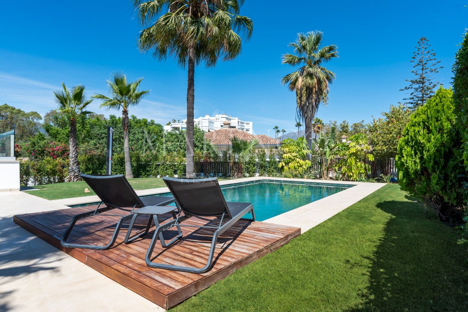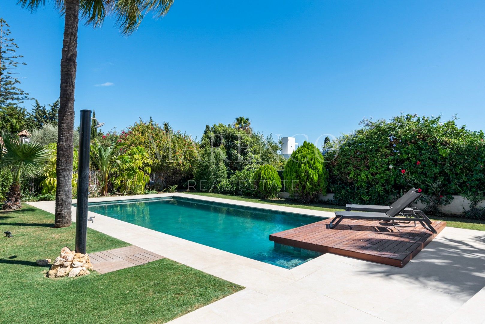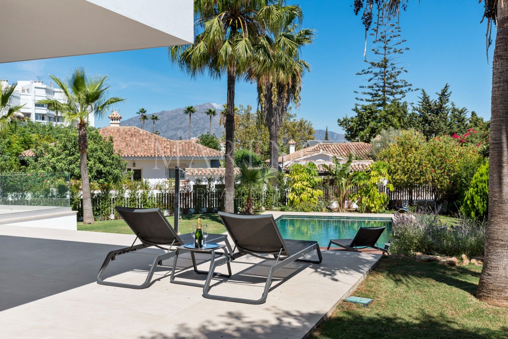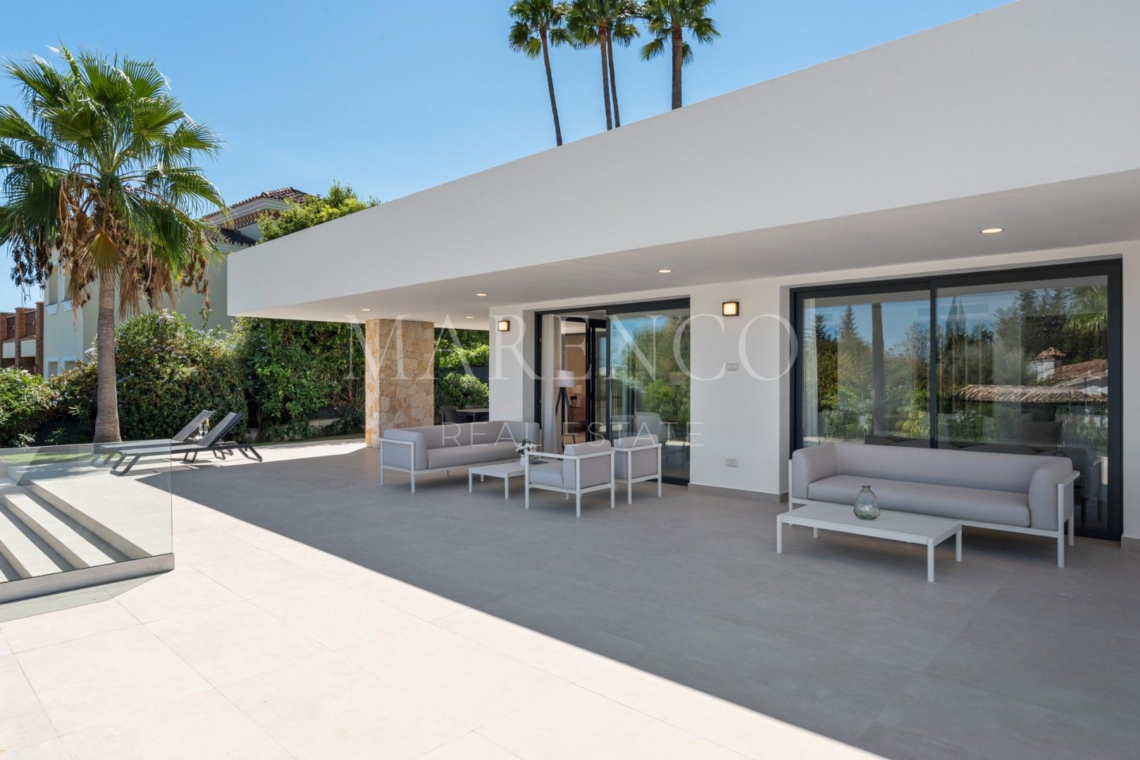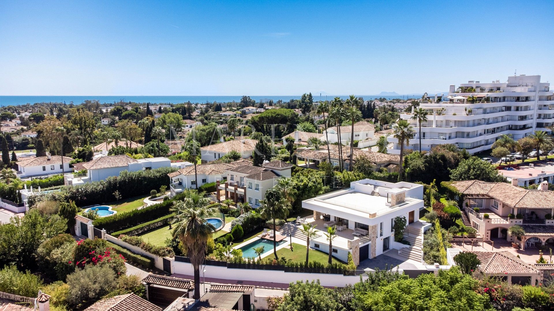 Tauchen Sie ein in den mediterranen Lebensstil in dieser beeindruckenden zeitgenössischen Villa in Guadalmina Alta, einer Residenz, die Eleganz, Komfort und eine privilegierte Lage vereint. Nur wenige Schritte vom renommierten Guadalmina Golf Club und Minuten vom Strand entfernt, lädt diese Immobilie dazu ein, sonnige Nachmittage am Pool, Abendessen auf der Panoramaterrasse und Momente der Ruhe in absoluter Privatsphäre zu genießen.