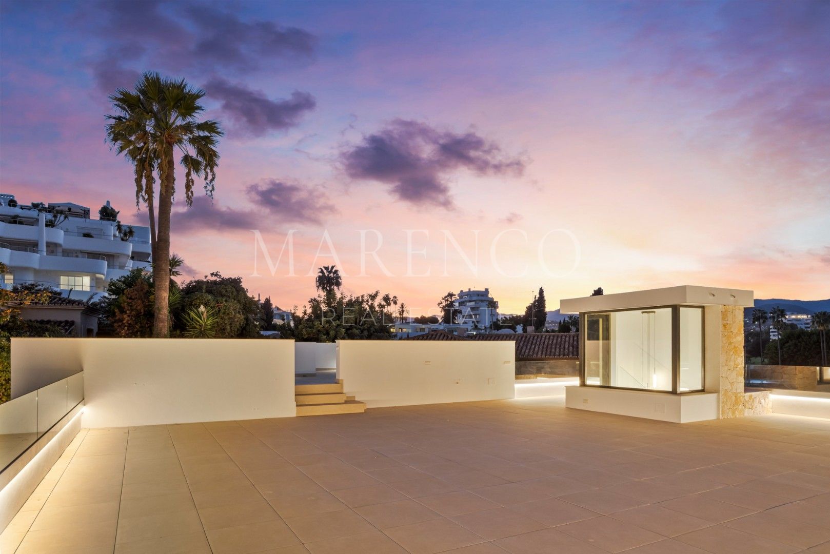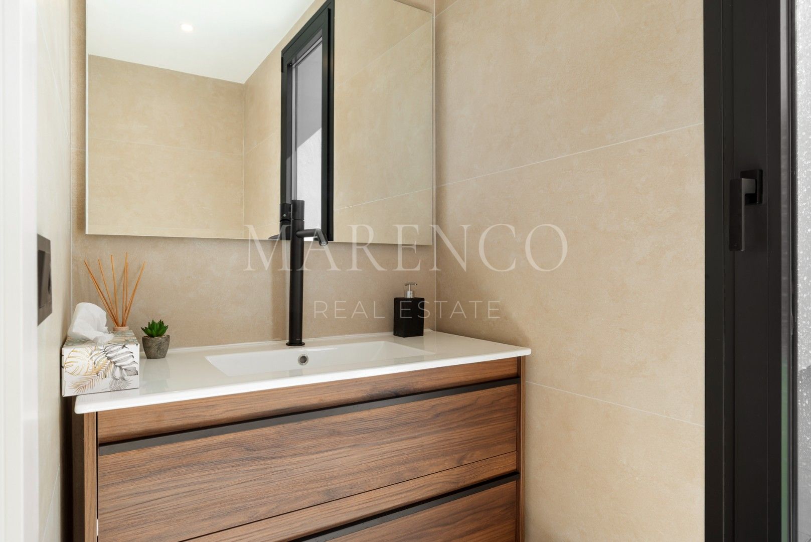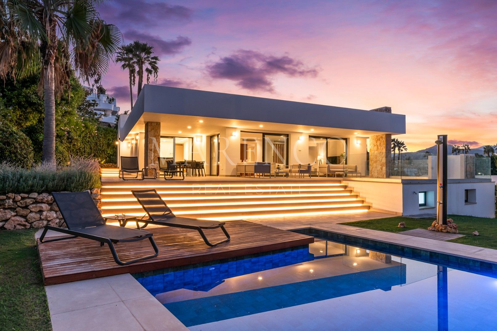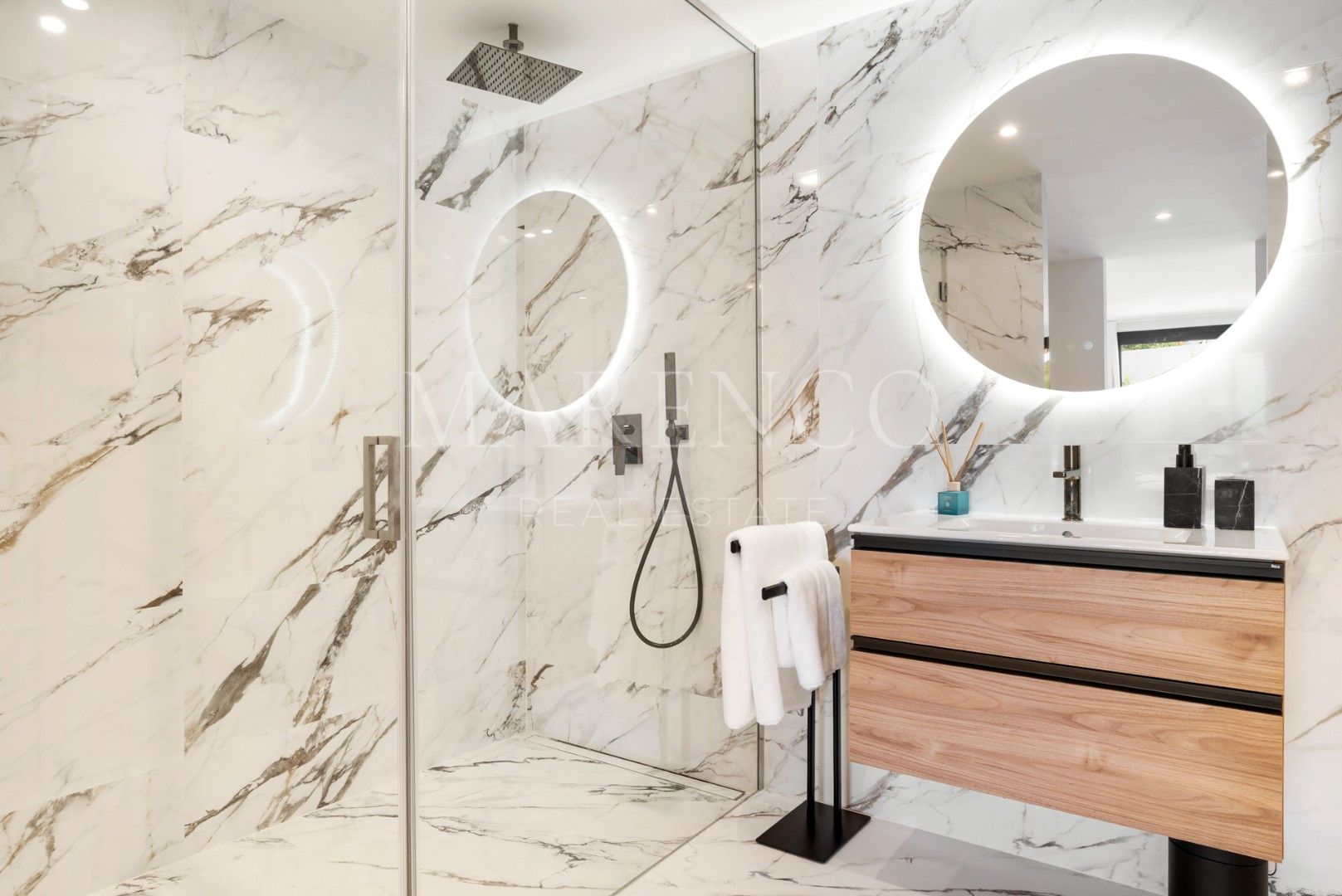 Mit einer bebauten Fläche von 320 m² auf einem Grundstück von 1.107 m² bietet diese Luxusvilla vier großzügige Schlafzimmer und vier moderne Badezimmer, mit einem offenen Grundriss, der Innen- und Außenbereiche harmonisch verbindet. Die offene Küche mit hochwertigen Geräten und eleganter Kochinsel führt in den hellen Wohn- und Essbereich, der auf eine Terrasse öffnet — ideal, um das Klima der Costa del Sol das ganze Jahr über zu genießen.
