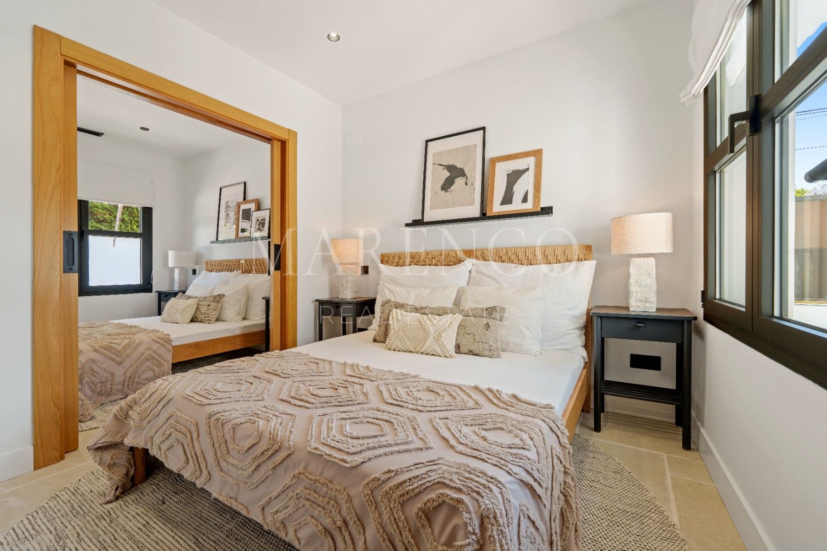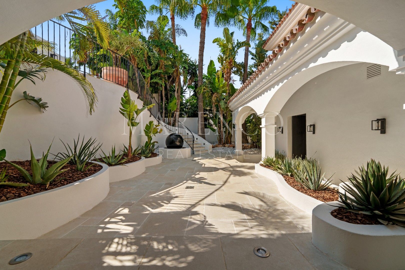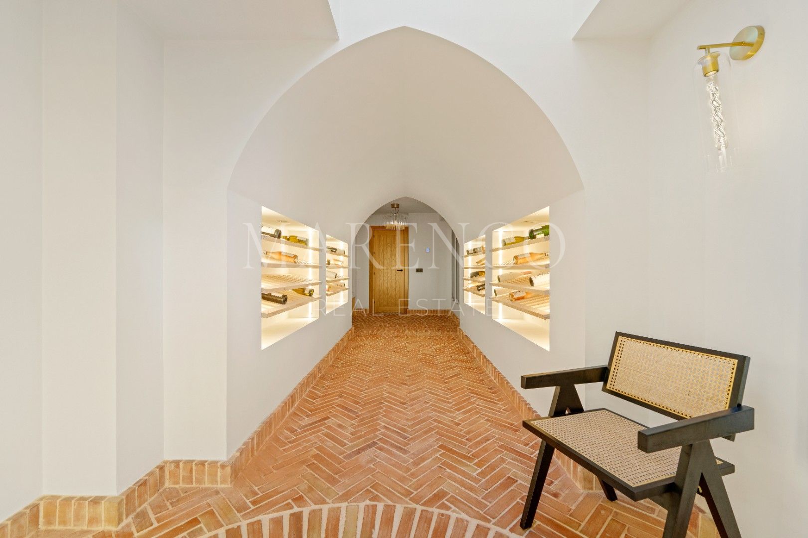 Entworfen für einen exklusiven Lebensstil bietet diese Luxusvilla in Nueva Andalucía spezielle Bereiche für Wohlbefinden und Unterhaltung. Sie verfügt über ein privates Fitnessstudio, einen erlesenen Weinkeller, ein Heimkino und einen Freizeitbereich, der sich ideal für Treffen mit Familie und Freunden eignet. Im Außenbereich umgeben liebevoll gestaltete Gärten einen privaten Pool, eine versenkte Lounge mit stimmungsvoller Beleuchtung sowie mehrere Ess- und Entspannungsbereiche im Freien – perfekt für Frühstücke mit Meerblick oder Abende unter den Sternen.