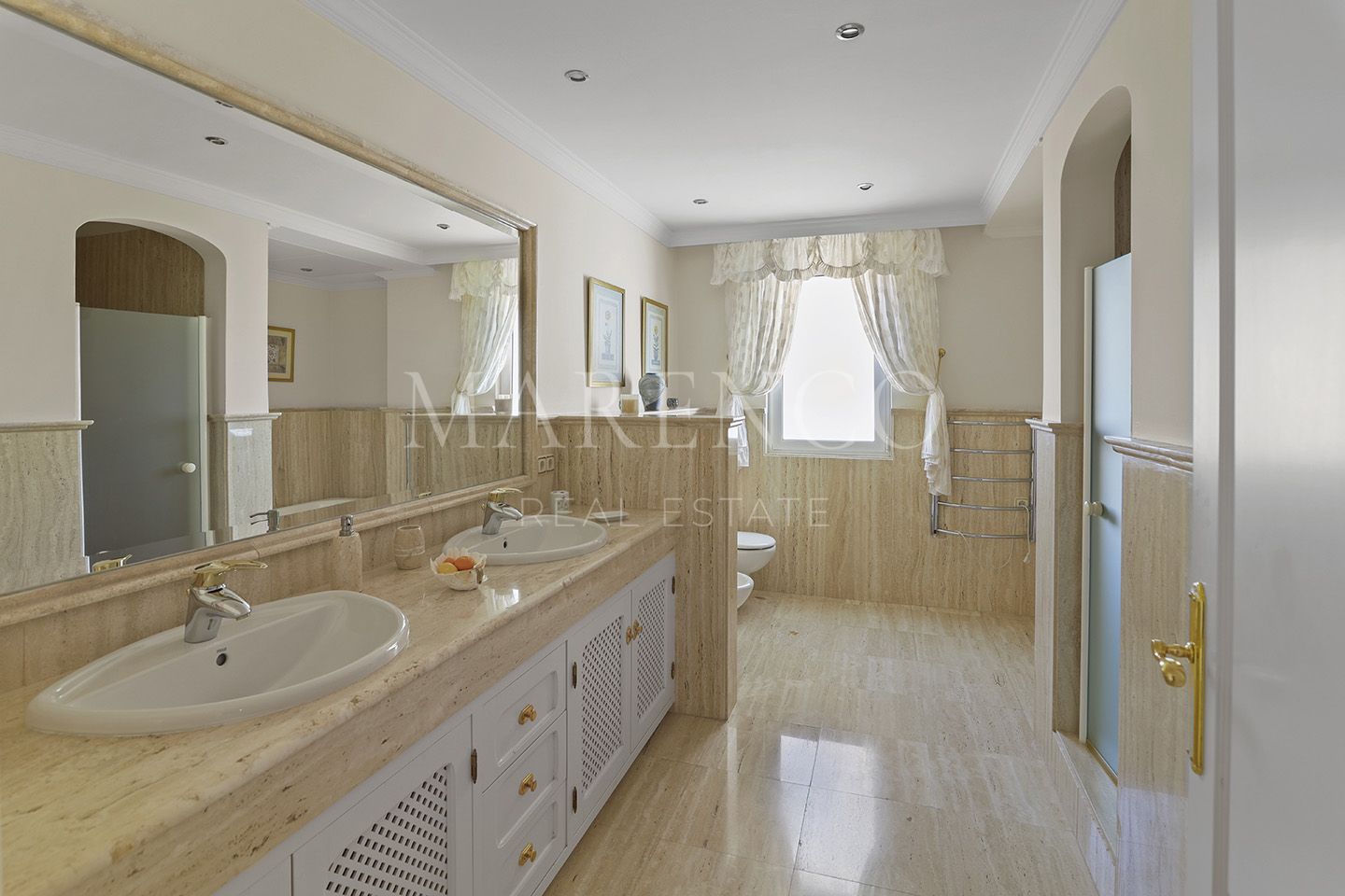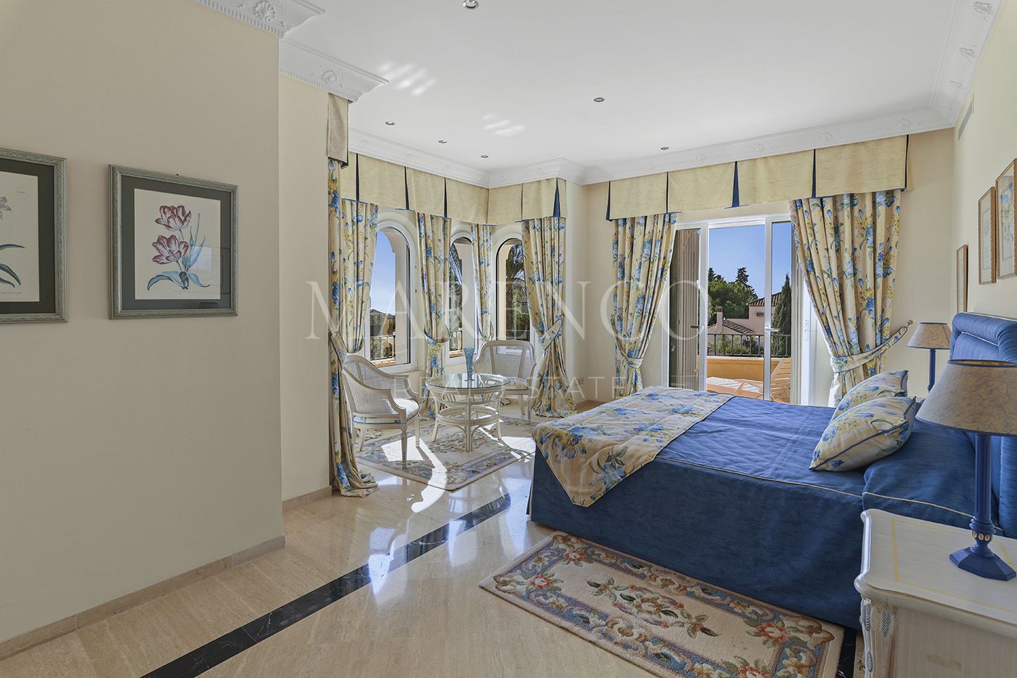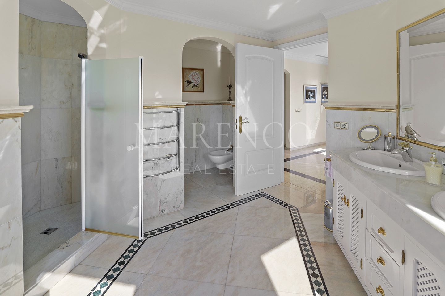 Diese Liegenschaft, orientation Süden, haben folgende Ausstattung: private terrasse, nähe von einkaufsmöglichkeiten, klimaanlage, nahe ortszentrum, nahe schulen, meerblick, küche ausgestattet, bergsicht, offener kamin, golfsicht, marmorböden, meer/strandnähe, nähe golfplatz, keller, gästezimmer, doppelverglasung, einbauschränke, hervorragender zustand, grill, blick auf garten, blick aufs schwimmbad und panoramablick.