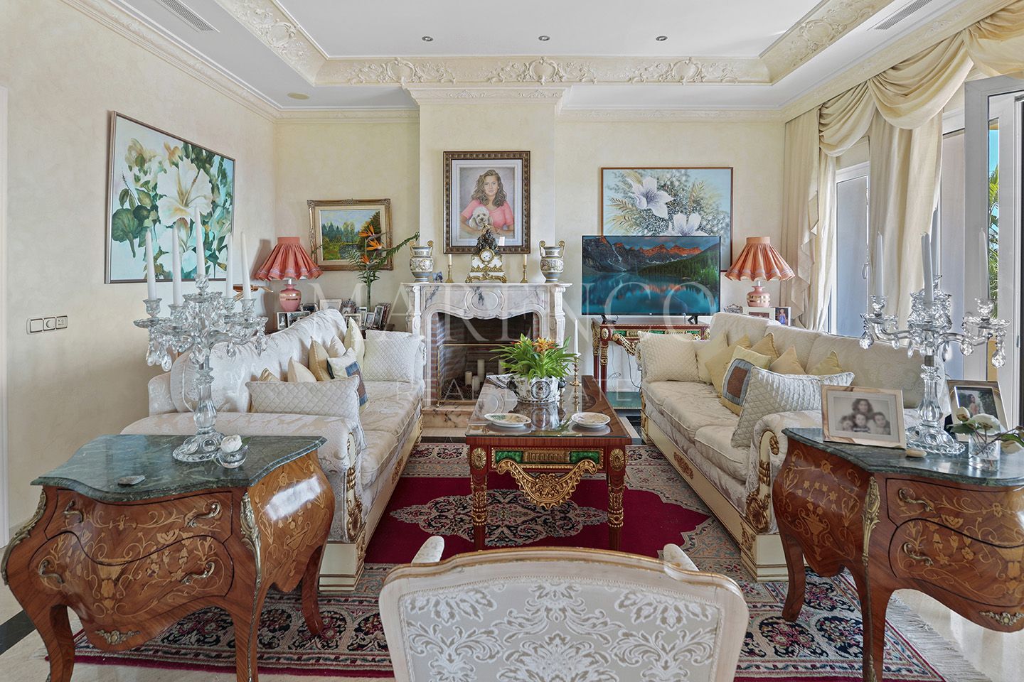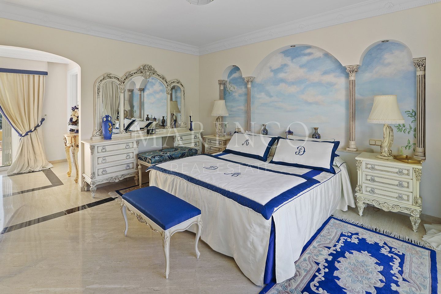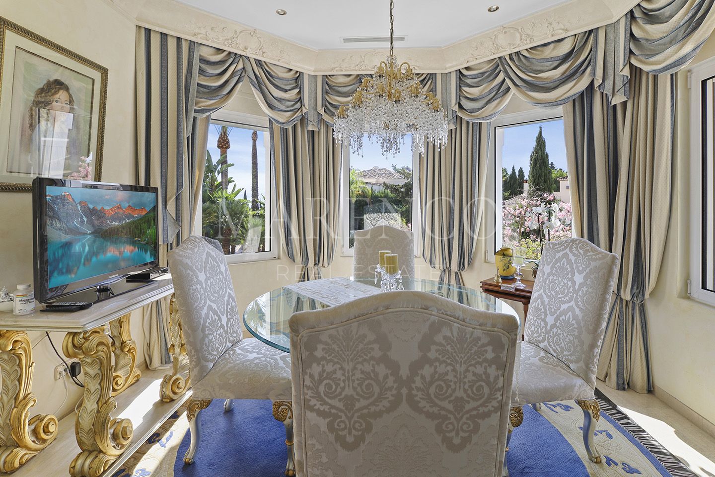 Diese Liegenschaft, orientation Süden, haben folgende Ausstattung: private terrasse, nähe von einkaufsmöglichkeiten, klimaanlage, nahe ortszentrum, nahe schulen, meerblick, küche ausgestattet, bergsicht, offener kamin, golfsicht, marmorböden, meer/strandnähe, nähe golfplatz, keller, gästezimmer, doppelverglasung, einbauschränke, hervorragender zustand, grill, blick auf garten, blick aufs schwimmbad und panoramablick.