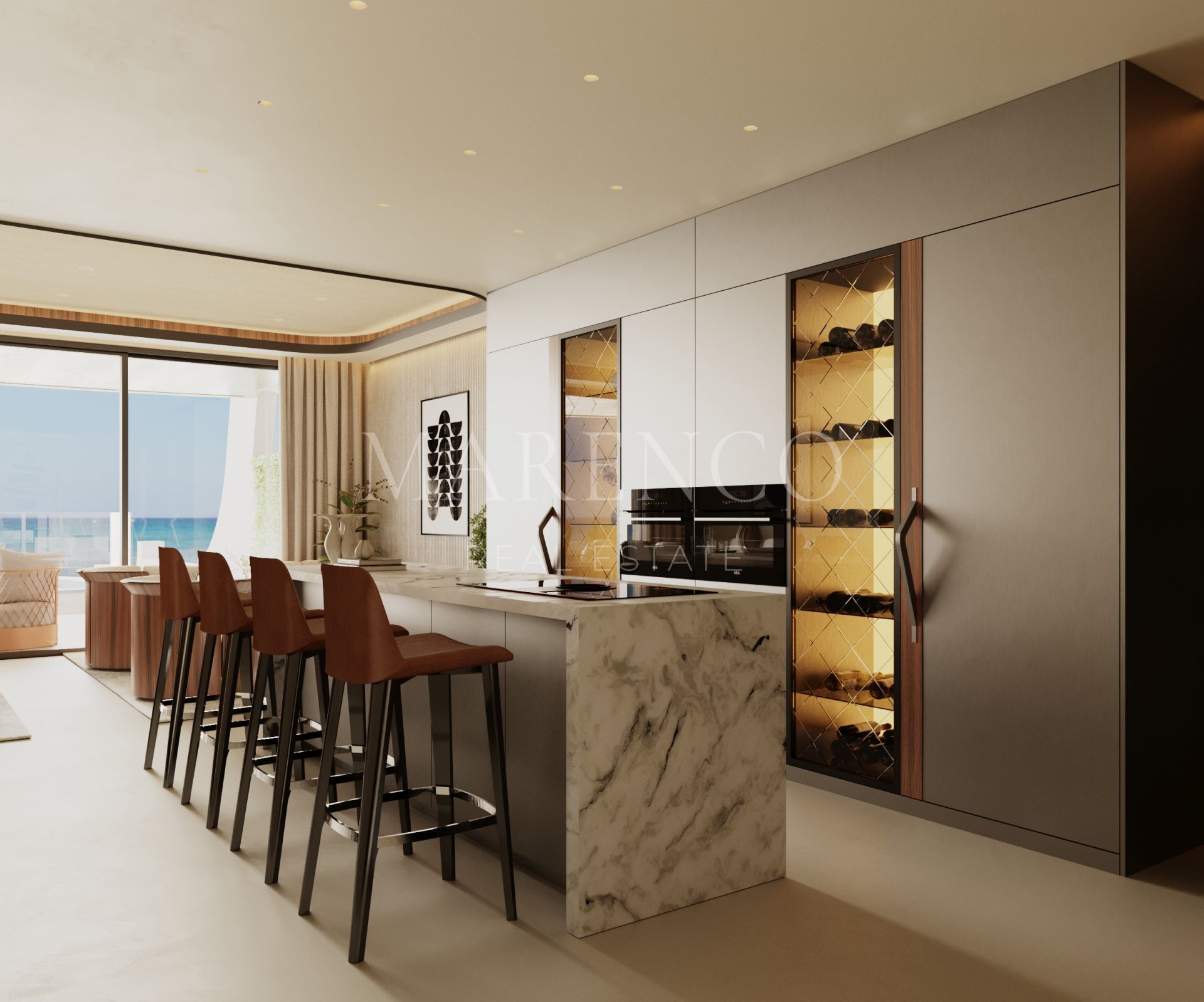Bij AÍDA komen design en architectuur samen om een meeslepende en verfijnde woonervaring te bieden, het resultaat van minutieuze planning. De strategische opzet van het project, met een beperkt aantal woningen, garandeert optimale oriëntatie, het beste zeezicht en een uniek gevoel in elke woning. De interieurs, ontworpen voor een vloeiende overgang tussen binnen- en buitenruimtes, nodigen uit tot ontspanning en plezier zonder afbreuk te doen aan privacy. Het meubilair en de decoratie, gesigneerd door Bentley Home, voegen een extra laag van exclusiviteit toe, met hoogwaardige materialen, verfijnde texturen en een perfecte beheersing van proporties die elke ruimte een blijvende, eigentijdse luxe geven.