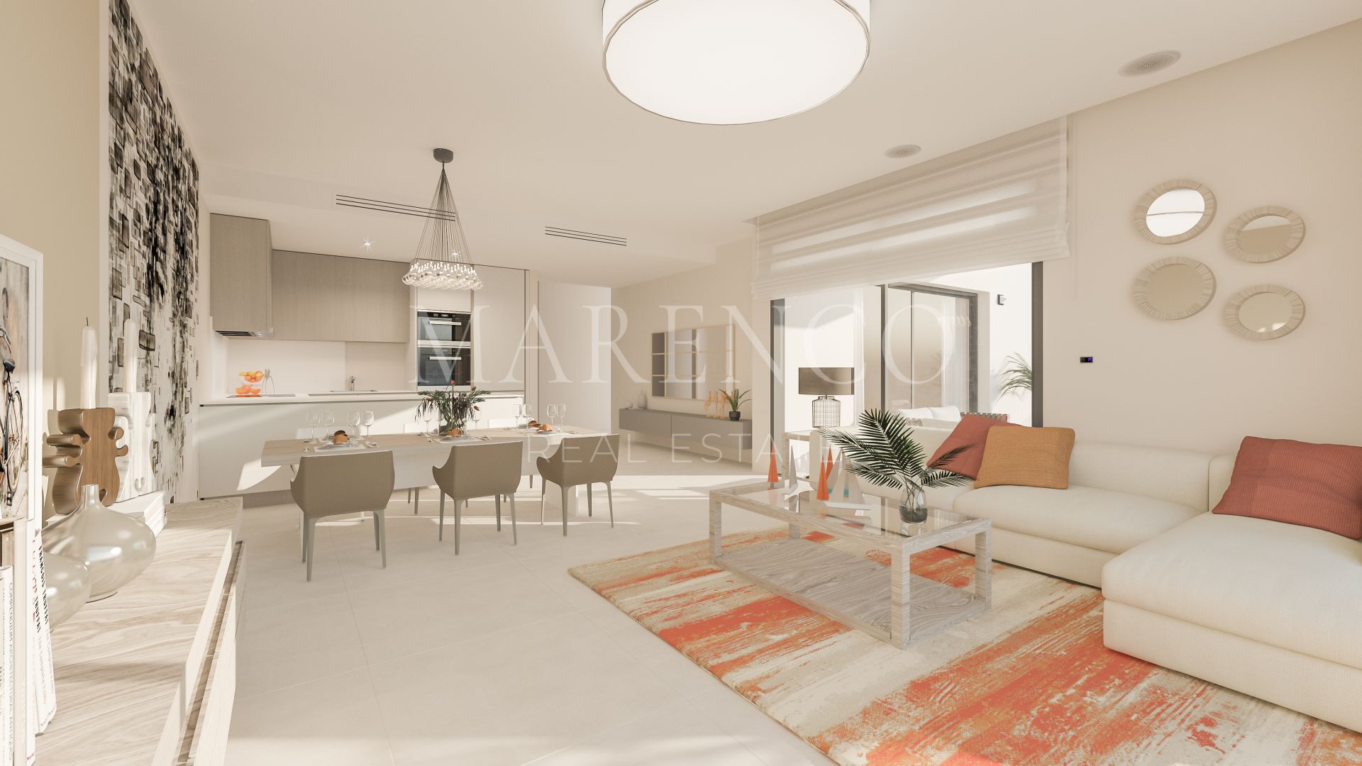 Exclusividad, calidad y una arquitectura de diseño moderna y contemporánea en un entorno natural de espectacular belleza, con las montañas detrás, una ubicación privilegiada y todo un mundo de servicios son algunos de los principales atributos de este proyecto. Apartamentos abiertos y luminosos, con cocinas integradas en el salón y totalmente equipadas y amuebladas con electrodomésticos SIEMENS, aire acondicionado, instalación de alarma, detector de humo, etc.