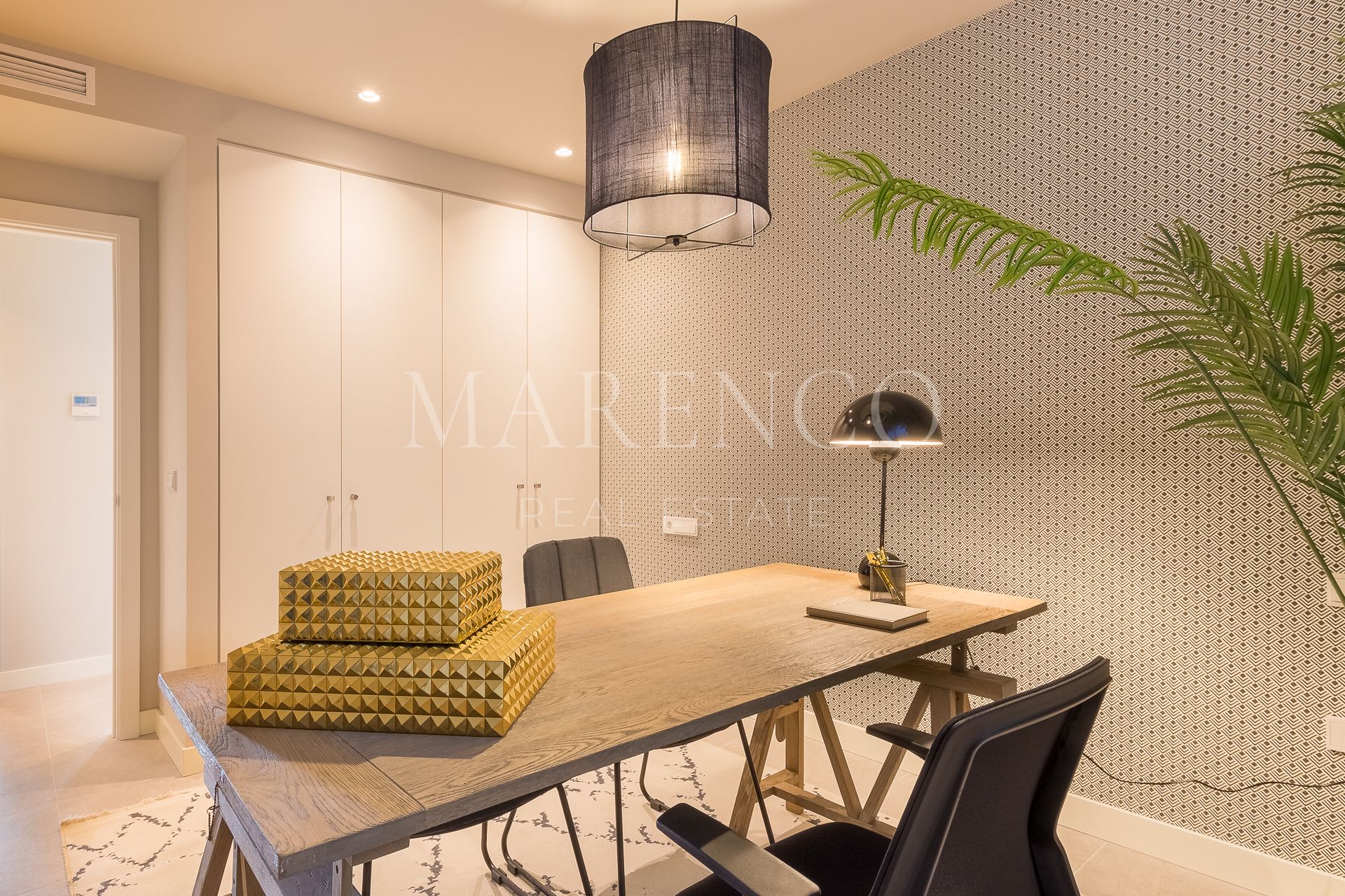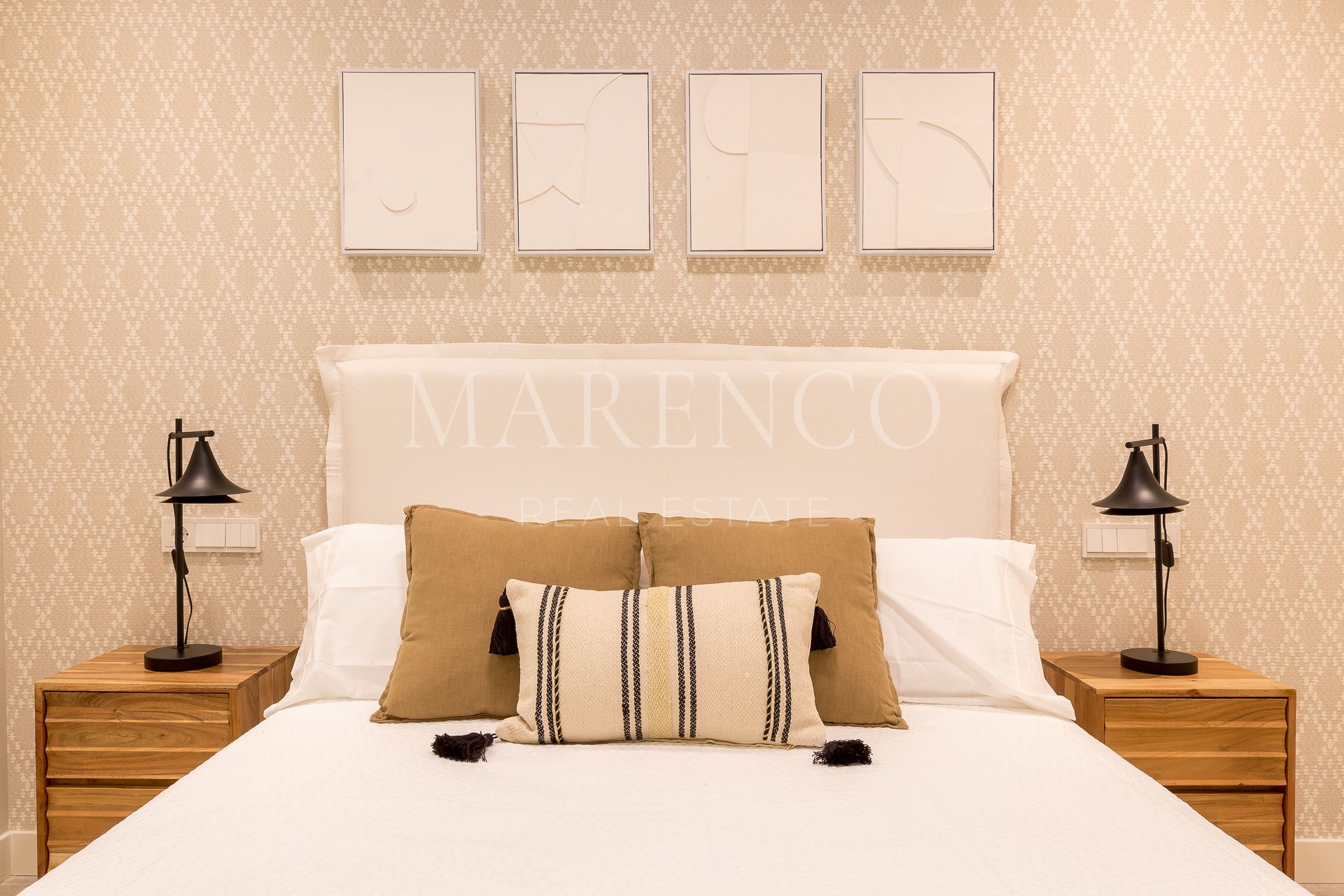 Con altas calidades, gres porcelánico, doble acristalamiento, puertas correderas, cocina amueblada, aire acondicionado frío-calor, armarios empotrados… plaza de garaje y trastero.