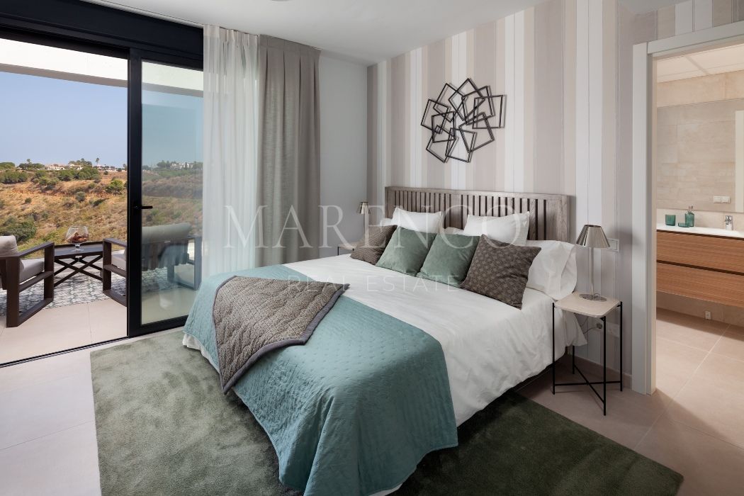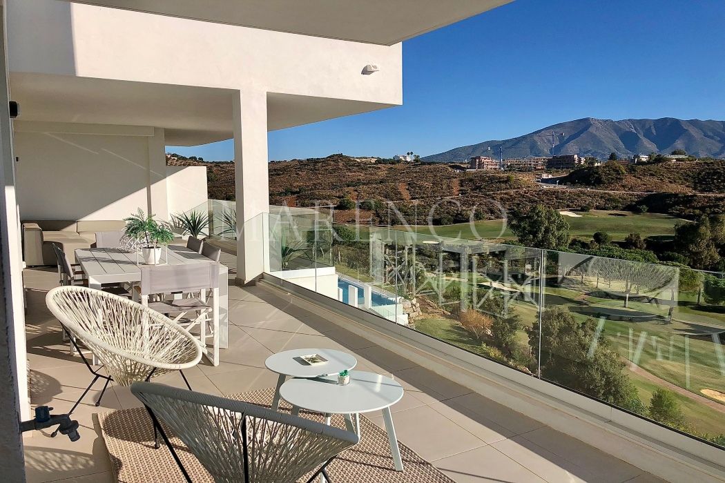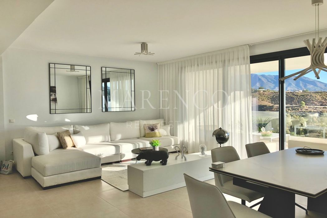 Las propiedades disponen de un amplio y luminosos salones con ventanales grandes que le permite disfrutar de más horas al sol. Tenemos una cocina moderna y totalmente equipada, siendo un area abierta donde este mismo espacio le da paso a una espectacular terraza de hasta 112 m ofreciéndole unas maravillosas vistas al campo de golf, montaña y mar.