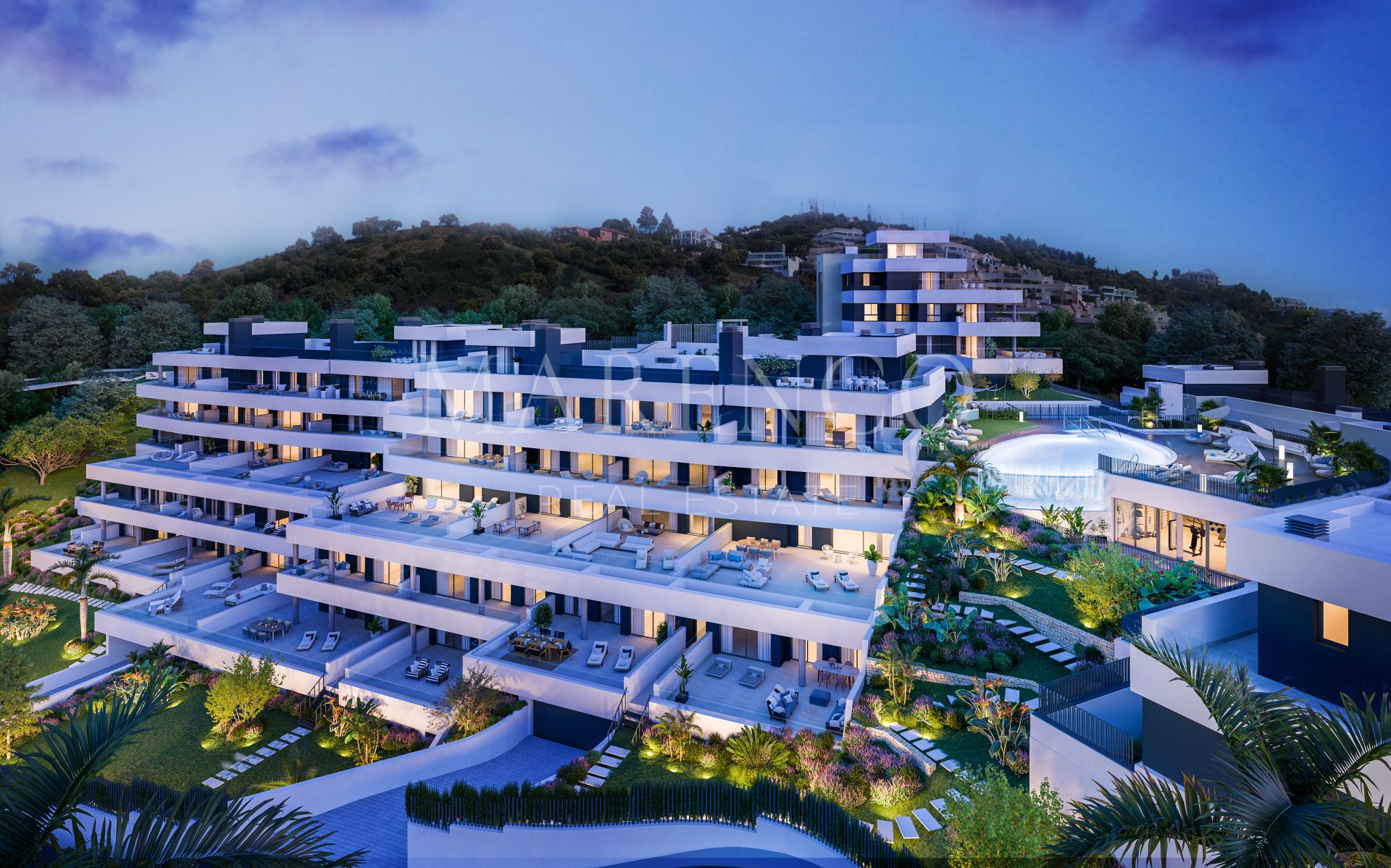 La ubicación única de MedBlue, en la zona alta de Los Monteros y a solo 10 minutos del centro de Marbella, garantiza una experiencia de vida tranquila y de resort que siempre has soñado.