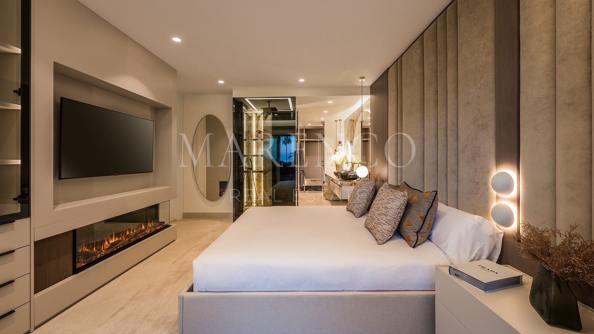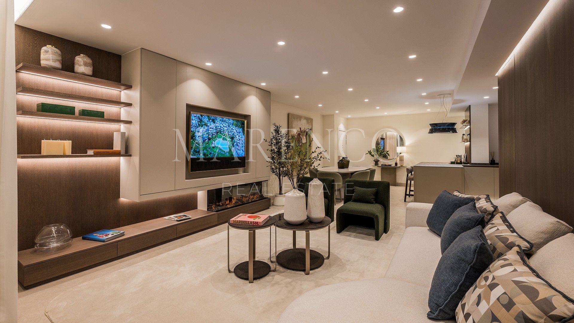 Among its most outstanding features are a stylish B&O sound system, wine fridge, invisible cooktop, electric fireplace, and a practical bar area—ideal for enjoying moments with family or friends. The master bedroom includes a walk-in closet, bathroom with Japanese toilet, and a concealed laundry area, reflecting the meticulous attention to detail characteristic of a true luxury property on the Costa del Sol. Additionally, the apartment includes an underground parking space and storage room, adding both comfort and functionality.