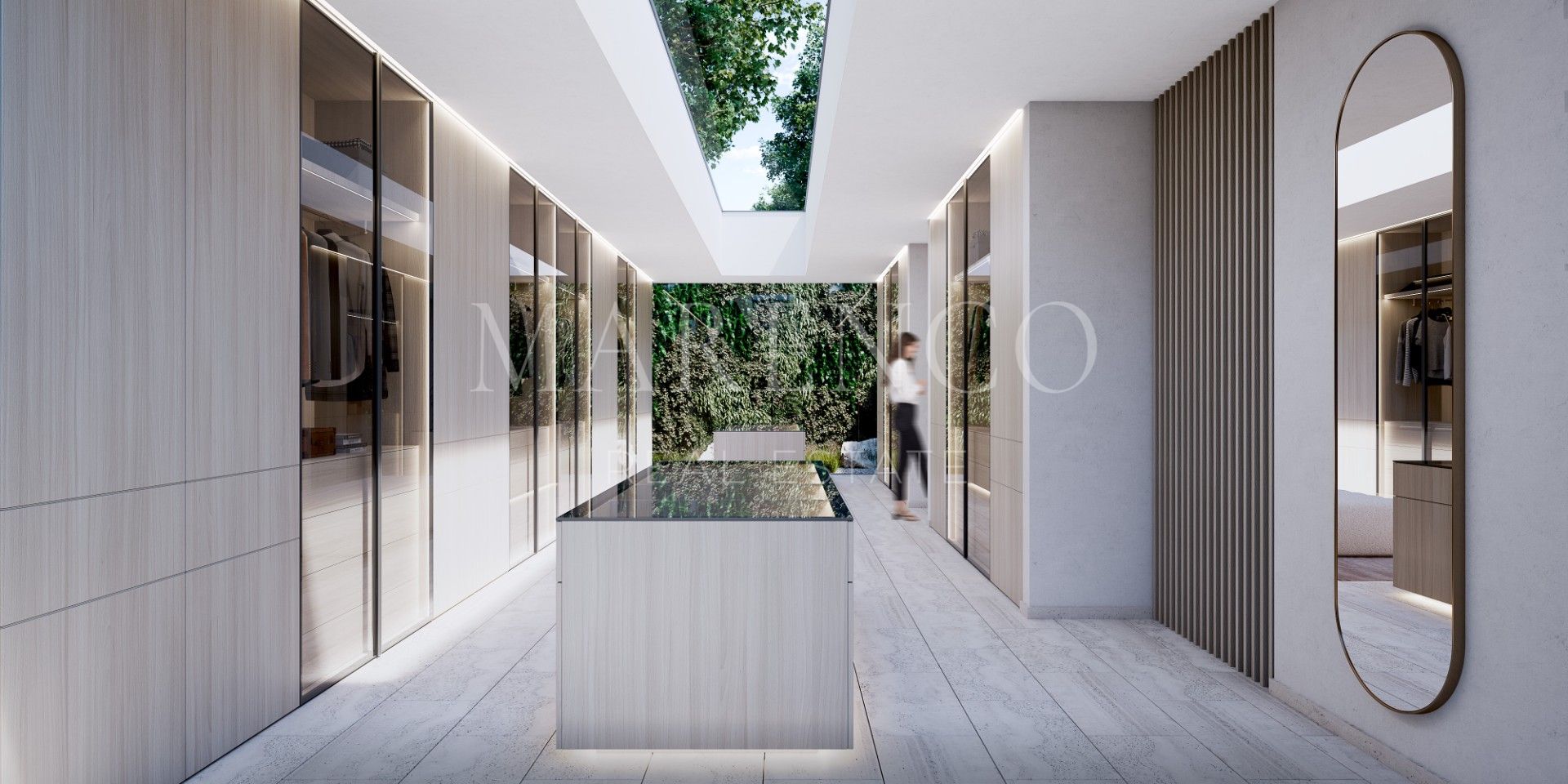 The relationship with light and nature is central to the design. Within the lush Mediterranean setting, light filters softly through the surrounding vegetation, filling the interiors with warmth and calm. A series of courtyards act as living, breathing spaces — regulating natural ventilation, light, shade, and temperature, while offering tranquil areas for relaxation and enjoyment. These bioclimatic spaces enhance daily life, naturally improving comfort and energy efficiency.