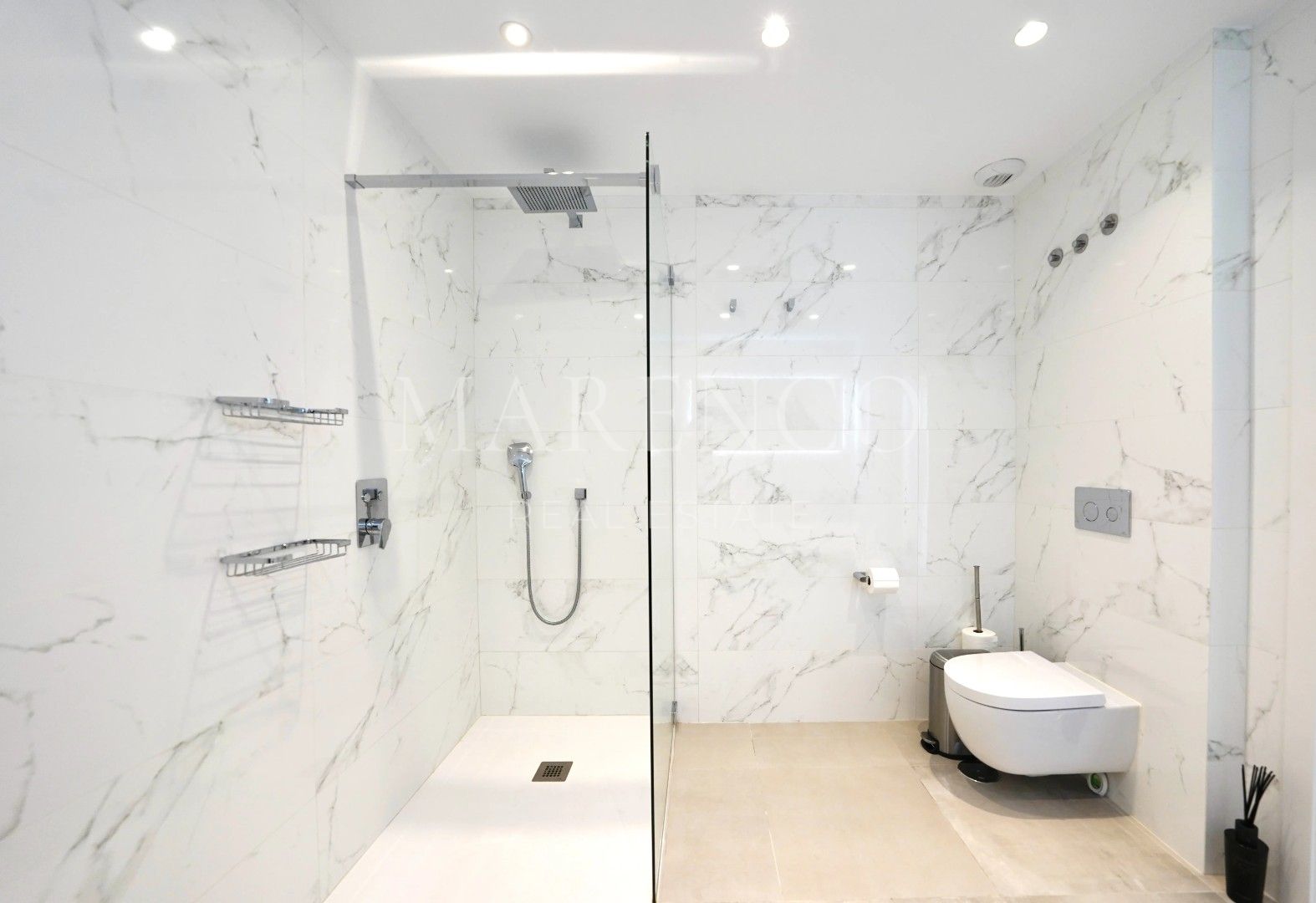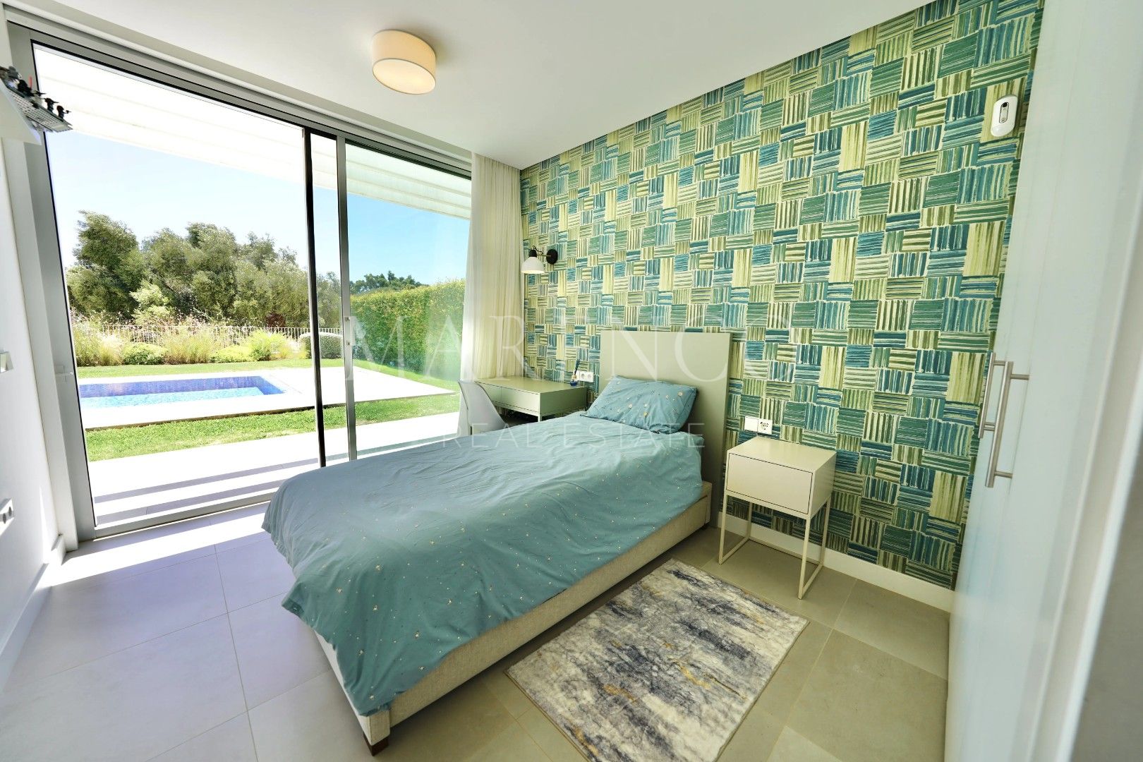 On the garden level, four spacious bedrooms open directly onto the pool and landscaped gardens, creating a private retreat for family and guests. Elegant bathrooms with walk-in showers and refined finishes enhance the sense of comfort and style, while direct access to the poolside terrace makes this floor ideal for relaxed, resort-style living.