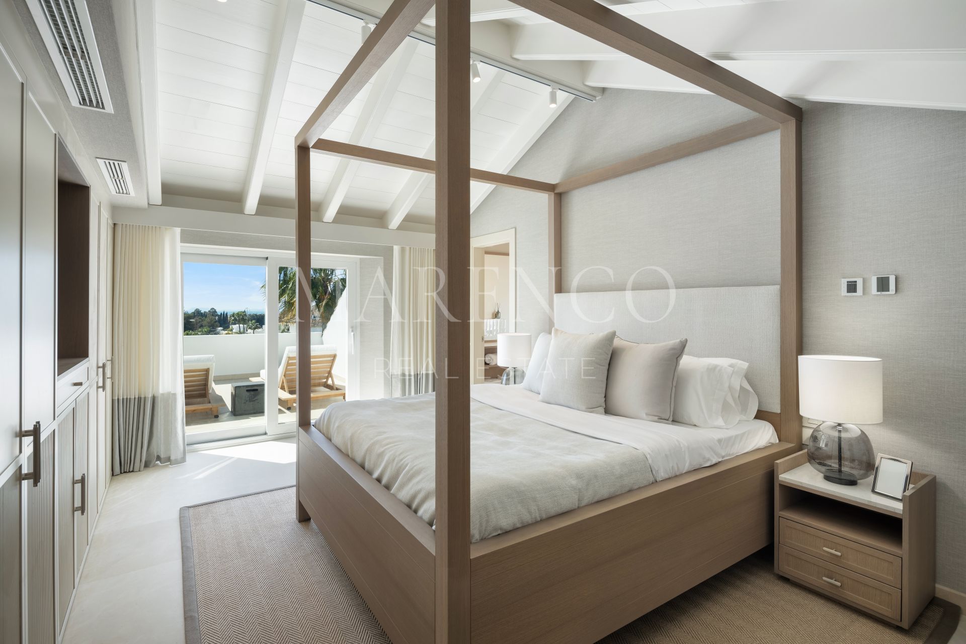 Situated in the exclusive and tranquil community of Monte Paraiso on Marbella’s prestigious Golden Mile, Marismas 1 is an exceptional duplex apartment refurbished by the renowned Oak Estates. Offering private terraces with stunning community views and partial sea views, this property combines prime location with exquisite design and comfort.