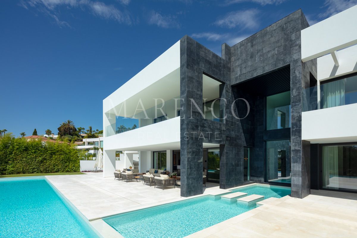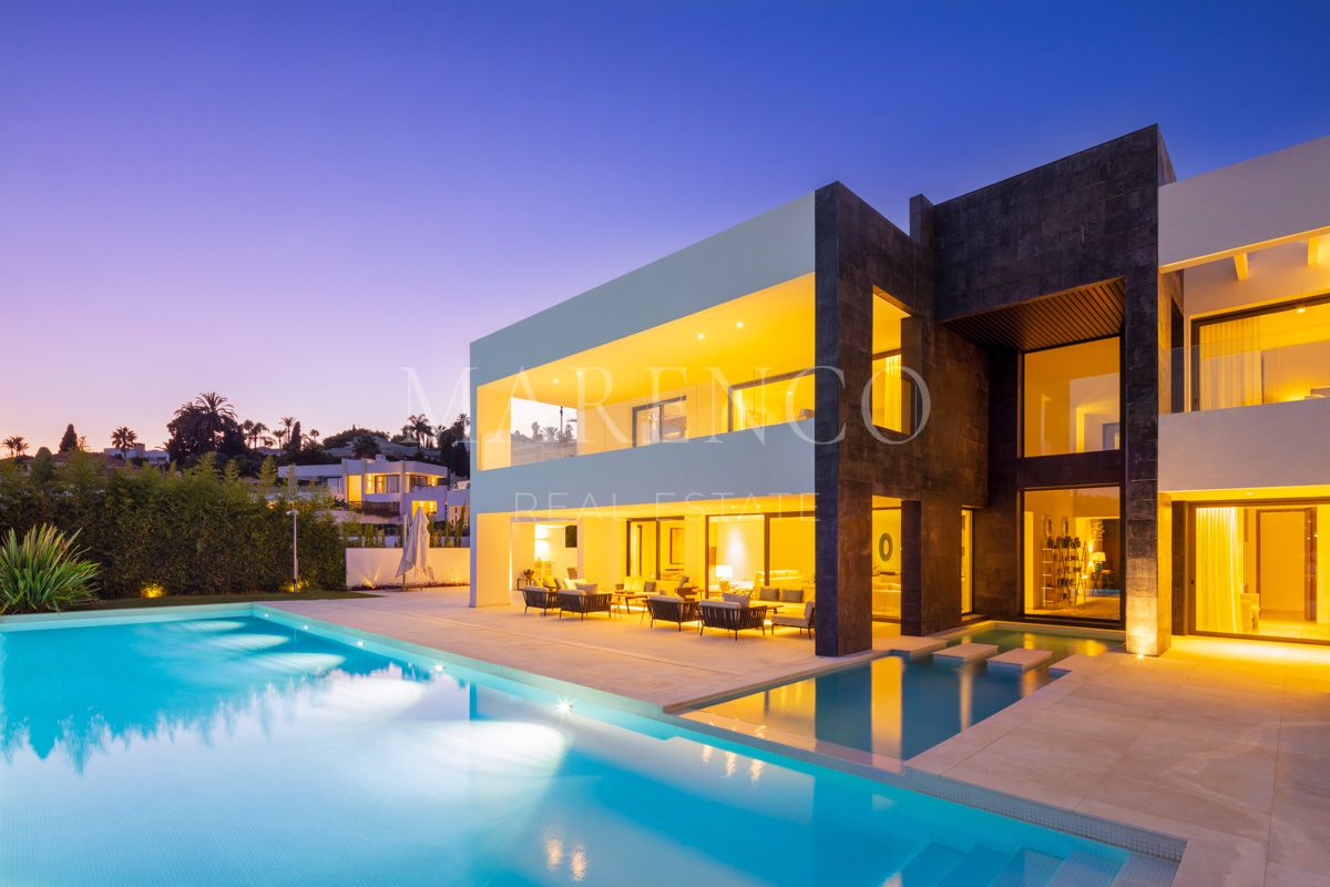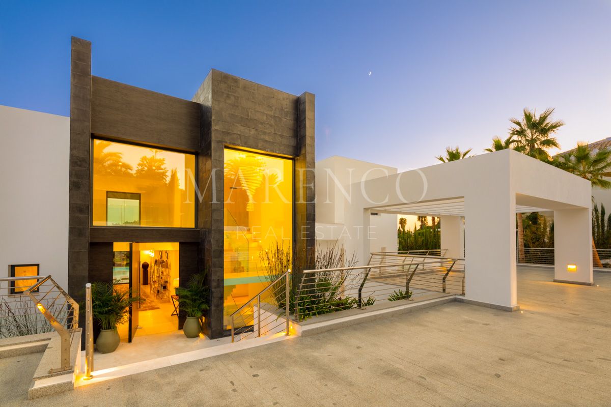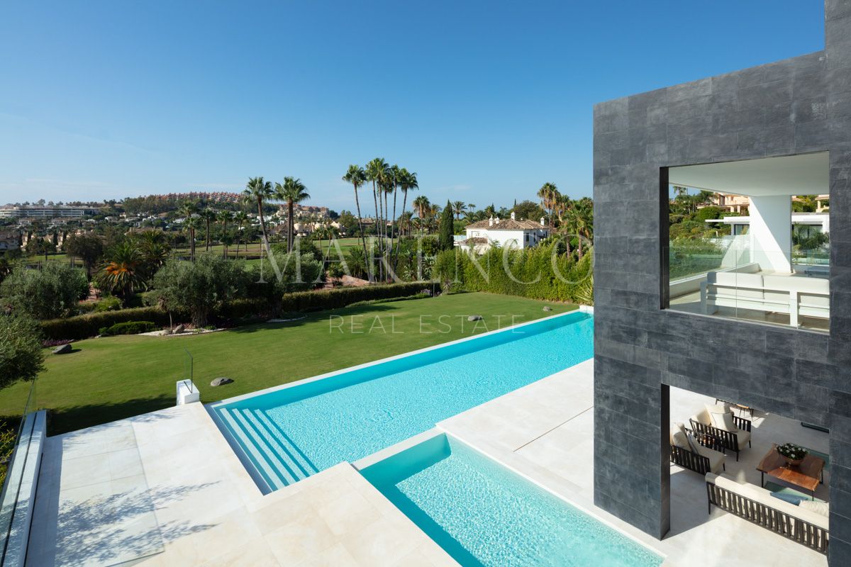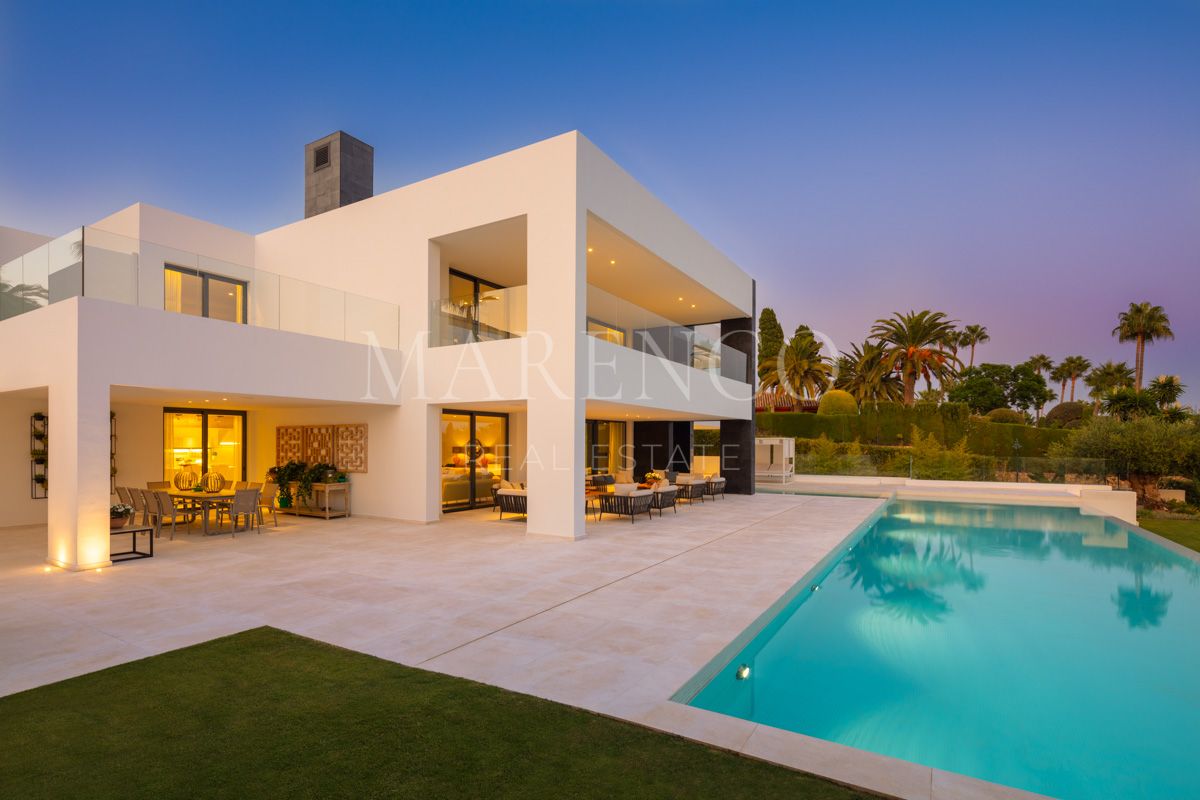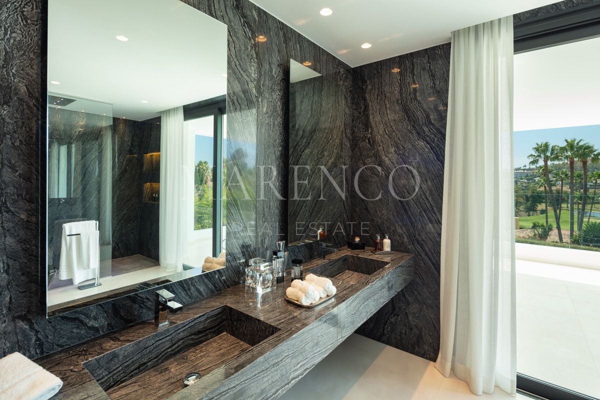 This brand new villa of contemporary style is situated in the heart of famous Nueva Andalucia of Marbella, surrounded my multiple golf courses with all the facilities. The area is very private but at the same time 5 minutes by car you can reach tehn rpestigious Puerto Banus with its luxury shops, reastaurants and lovely beaches.
