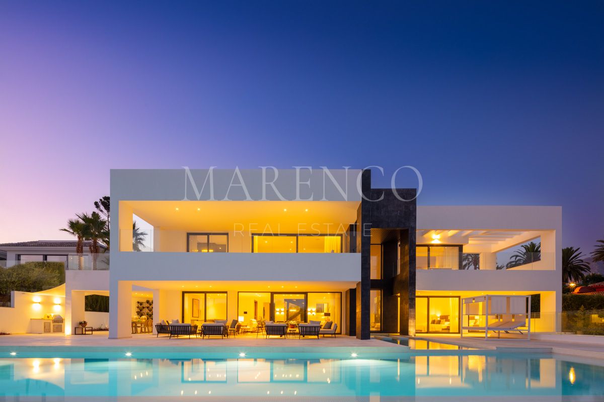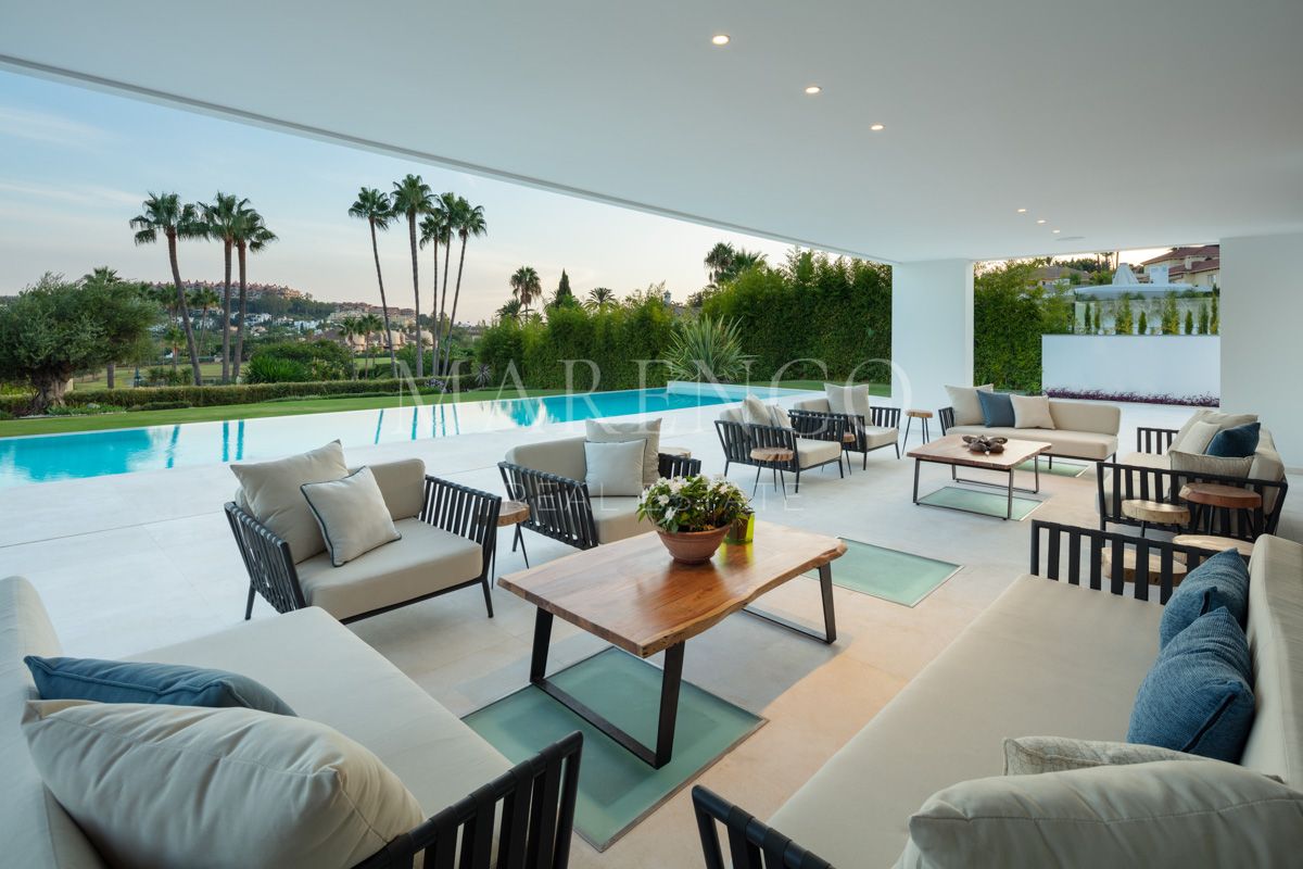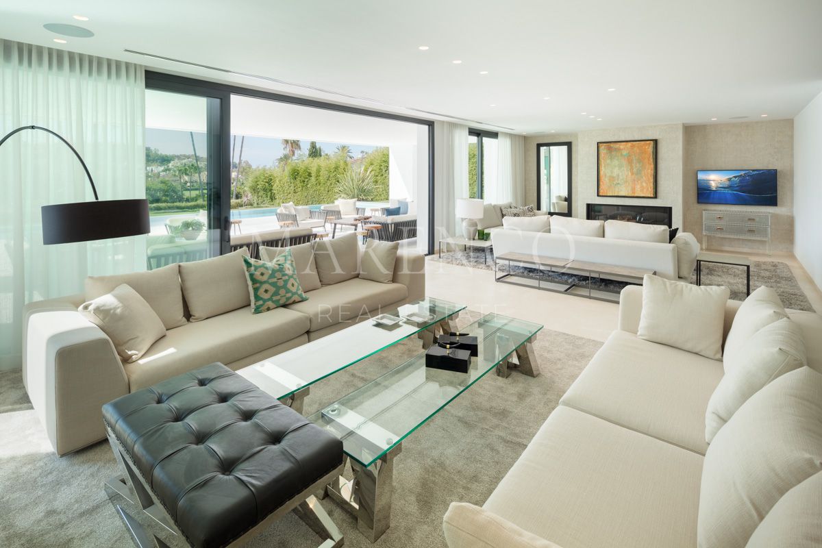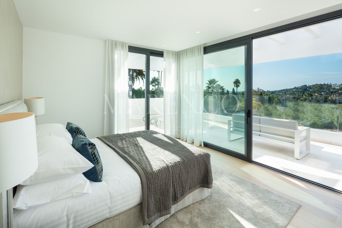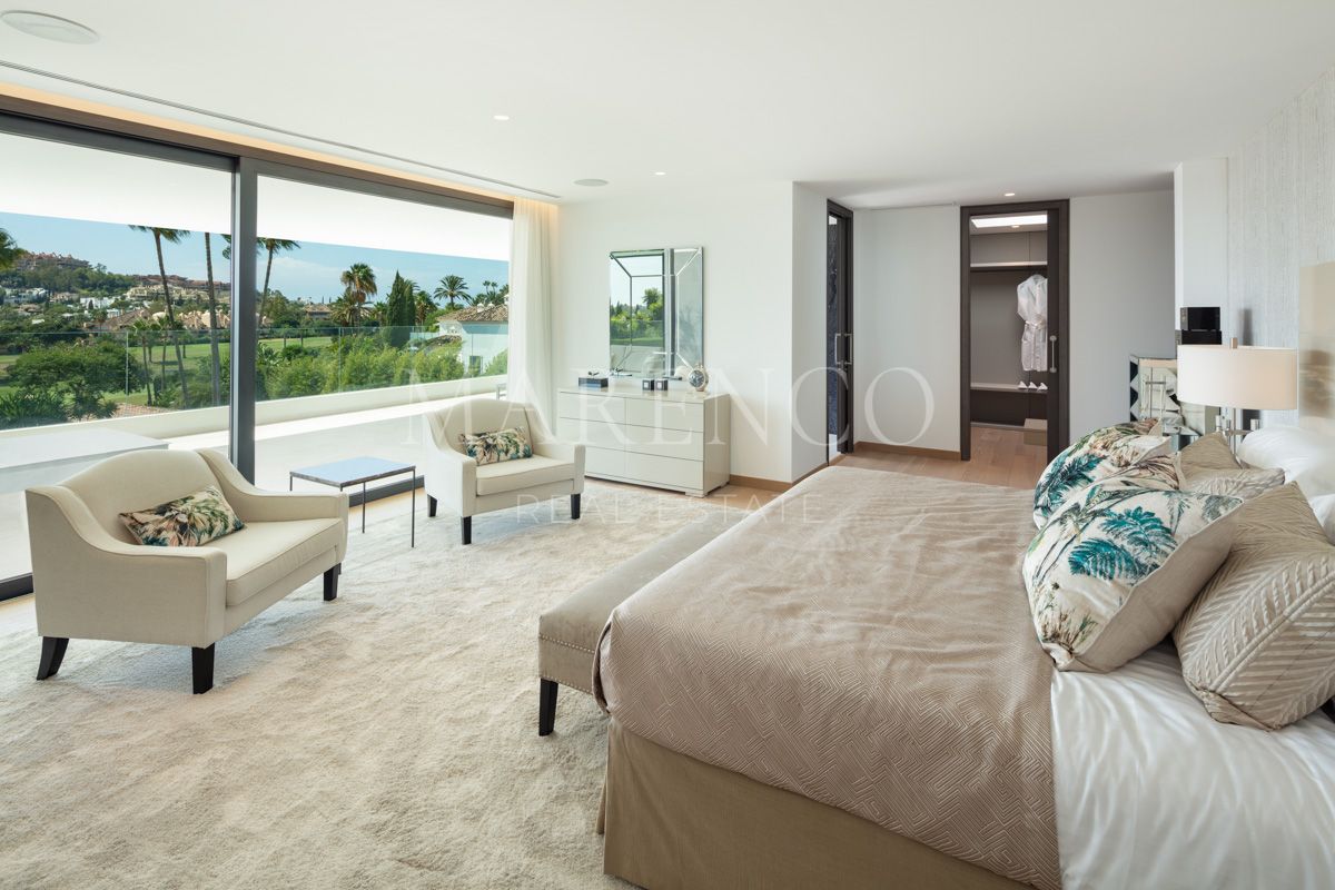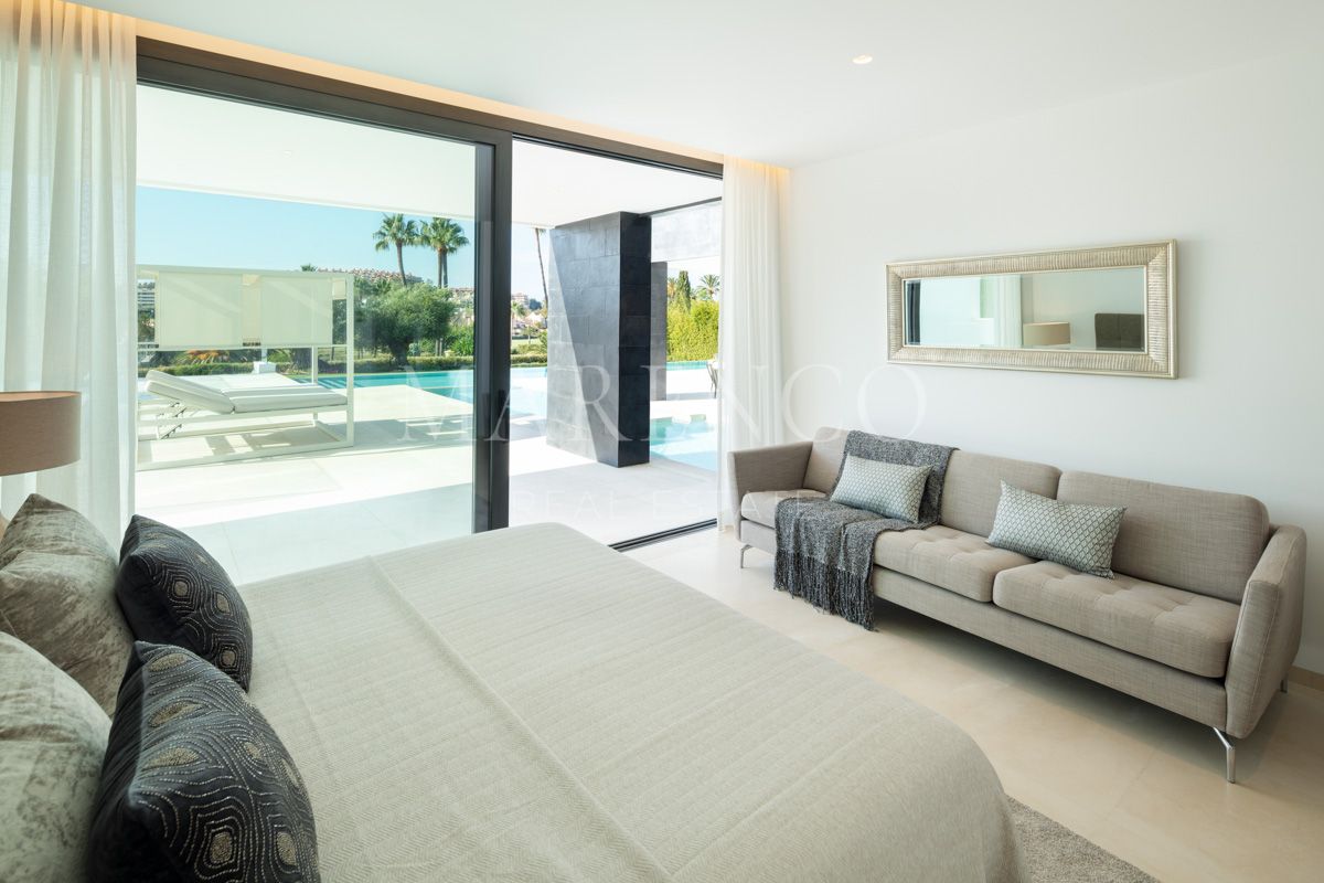 This brand new villa of contemporary style is situated in the heart of famous Nueva Andalucia of Marbella, surrounded my multiple golf courses with all the facilities. The area is very private but at the same time 5 minutes by car you can reach tehn rpestigious Puerto Banus with its luxury shops, reastaurants and lovely beaches.