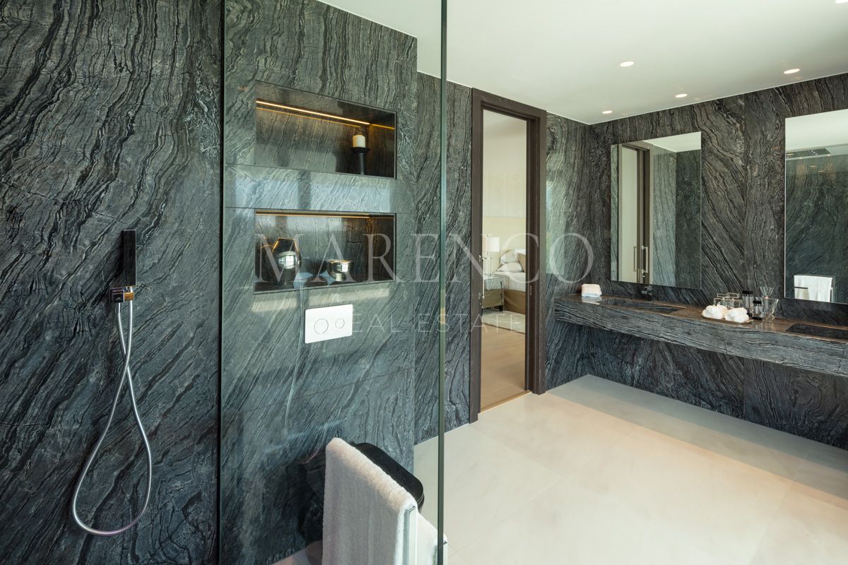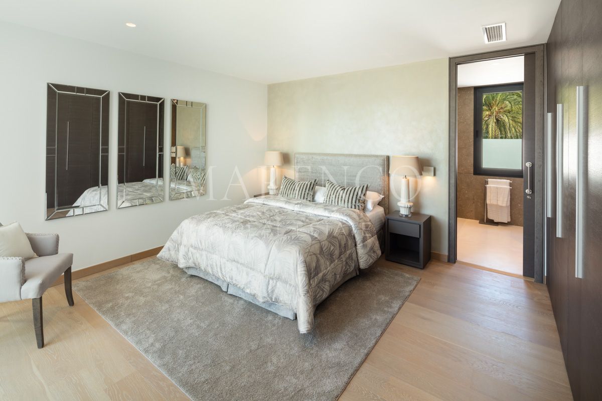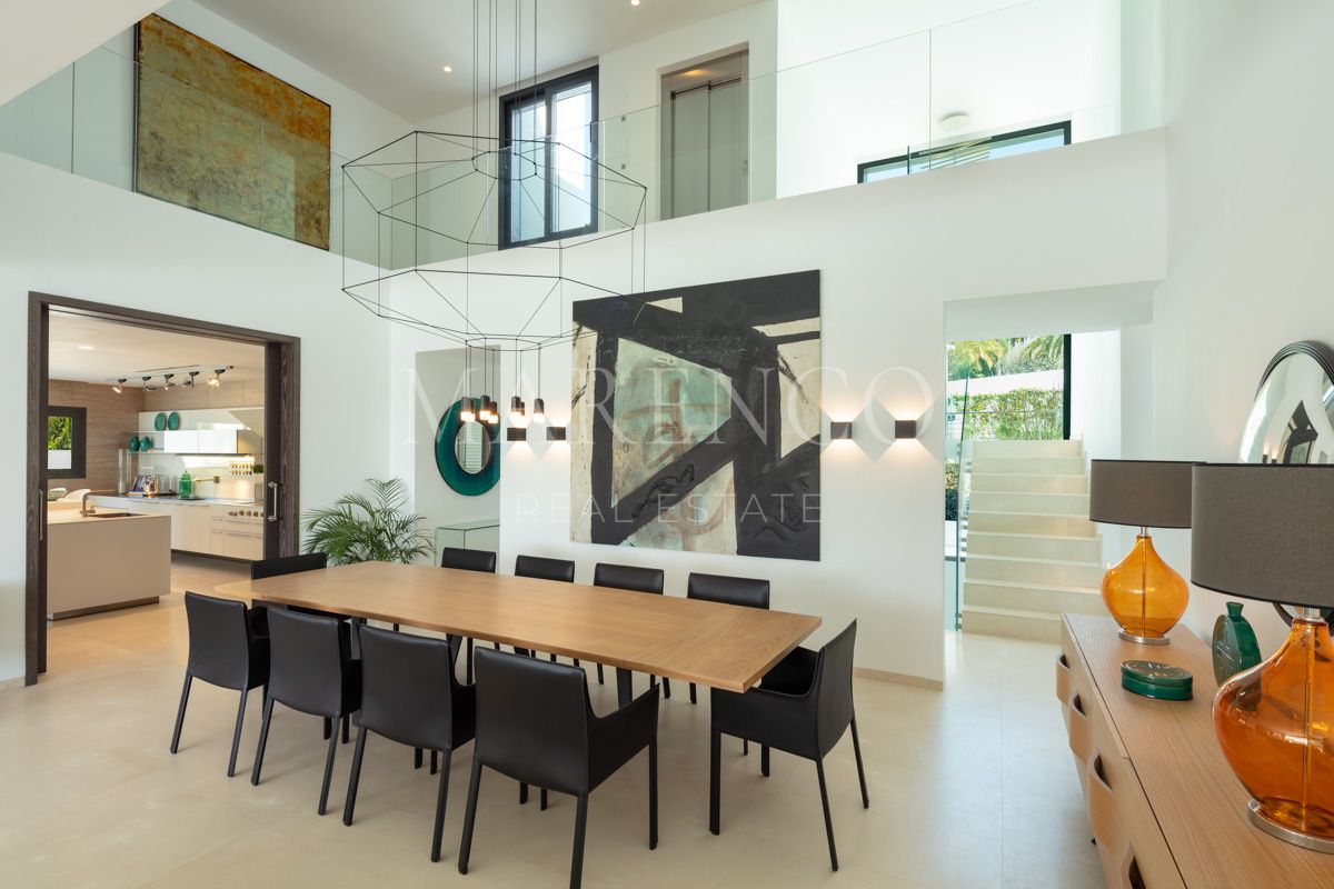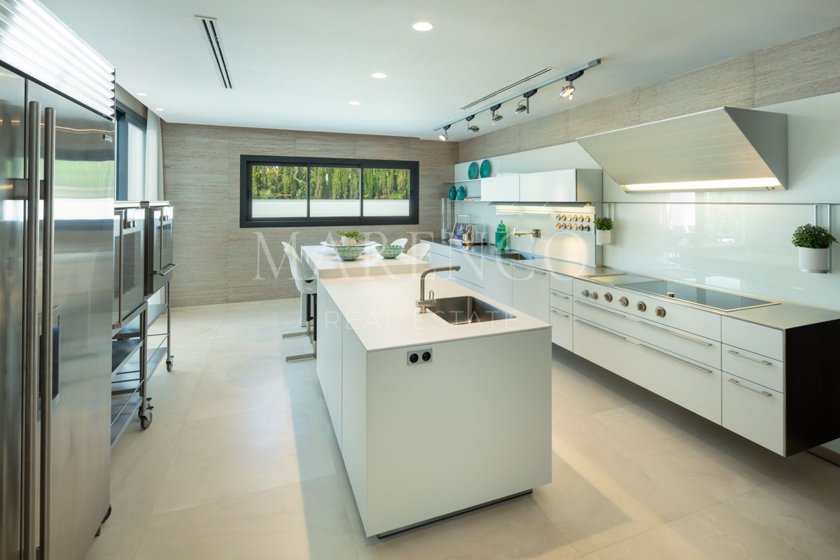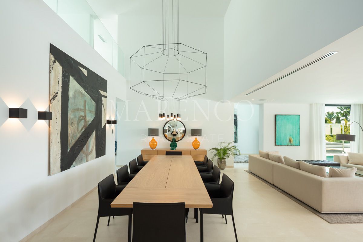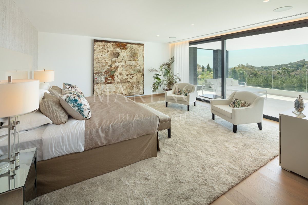 This brand new villa of contemporary style is situated in the heart of famous Nueva Andalucia of Marbella, surrounded my multiple golf courses with all the facilities. The area is very private but at the same time 5 minutes by car you can reach tehn rpestigious Puerto Banus with its luxury shops, reastaurants and lovely beaches.