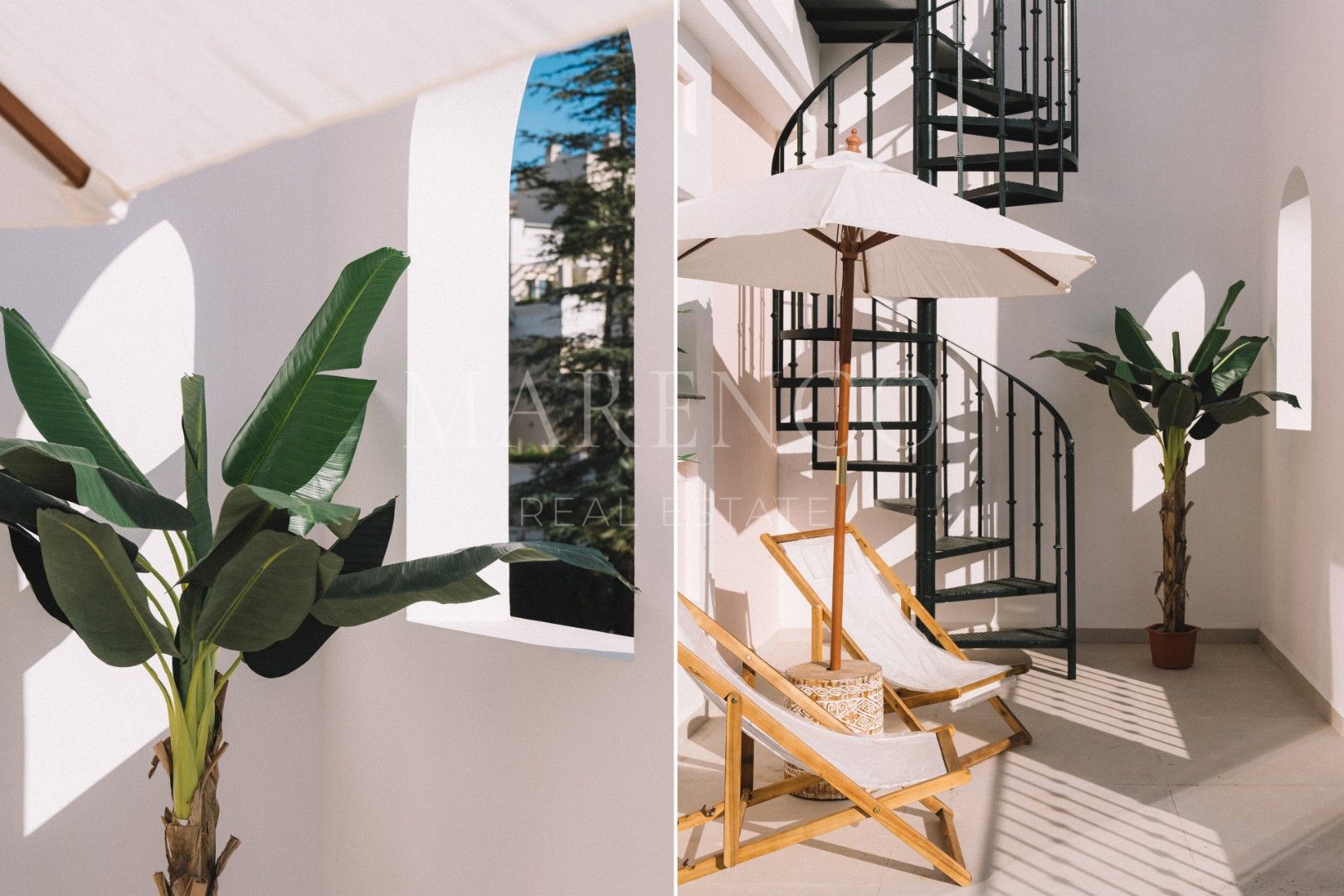 En el corazón vibrante de Nueva Andalucía, emerge Casa Stuart: un impresionante ático dúplex en Aloha Gardens que combina a la perfección diseño contemporáneo y un estilo de vida mediterráneo sofisticado. Su ubicación privilegiada, rodeada de campos de golf, restaurantes exclusivos y boutiques de lujo, invita a imaginar cada día como una experiencia única bajo el sol de Marbella.