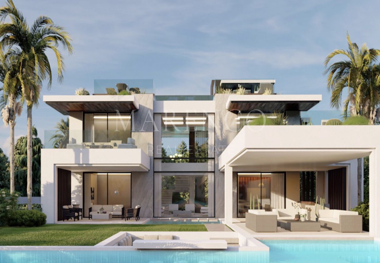 Impresionante proyecto de villa de lujo ubicado en la prestigiosa comunidad cerrada de Villas del Marqués. Enclavado en una parcela privada de 1550m², este oasis de elegancia se encuentra a pocos minutos de la icónica Puerto Banús, en la codiciada zona de Altos de Puente Romano, conocida como la Milla de Oro de Marbella.