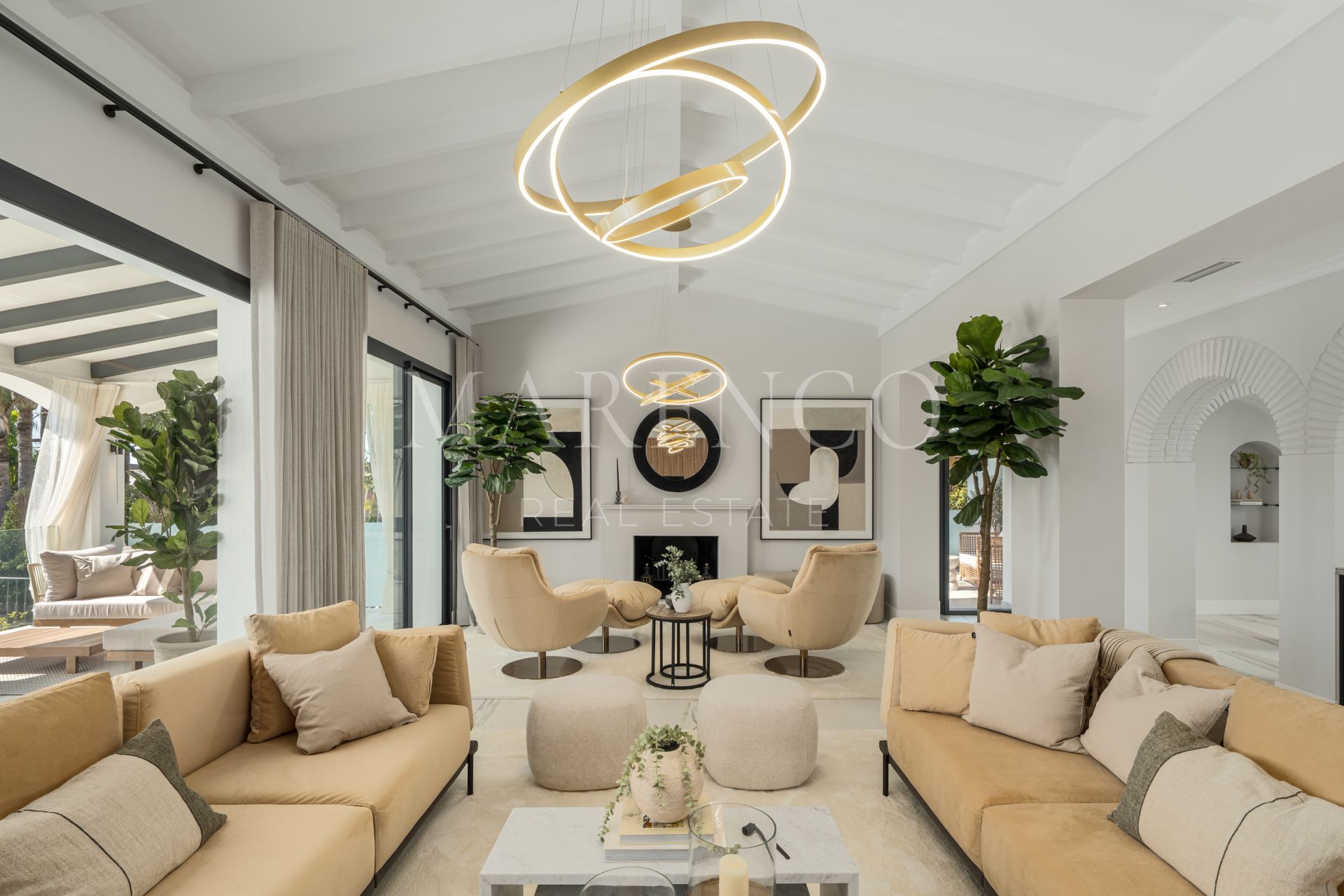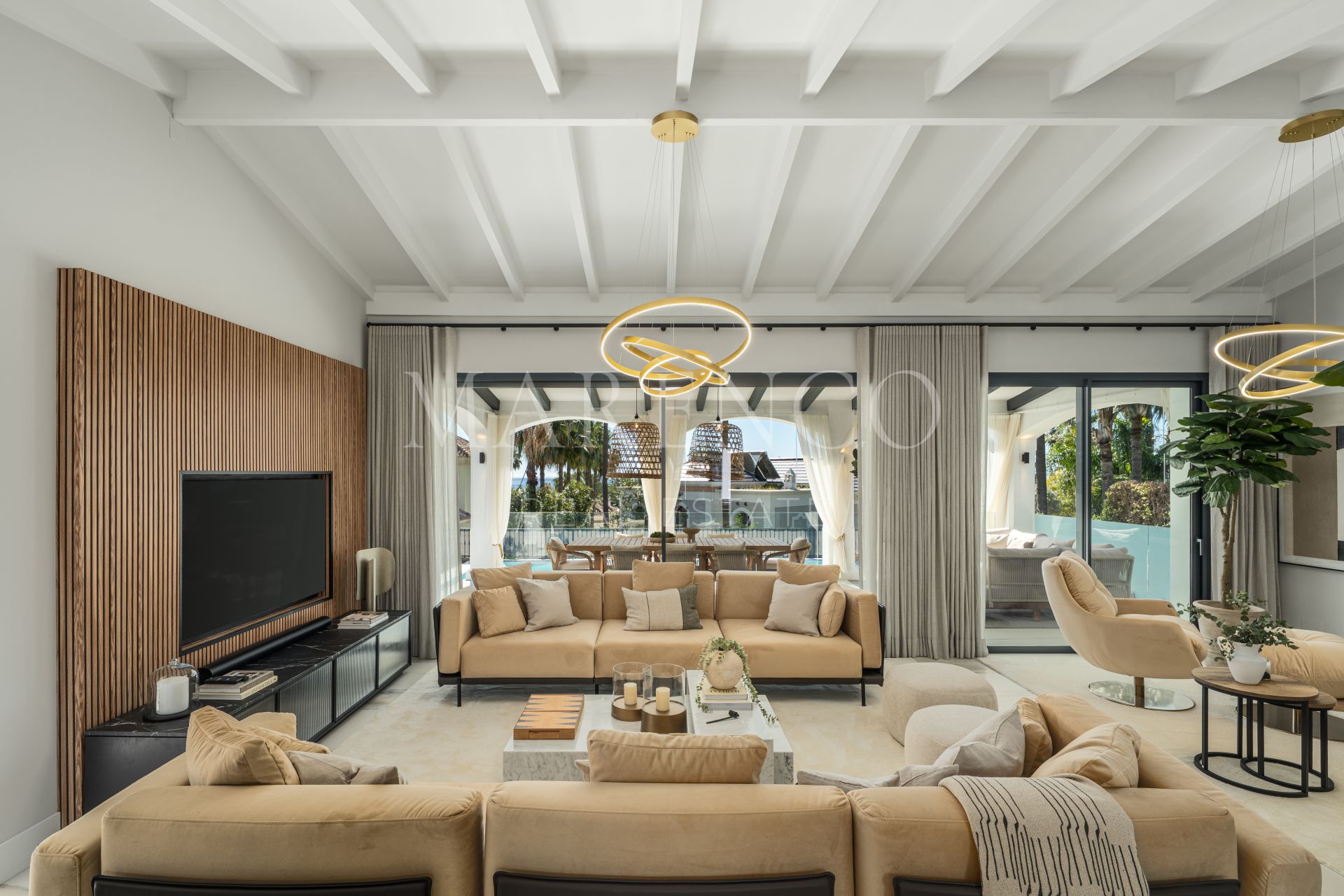 Villa Zafira es un encantador refugio mediterráneo que combina a la perfección el encanto tradicional con toques contemporáneos refinados. Ubicada en una amplia parcela de más de 1.000 m² dentro de la prestigiosa comunidad cerrada de Altos Reales, en la Milla de Oro de Marbella, esta propiedad excepcional ofrece un oasis de tranquilidad y lujo. Sus jardines meticulosamente cuidados crean un entorno exuberante ideal para el relax, e incluyen una piscina privada y un acogedor jacuzzi exterior. Las amplias terrazas han sido diseñadas con esmero para disfrutar al máximo del exterior, enmarcando cada encuentro con la exclusividad de este enclave privilegiado.