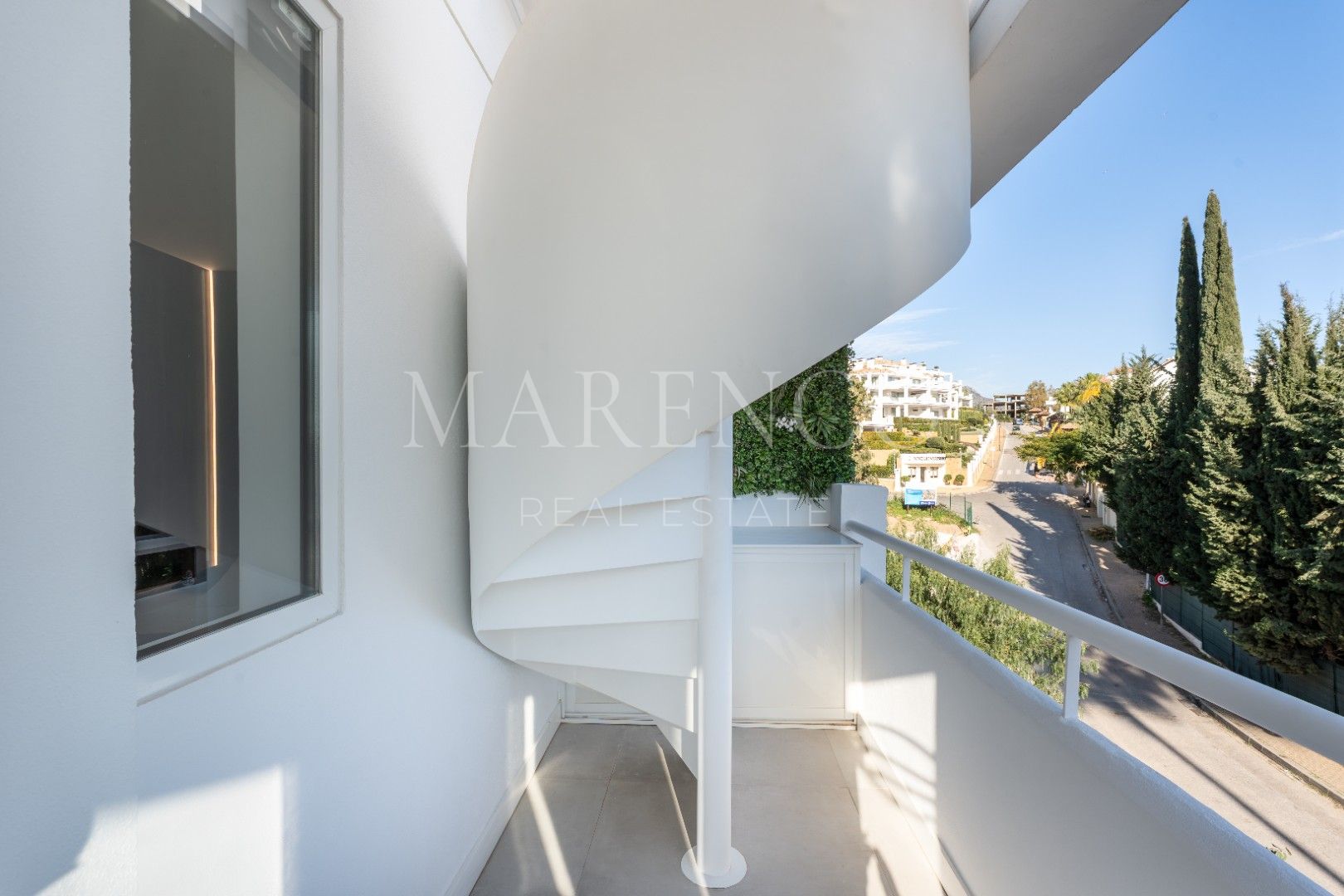 La Diva es un impresionante ático de tres dormitorios y dos baños en Balcones del Golf, Nueva Andalucía, que ofrece una experiencia de vida contemporánea con espectaculares vistas al mar y una amplia terraza privada en la azotea. Recientemente renovado con un diseño escandinavo moderno, esta propiedad combina funcionalidad y elegancia, creando un hogar luminoso y con estilo que destaca en una de las zonas residenciales más deseadas de Nueva Andalucía.