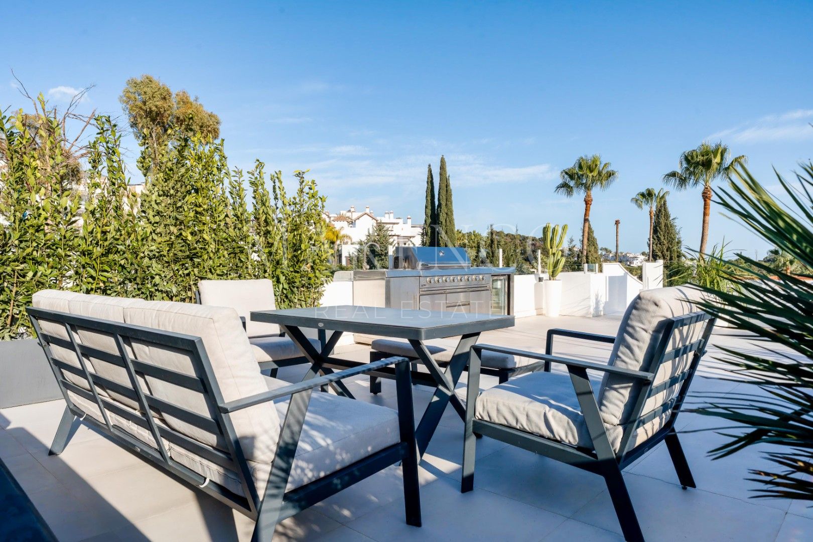 Uno de los aspectos más destacados de La Diva es su gran terraza privada de 54 metros cuadrados en la azotea, diseñada para los amantes de la vida al aire libre. Este increíble espacio cuenta con una zona de barbacoa exterior, lo que lo convierte en el lugar ideal para cenar al aire libre, entretener a invitados o simplemente relajarse mientras se disfrutan de vistas panorámicas al mar Mediterráneo y a los campos de golf circundantes. Este espacio adicional al aire libre realmente distingue al ático, ofreciendo un refugio tranquilo y privado sobre los tejados de Nueva Andalucía.