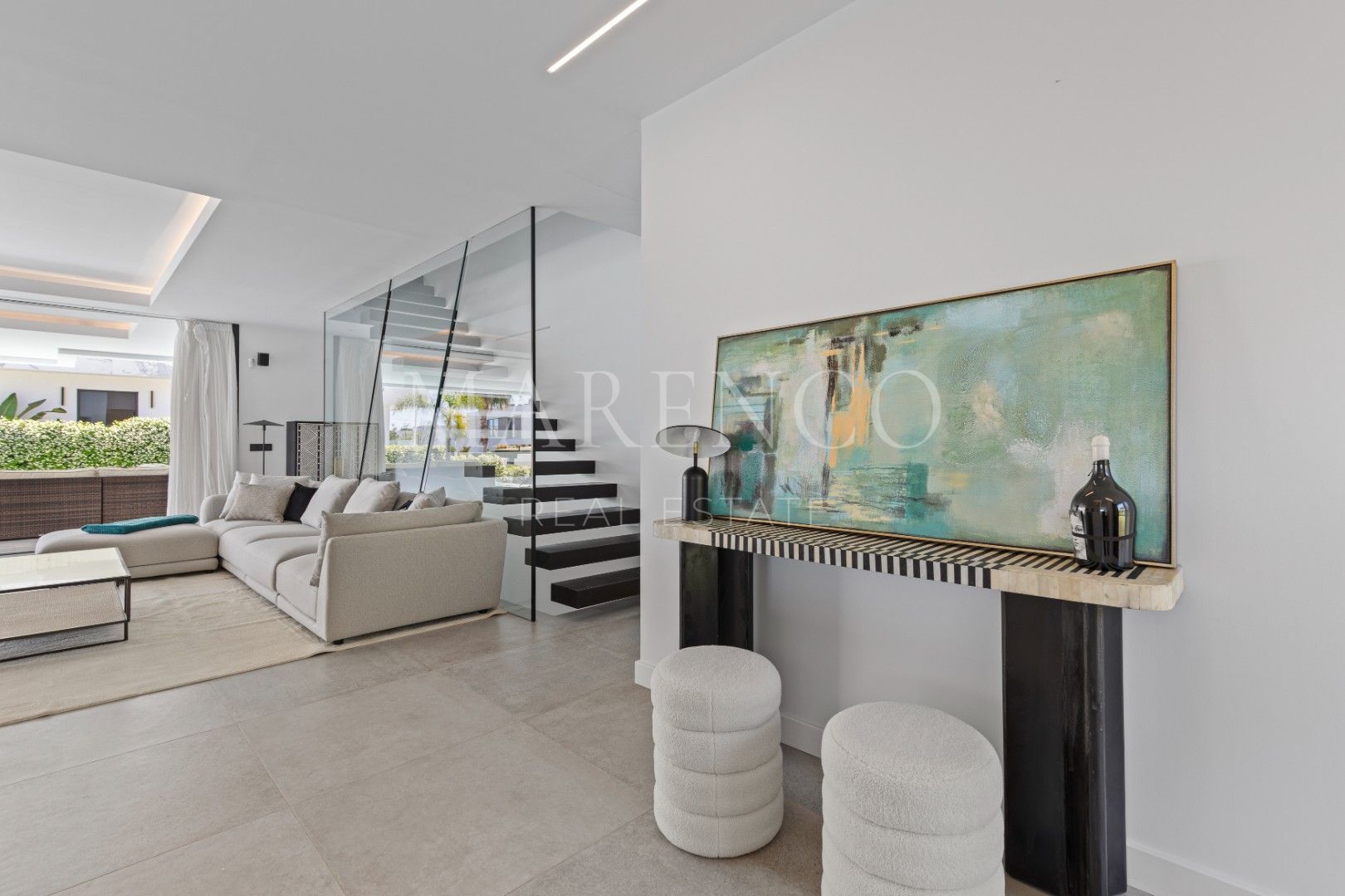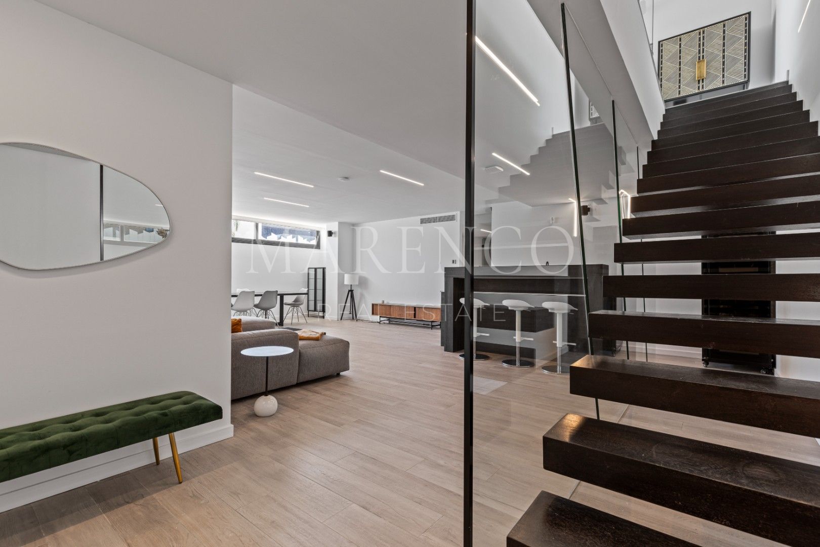 Entre otros aspectos destacados se incluyen una escalera flotante integrada en la estructura de la vivienda, sistema de domótica para control de iluminación, climatización y seguridad, aire acondicionado centralizado con ajuste individual por estancia (frío/calor), paneles solares para una mayor eficiencia energética y un sistema de CCTV y videoportero. Esta villa representa una oportunidad ideal para quienes buscan una vivienda moderna de alta calidad, con amplios espacios, privacidad y una excelente relación calidad-precio en una de las zonas más deseadas de Marbella.