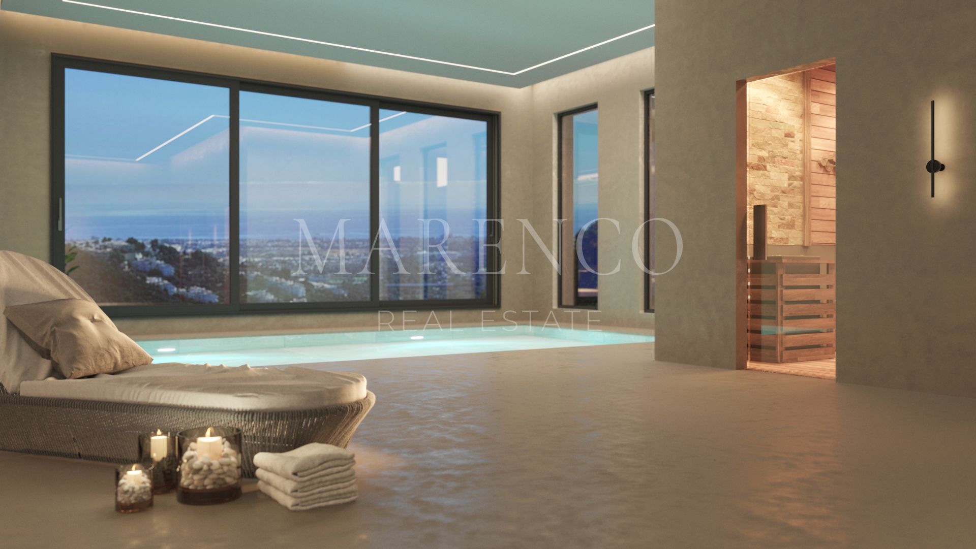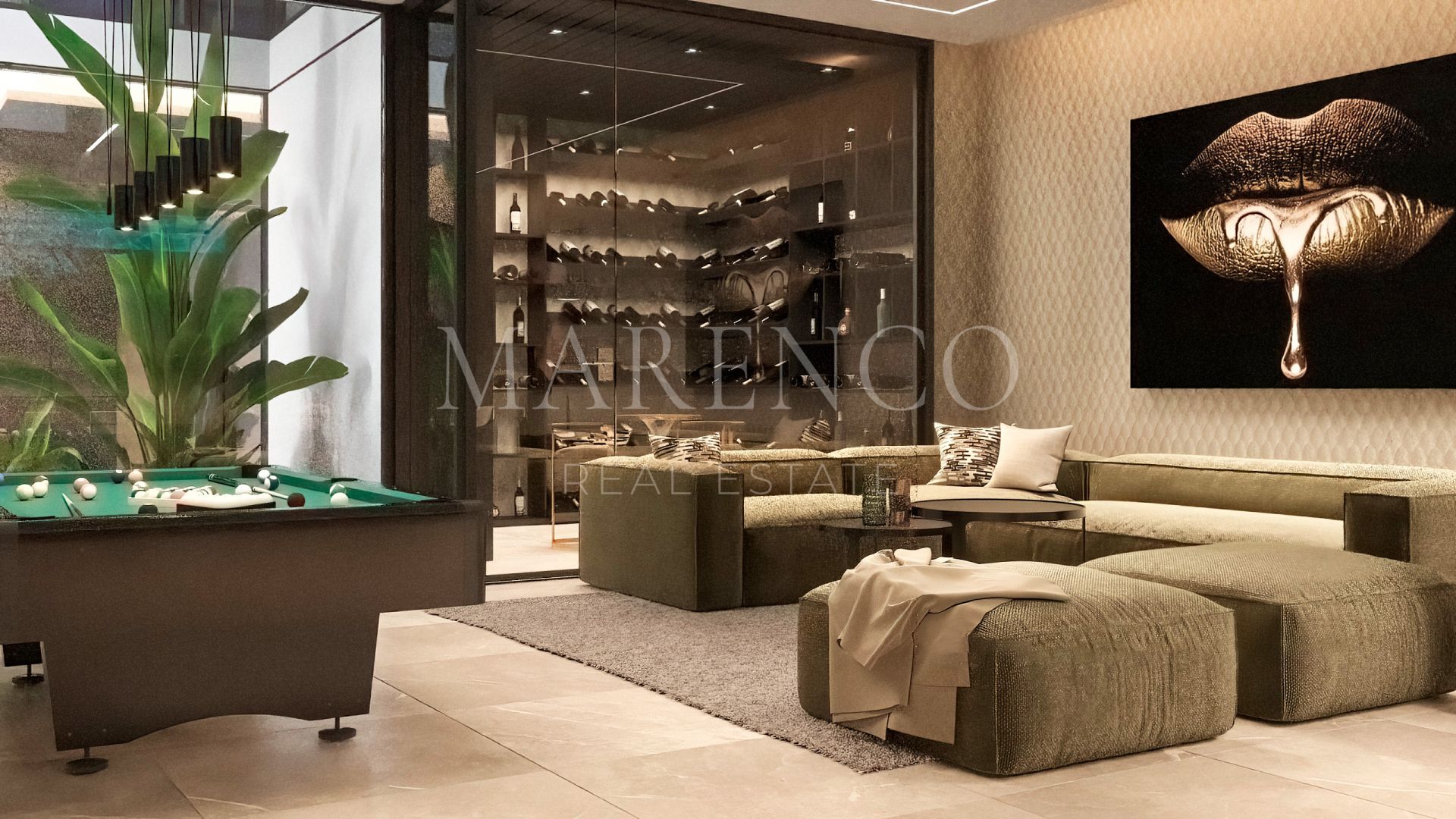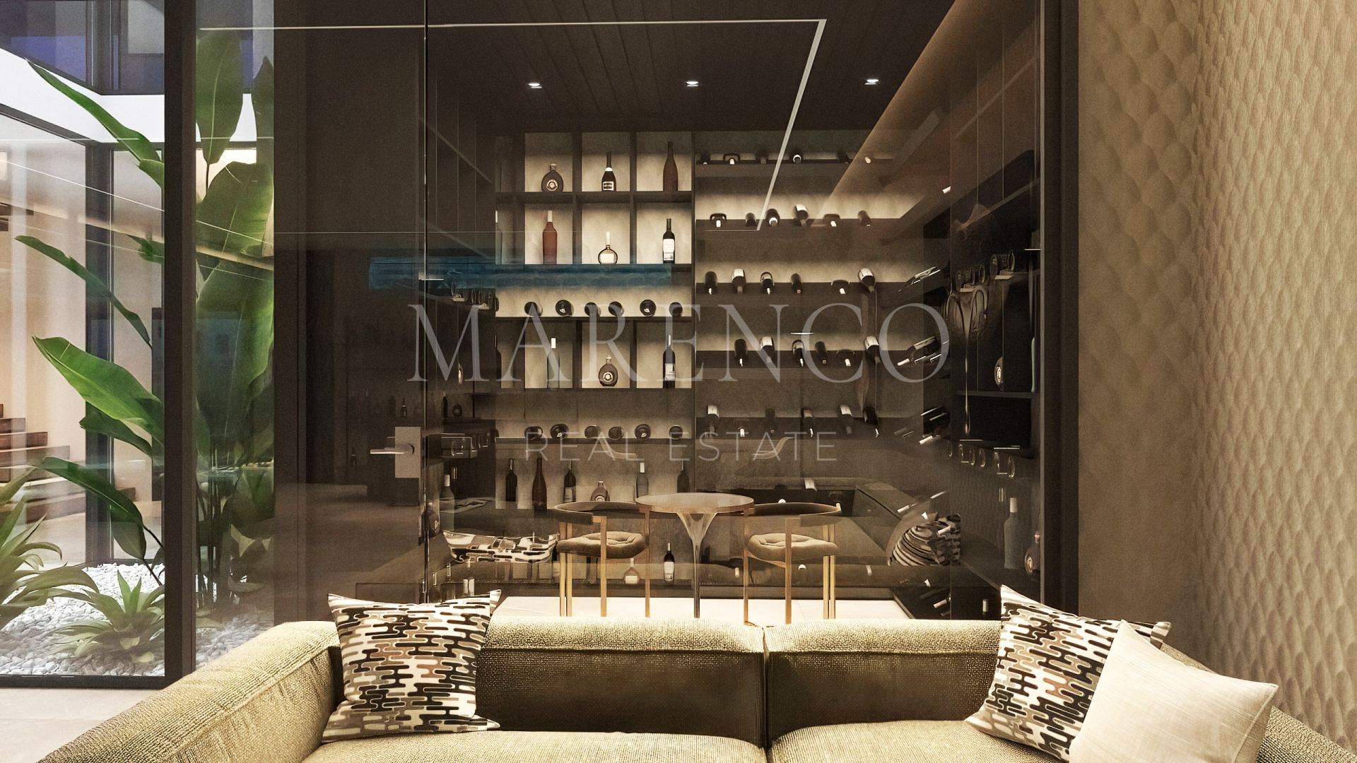 La planta superior alberga la suite principal, que incluye dos baños en suite y dos vestidores independientes, creando un espacio privado de confort absoluto. En el nivel inferior, la villa sorprende con un spa de diseño en microcemento, una piscina interior climatizada, sauna finlandesa, baño turco, gimnasio completamente equipado, bodega climatizada y una sala de juegos con bar y mesa de billar.