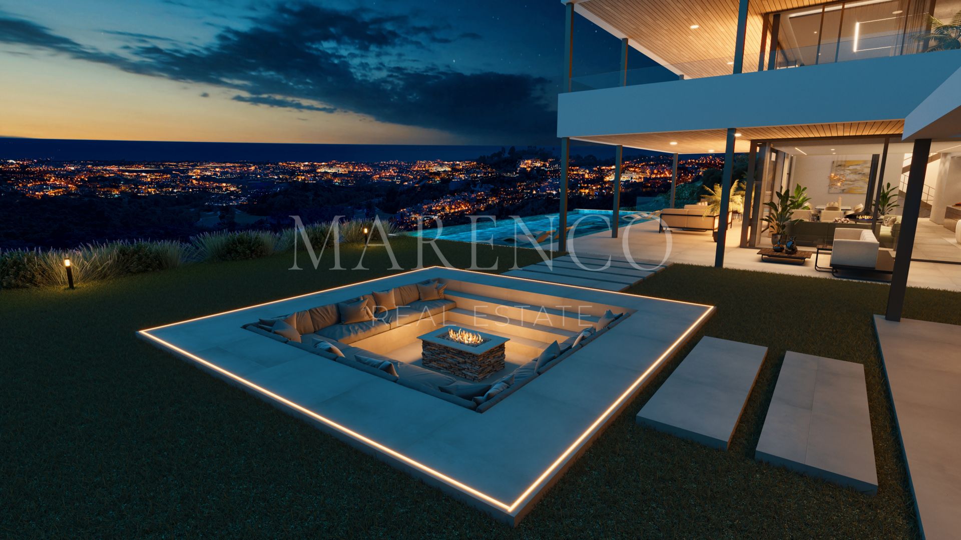 El exterior refleja el mismo nivel de sofisticación: jardines paisajísticos, zonas de relax y una piscina infinita con jacuzzi y hamacas integradas que se funde con el horizonte. La villa dispone de garaje con pared de cristal para tres vehículos, además de espacio exterior adicional para otros tres. Todo el hogar está gestionado por un avanzado sistema de domótica que permite controlar la iluminación, climatización y persianas desde el móvil.
