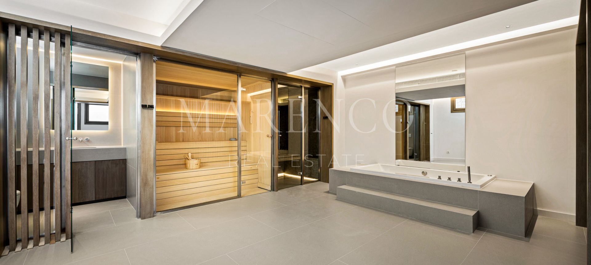 En el sótano hay un spa con gimnasio, jacuzzi y sauna.