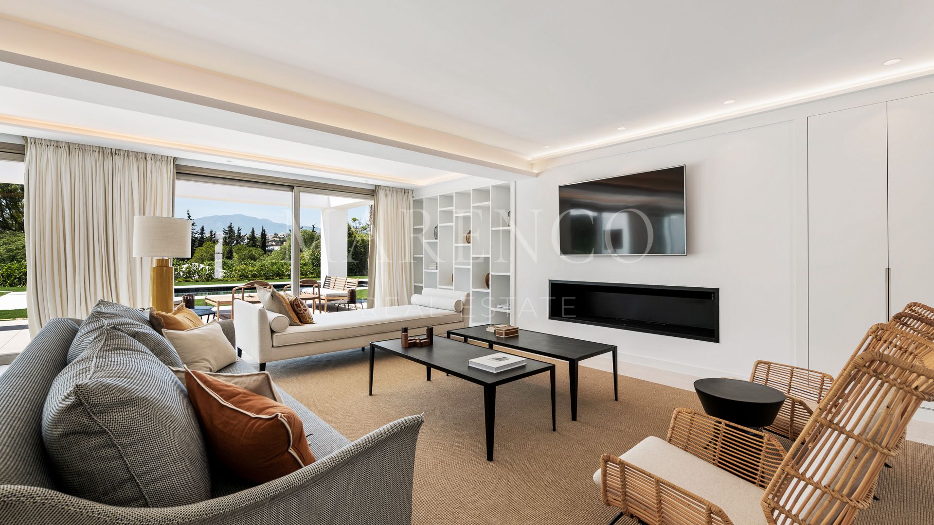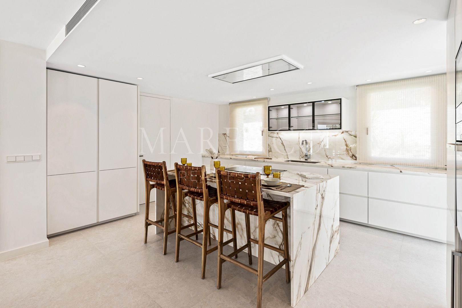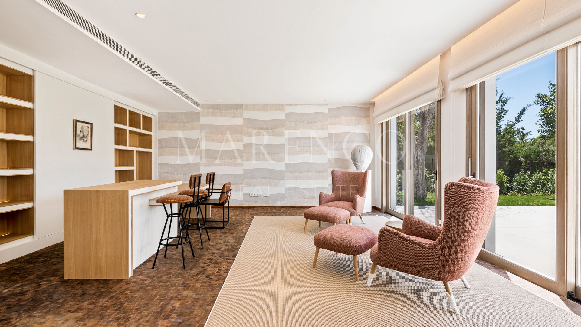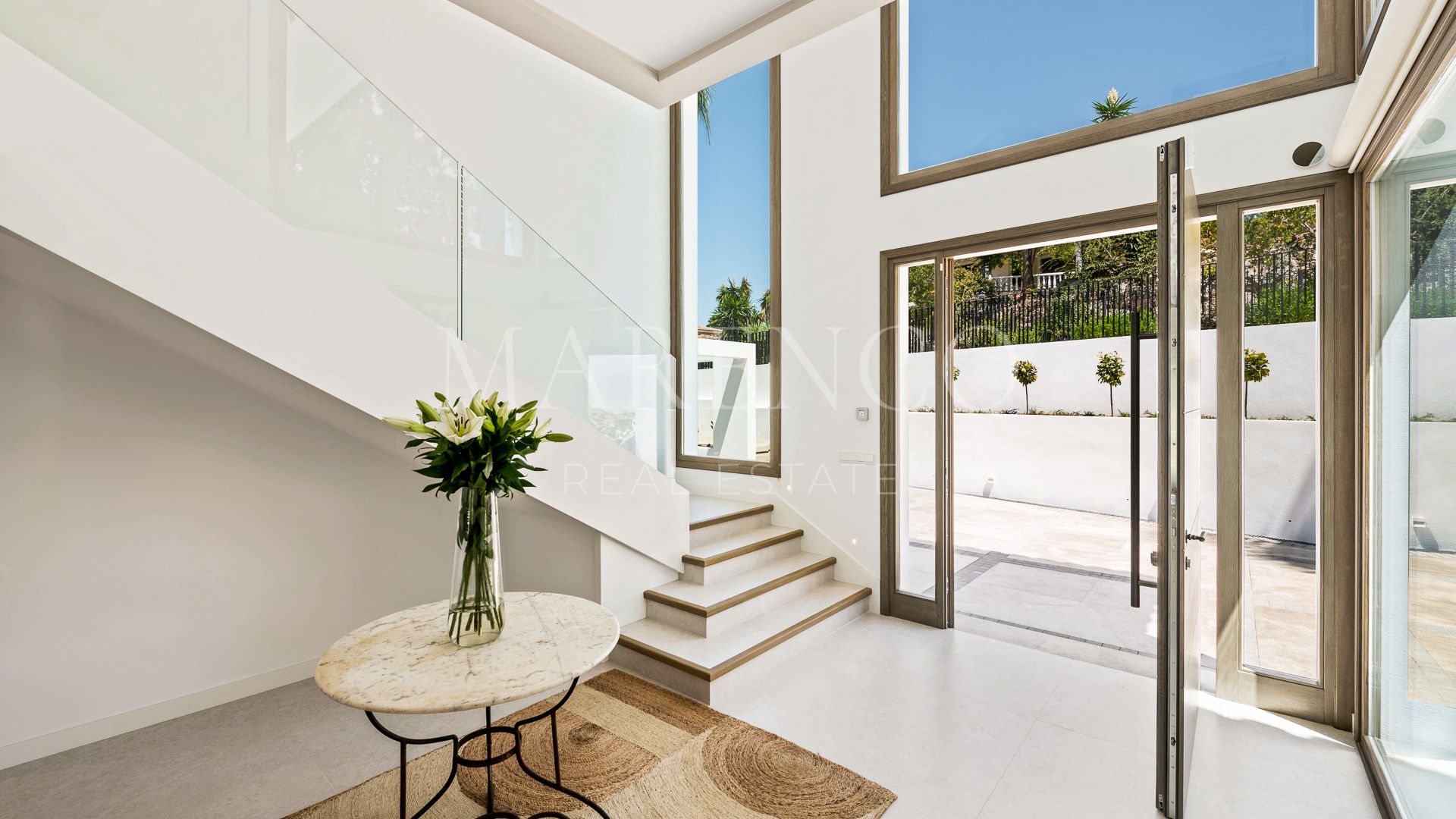 La villa tiene gran entrada con techos de doble altura y una impresionante escalera. Hay una cocina abierta diseñada con mucho gusto que se abre a la sala de estar y al comedor. En el mismo nivel tiene una oficina privada y cuatro dormitorios en suite.
