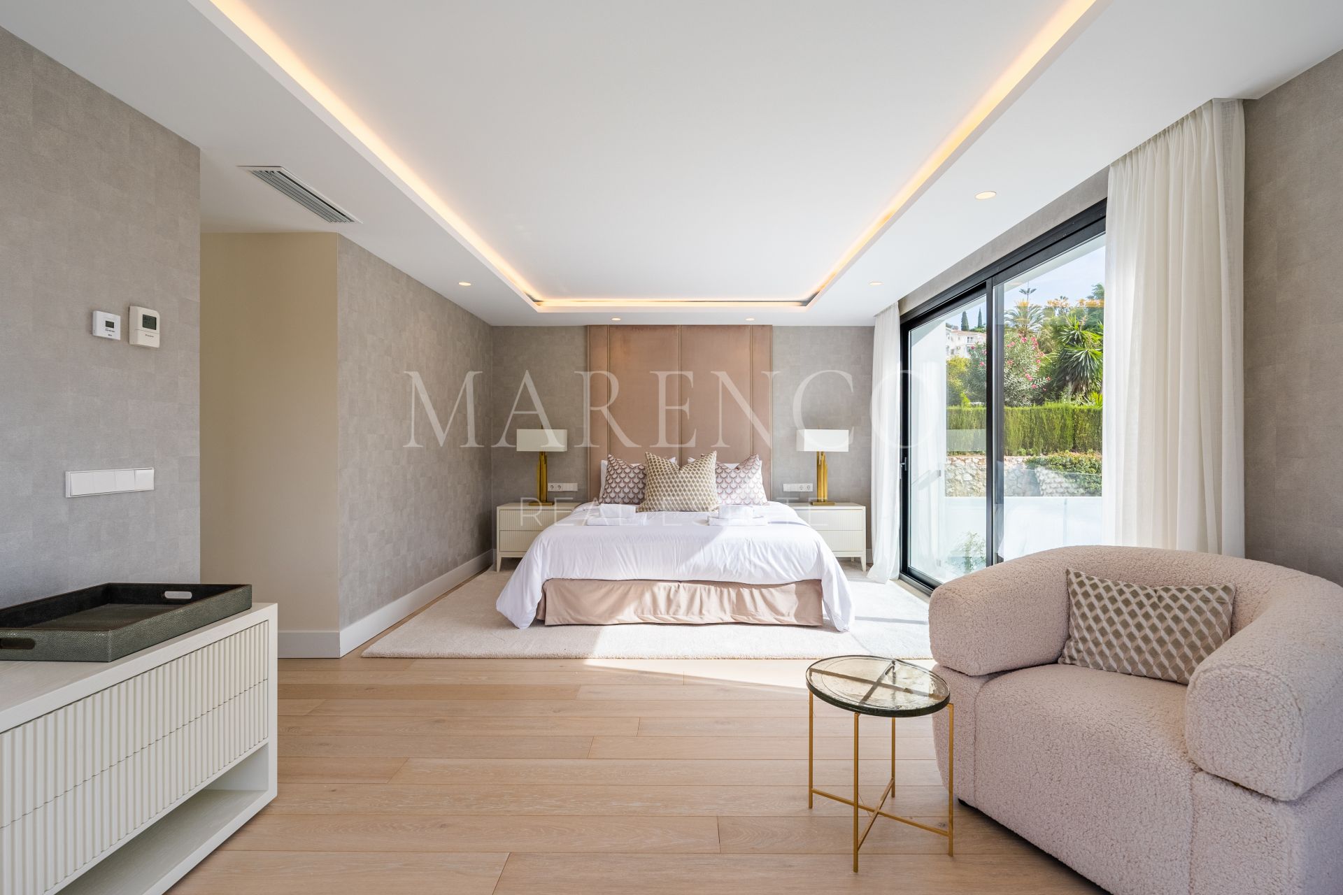 Esta pintoresca villa se encuentra en El Paraiso, en la Nueva Milla de Oro de Estepona. Situada en una zona tranquila y rodeada de propiedades similares de alta gama. Cerca de campos de golf, playas, colegios y restaurantes. A tan solo 10 minutos en coche del famoso Puerto Banús y de la ciudad de Marbella.