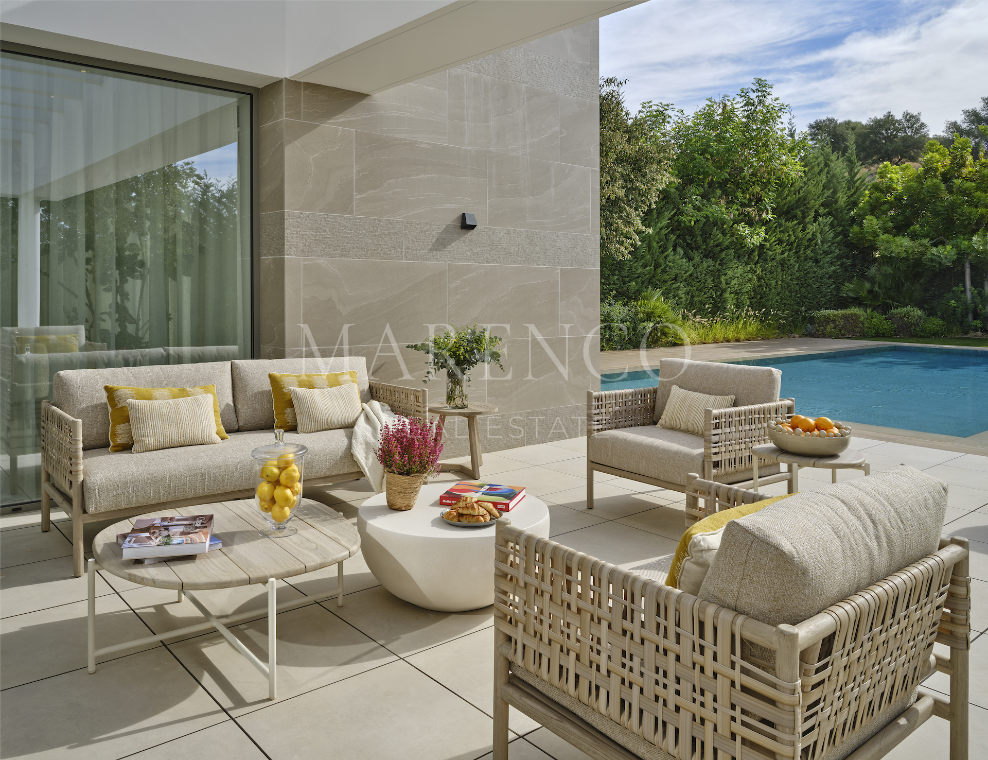 Imagina despertar cada mañana en una elegante villa contemporánea situada en el corazón del New Golden Mile de Marbella, rodeada por la tranquilidad y belleza de El Paraíso. Esta residencia exclusiva, con vistas a la naturaleza y el paisaje mediterráneo, se convierte en el refugio perfecto para aquellos que buscan lo mejor de la vida en la Costa del Sol. Con una arquitectura que fluye entre el interior y el exterior, esta villa de lujo ofrece un estilo de vida incomparable, donde el confort y la privacidad son las características principales.