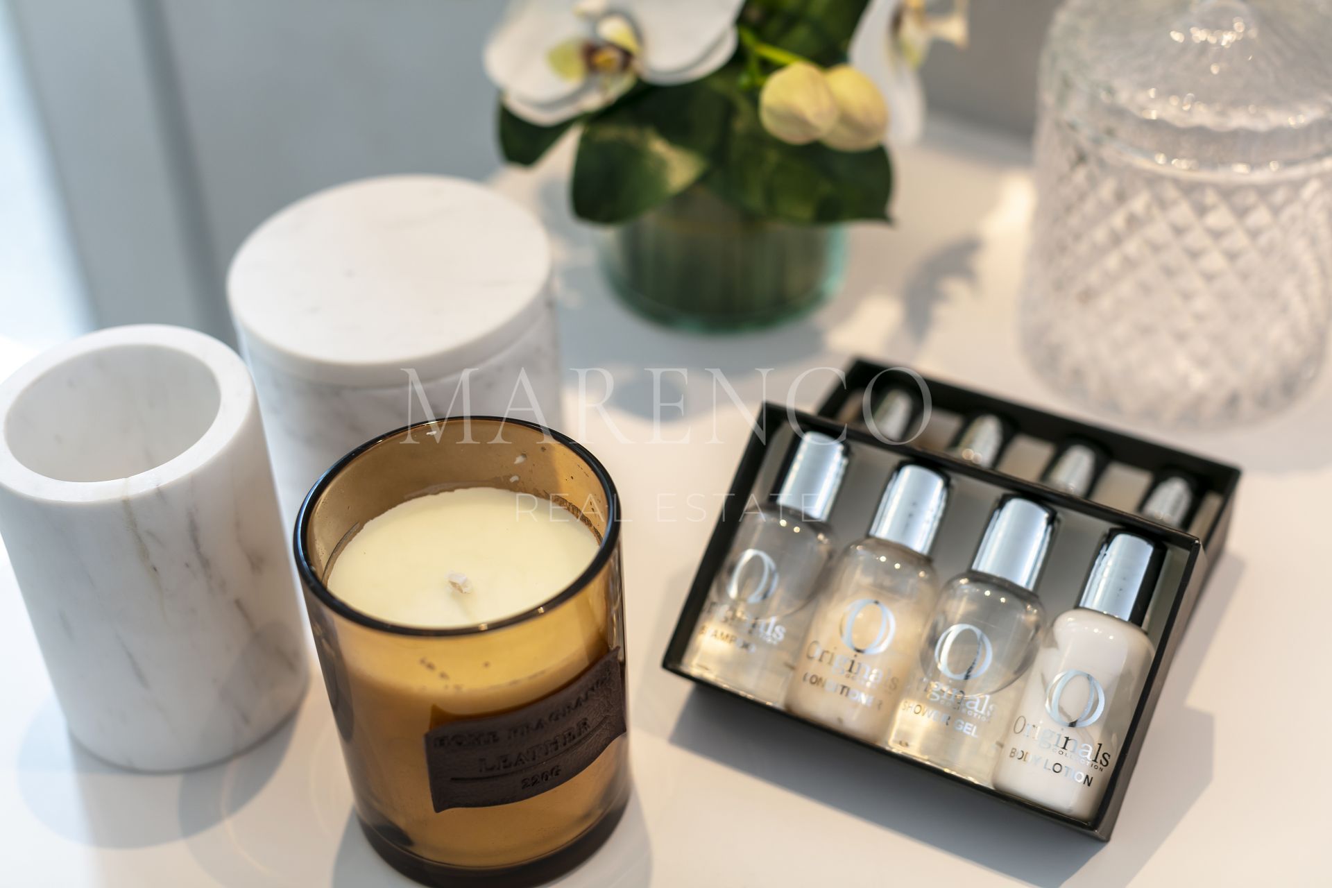 Distribuida en tres niveles, la villa cuenta con 5 amplios dormitorios, todos en-suite, y 5 baños, brindando un espacio generoso y funcional. El salón de concepto abierto, que se conecta perfectamente con una cocina alemana de alta gama, invita a disfrutar de momentos en familia o con amigos. Las grandes puertas correderas se abren hacia una amplia terraza parcialmente cubierta, donde puedes disfrutar del clima perfecto de la Costa del Sol, mientras tomas el sol o cenas al aire libre. Con 656 m² construidos y un total de 808 m² de parcela, la propiedad ofrece un equilibrio ideal entre amplitud y diseño.