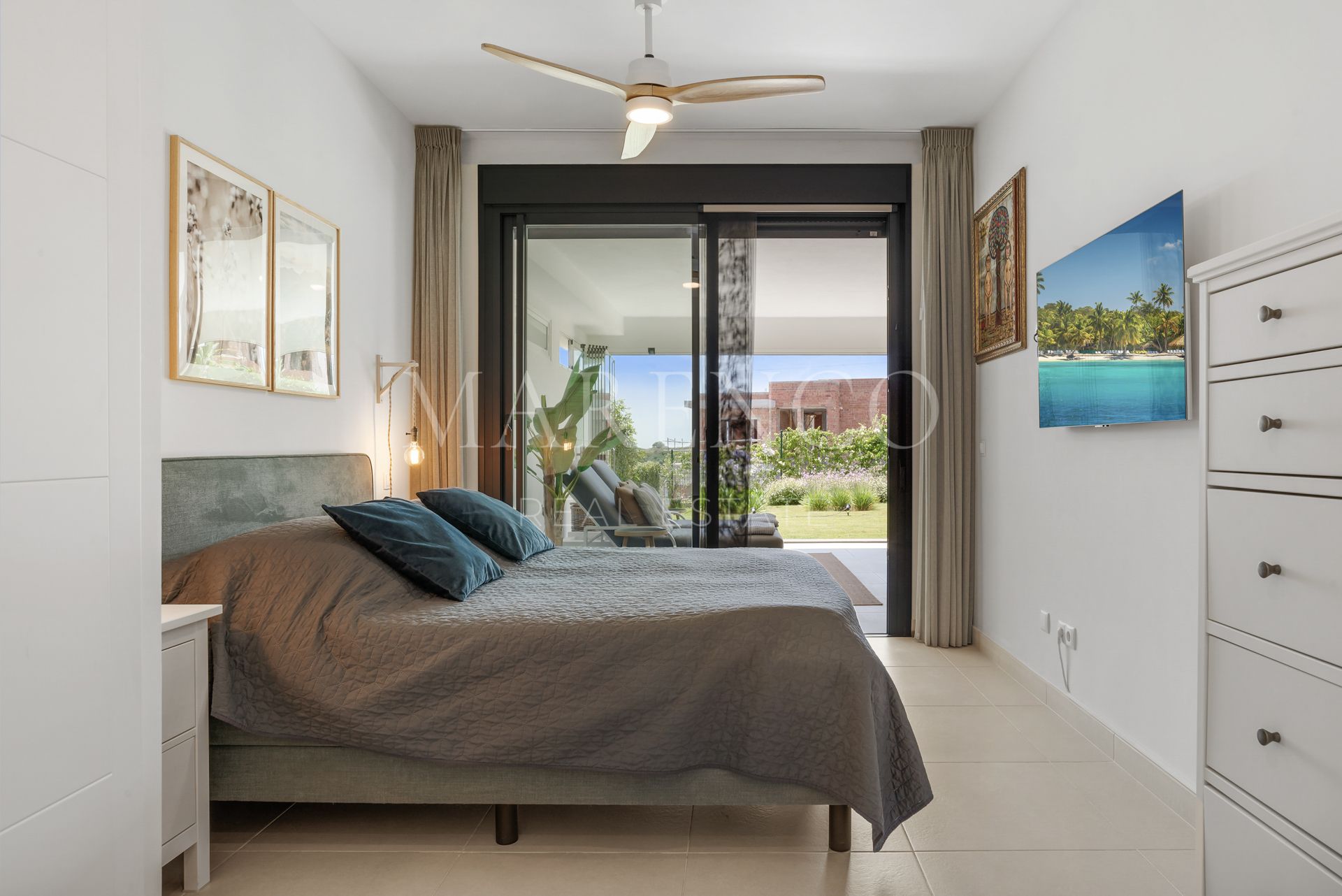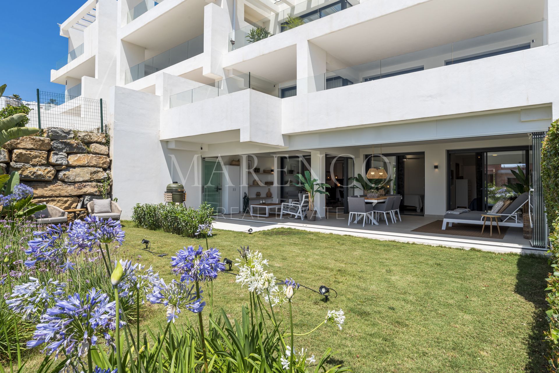 Con una superficie construida de 95 m² y una generosa terraza de 54 m² rodeada de un jardín privado de 87 m², esta residencia ofrece espacios amplios y perfectamente distribuidos. El salón principal conecta de forma fluida con la zona exterior, creando una sensación de continuidad y amplitud. Dispone de dos dormitorios y dos baños, una cocina completamente equipada y materiales de alta calidad en cada detalle, reflejando un equilibrio ideal entre funcionalidad y diseño.