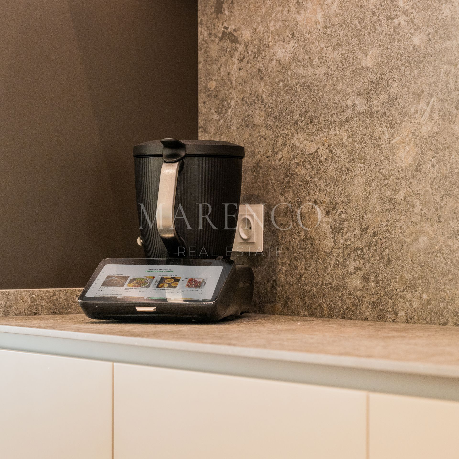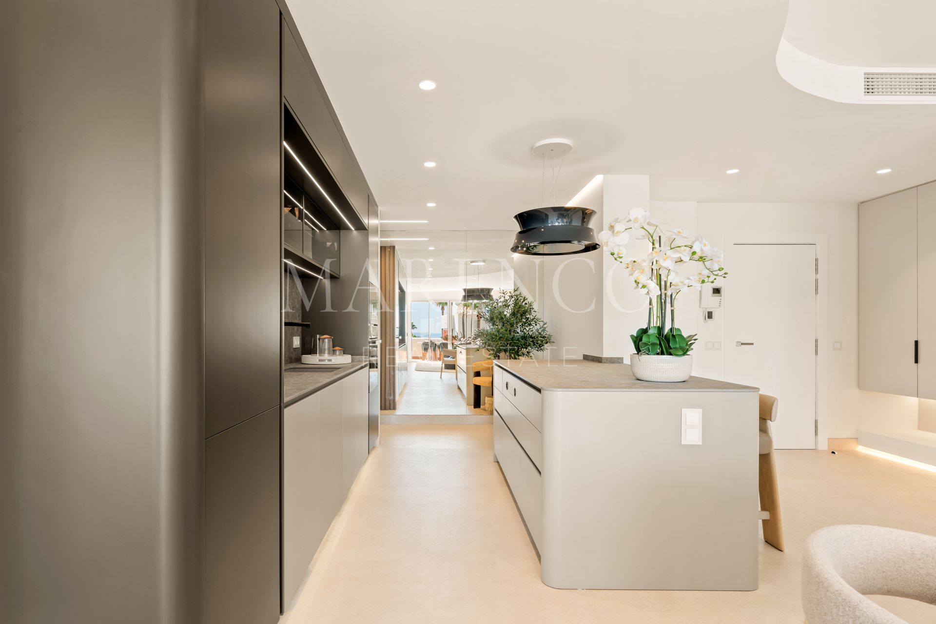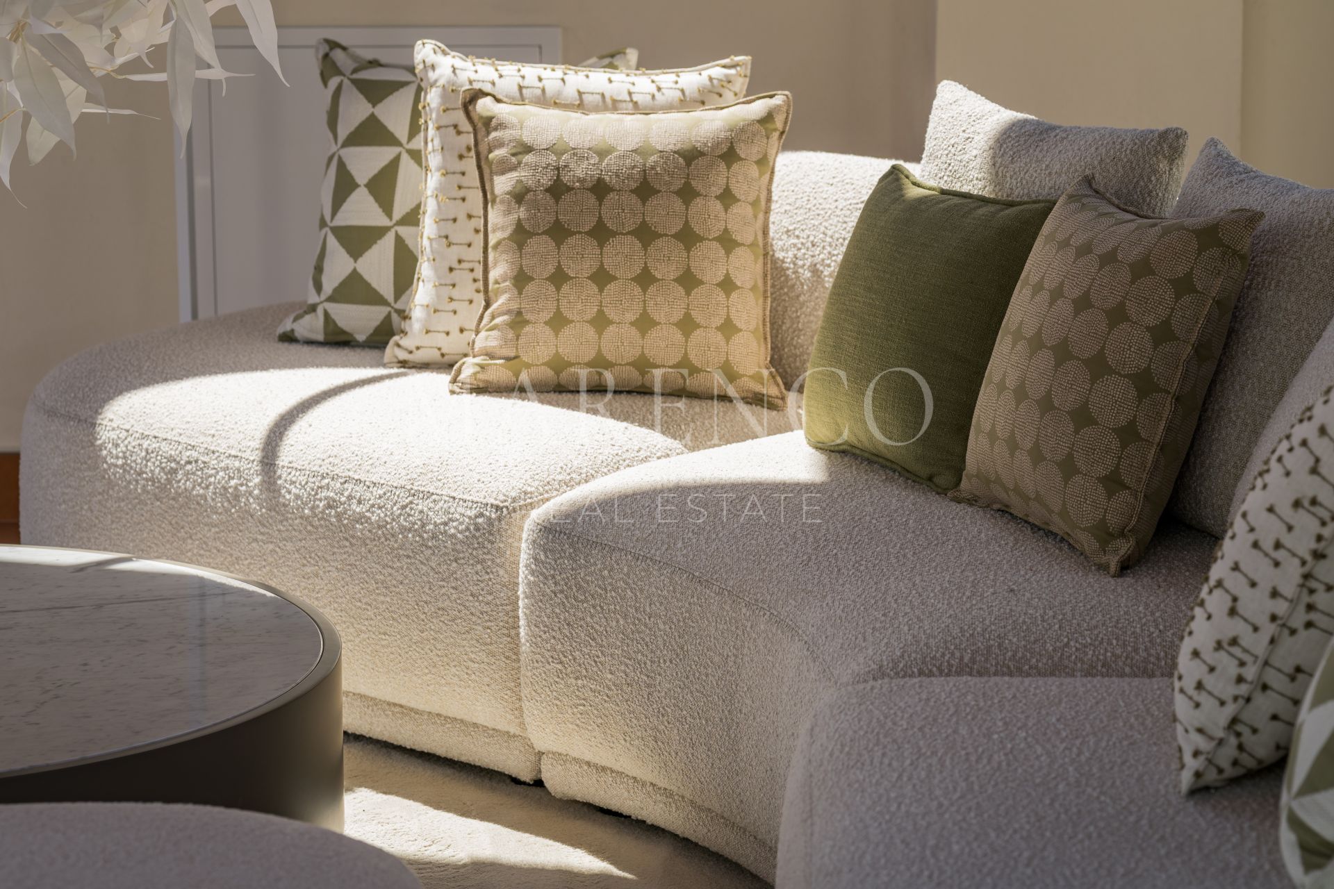 Totalmente renovada con la más alta calidad alemana, esta residencia cuenta con 134 m² construidos y una amplia terraza de 183 m². La distribución incluye 3 amplios dormitorios y 2 modernos baños, un gran salón de planta abierta con vistas directas al mar y un dormitorio principal que se abre a la terraza. Cada detalle ha sido cuidadosamente elegido, desde la cocina de diseño hasta el sistema de sonido Bang & Olufsen.