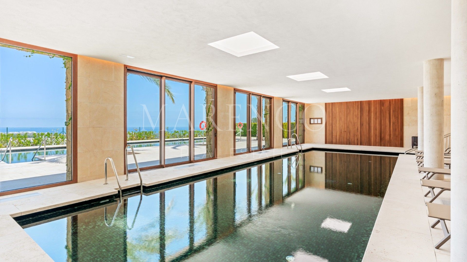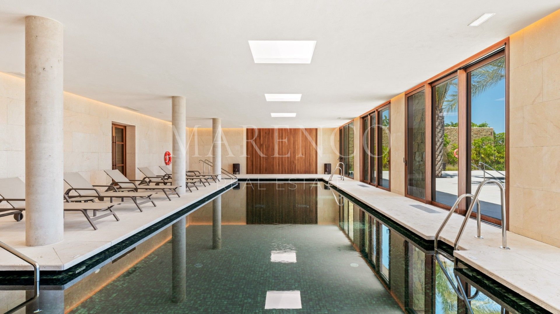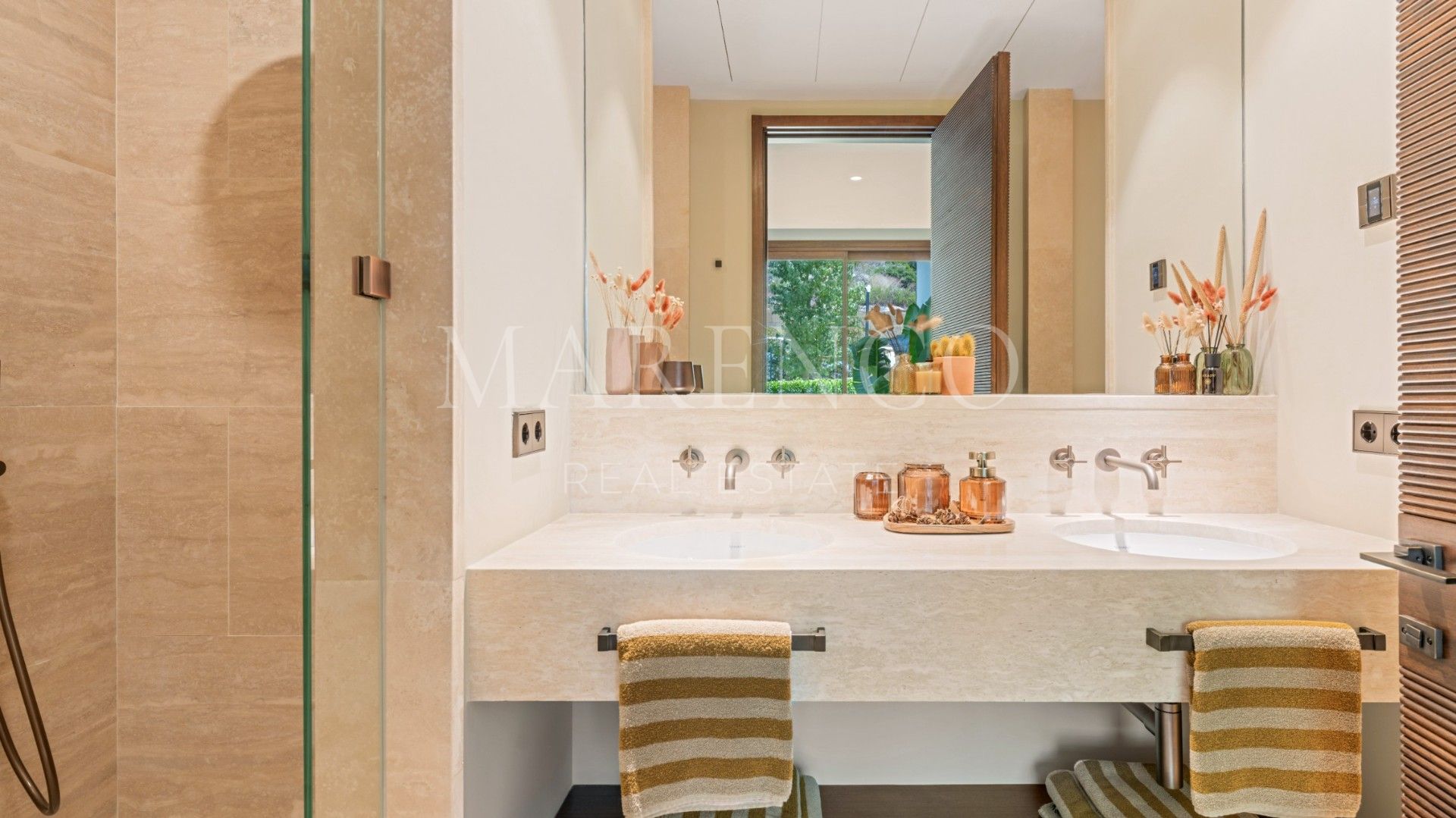 El interior del piso se distingue por su elegancia y atención al detalle. Cuenta con tres dormitorios, cada uno con su propio baño en suite, proporcionando privacidad y confort. Además, hay un aseo de invitados adicional. El amplio salón-comedor es perfecto para entretener a los invitados y disfrutar de momentos en familia. La cocina, equipada con materiales de lujo y electrodomésticos de alta gama, es ideal para los amantes de la cocina que buscan un espacio funcional y sofisticado.