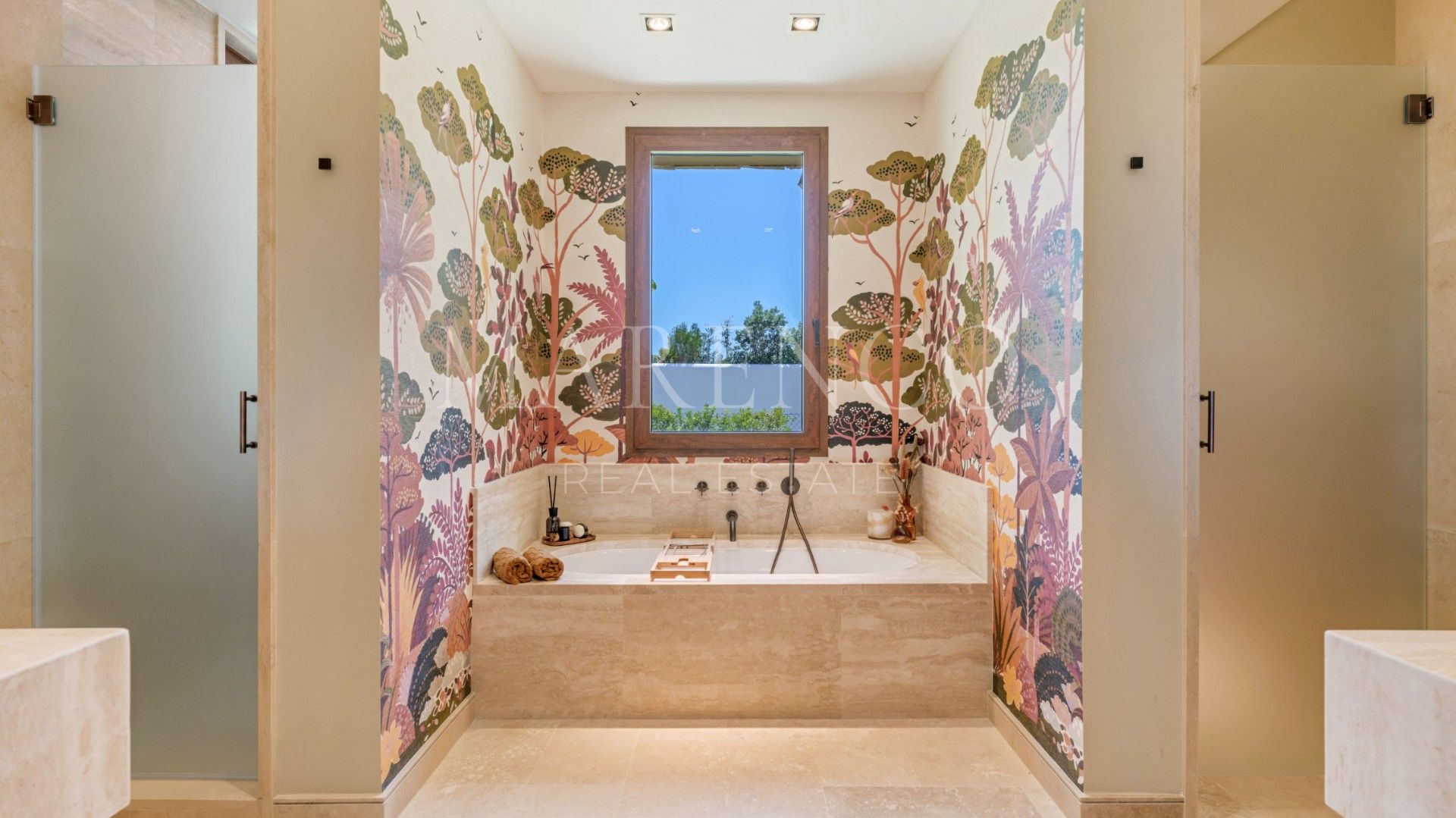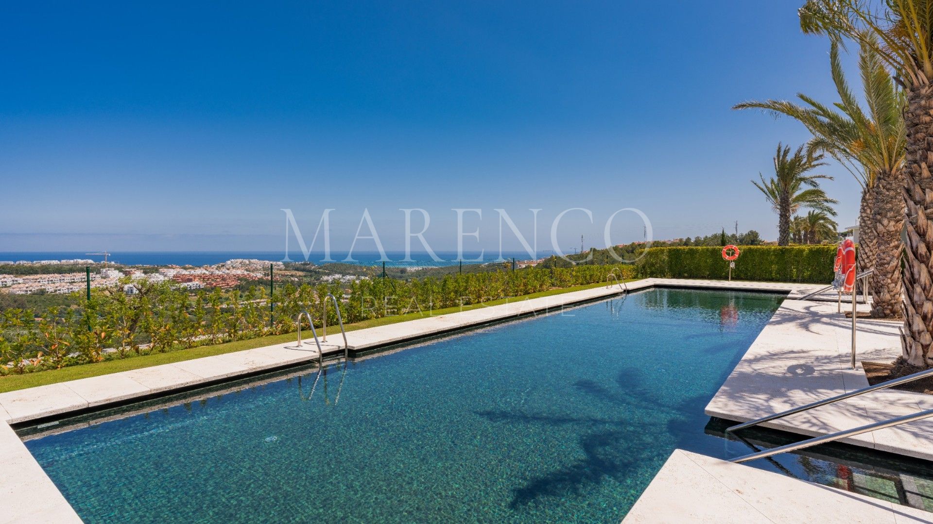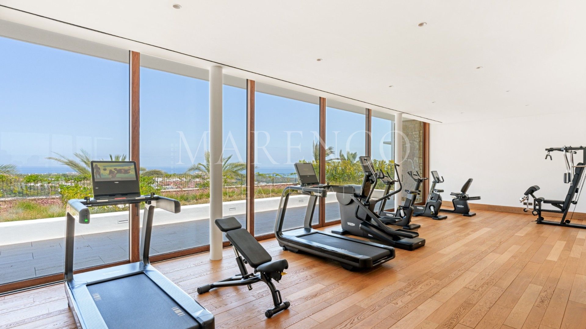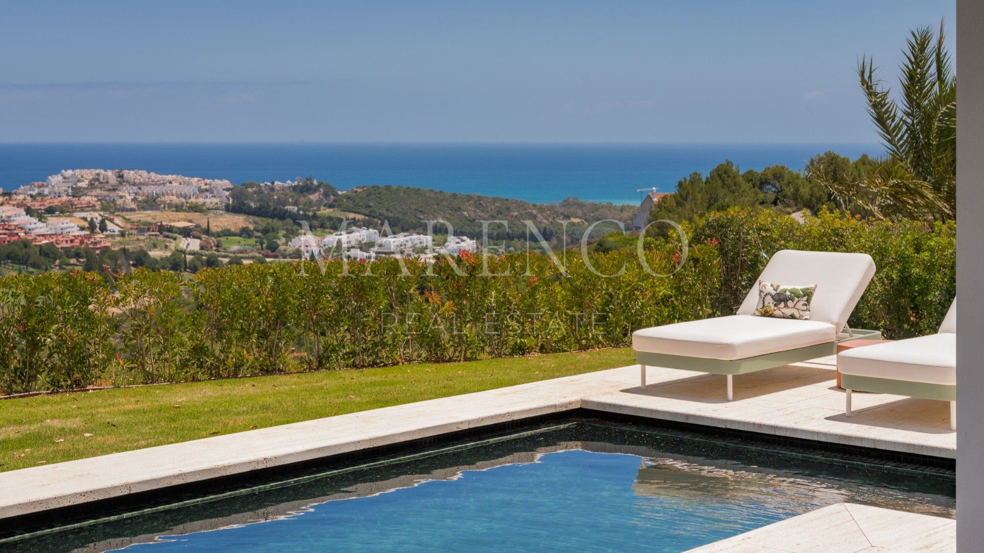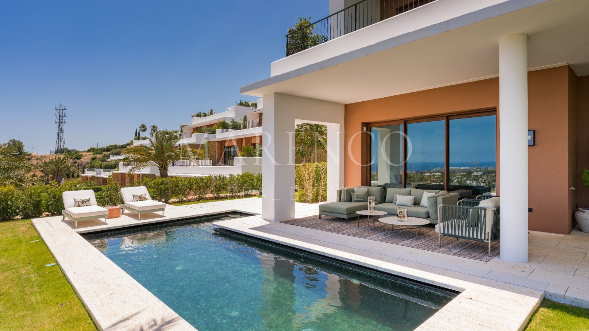 El exterior de la vivienda cuenta con un cuidado jardín, ideal para disfrutar del clima mediterráneo y las actividades al aire libre. La propiedad dispone de una piscina privada y una amplia terraza, perfecta para relajarse y disfrutar de las impresionantes vistas al mar y al campo de golf. Este entorno es ideal para el ocio y el disfrute de la vida al aire libre en un ambiente exclusivo y tranquilo.