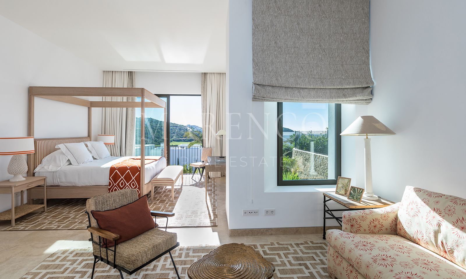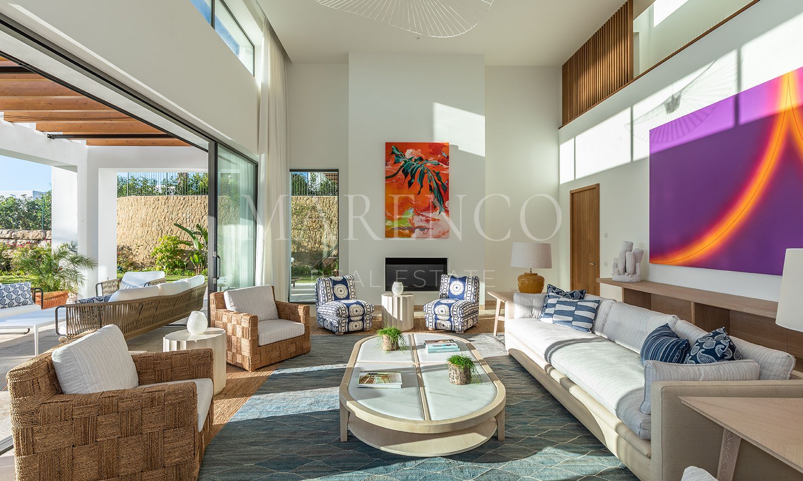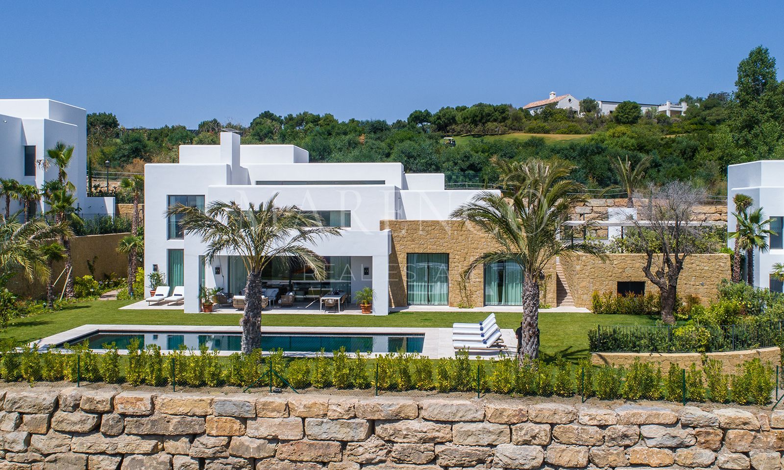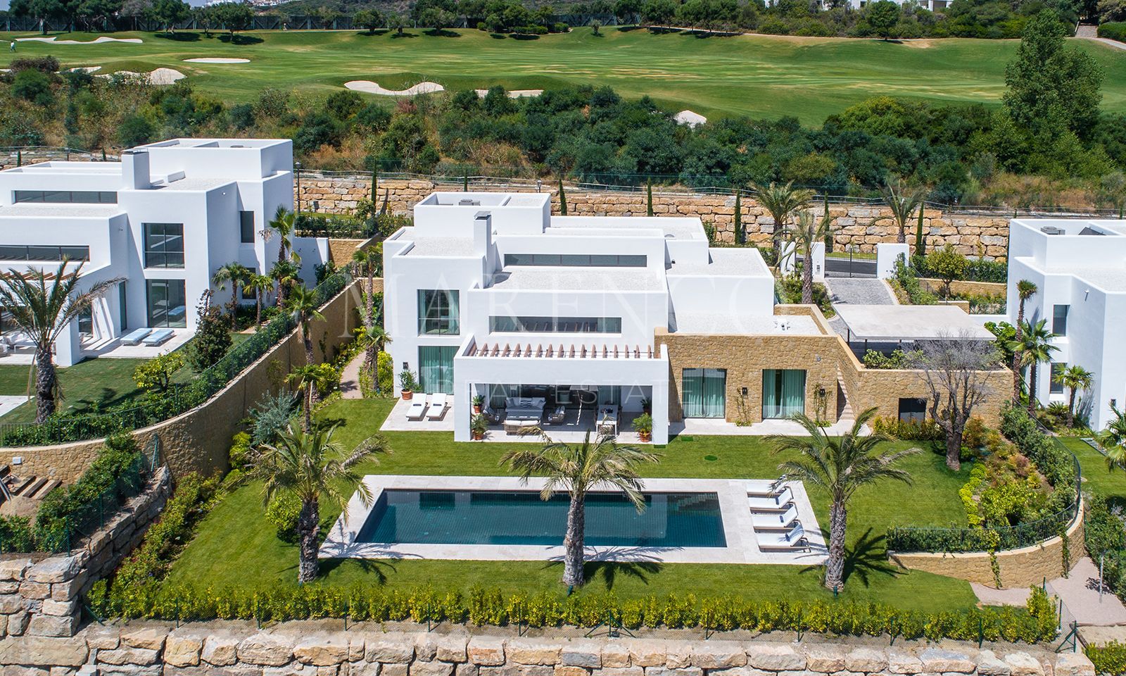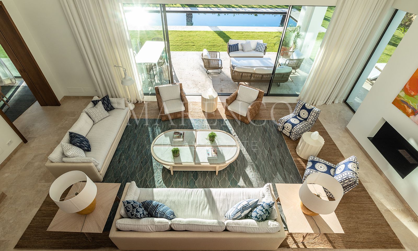 Villas en la zona más exclusiva, una promoción de 16 villas de diseño moderno vanguardista y majestuoso, en parcelas de hasta 2.200 m2, con una construcción interior de 601 a 724 m2 y, todas ellas, con espectaculares vistas al golf. Se venden villas con 4, 5 y 6 dormitorios en suite, salones de hasta 90 m2 y techos de 5,5 m de altura.