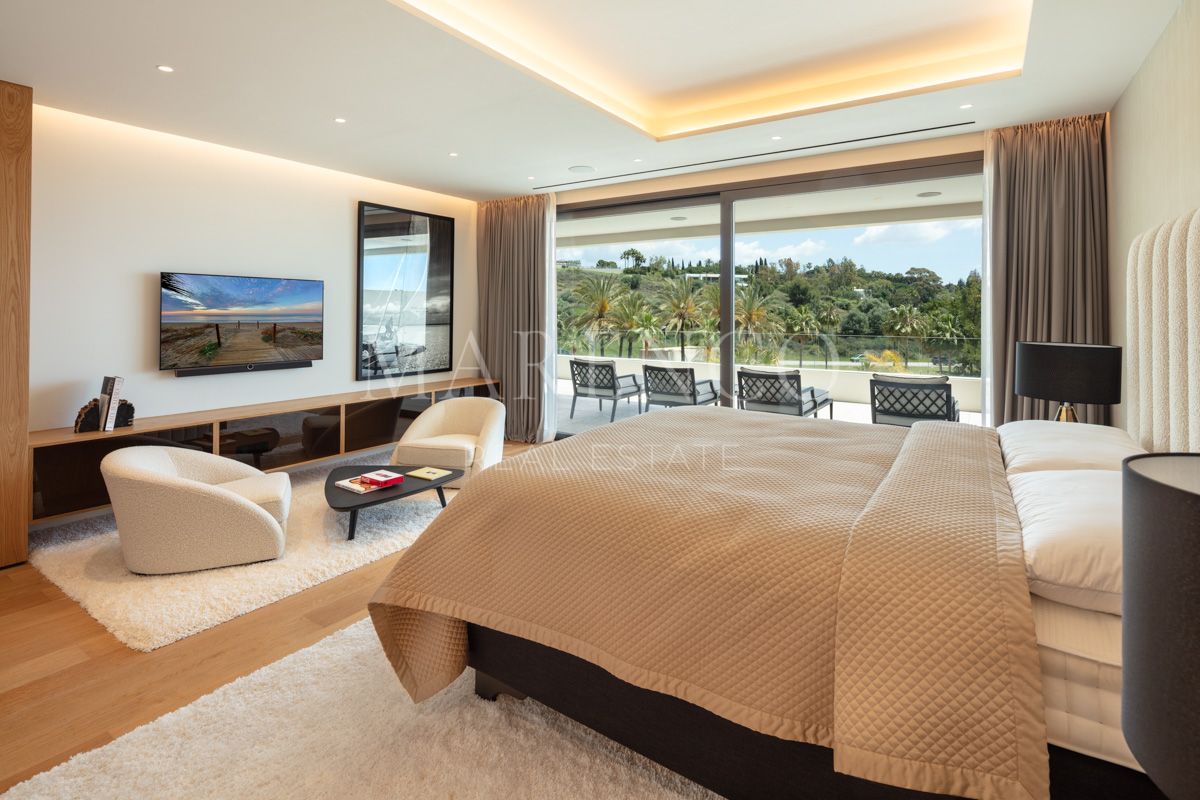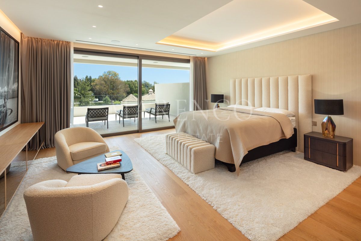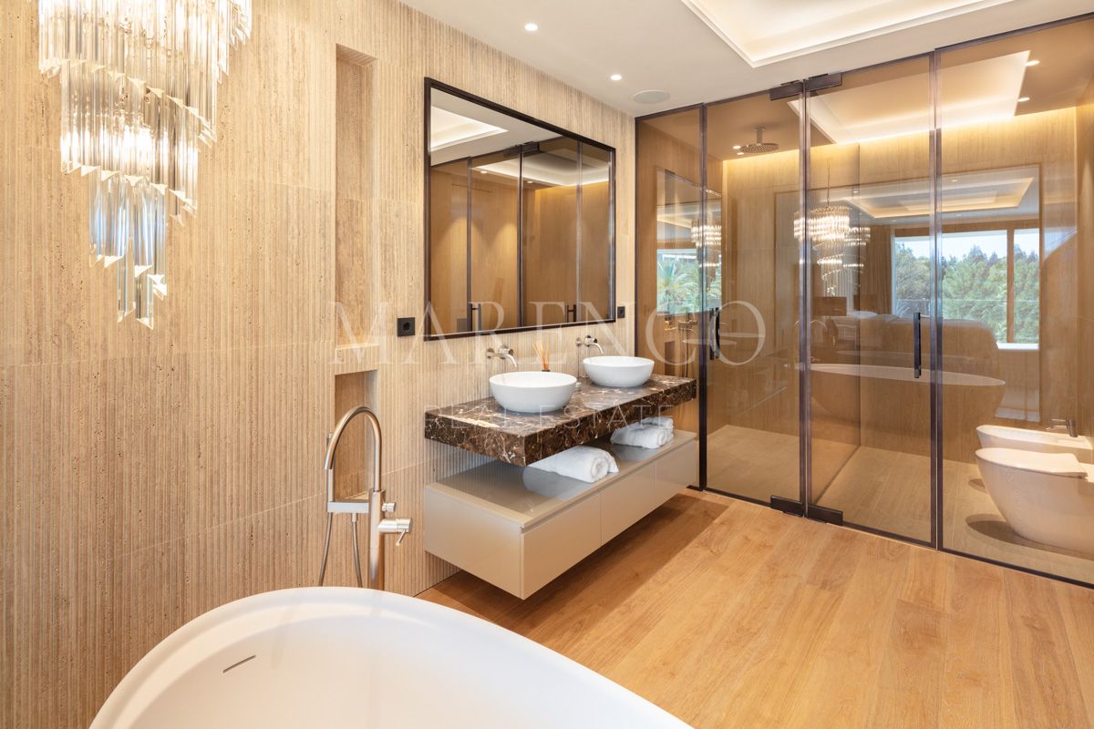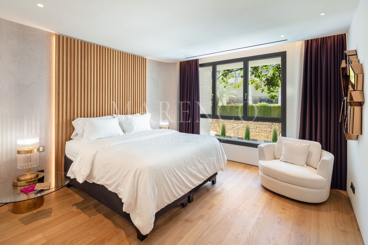 Desde el salón podemos salir a una maravillosa terraza con un ambiente muy relajado que cuenta con sensacionales vistas a su piscina y su magnifico solarium y jardines. En esta misma planta tenemos 3 resplandecientes habitaciones con cuartos de baño en-suite. El dormitorio principal cuenta con un vestidor individual y un moderno cuarto de baño con bañera y ducha.