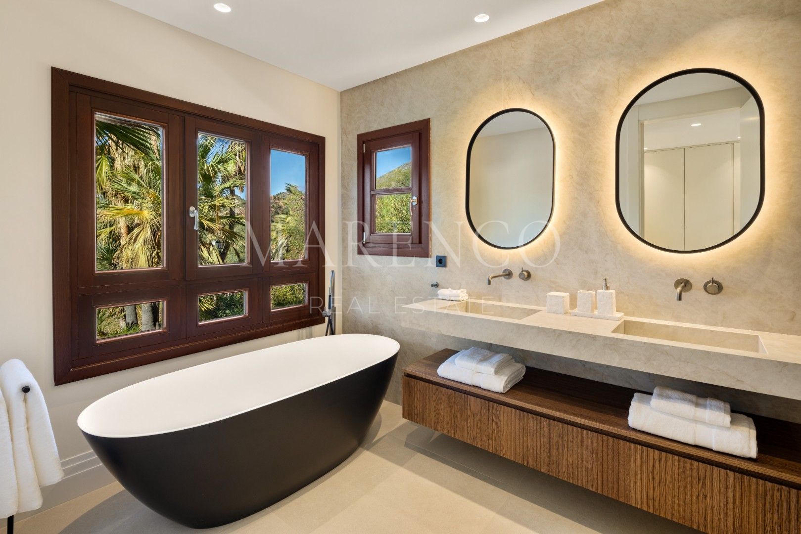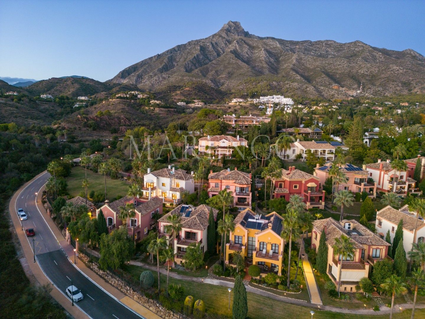 La Capellanía 1 es una encantadora casa mediterránea con una ubicación privilegiada dentro de la urbanización La Capellanía, situada en las afueras de Sierra Blanca. Cabe destacar su estilo mediterráneo con sus paredes blancas y tejas tradicionales en el techo. Capellanía 1 también cuenta con una generosa cantidad de terrazas, que permiten a los residentes disfrutar de los espacios exteriores. Las terrazas incluyen áreas de descanso y comedor al aire libre, así como acceso directo a los niveles de la planta baja. Esta casa también tiene acceso a un impresionante jardín comunitario, meticulosamente cuidado, que fomenta un sentido de comunidad. Además, hay una amplia piscina comunitaria para disfrutar durante todo el año.