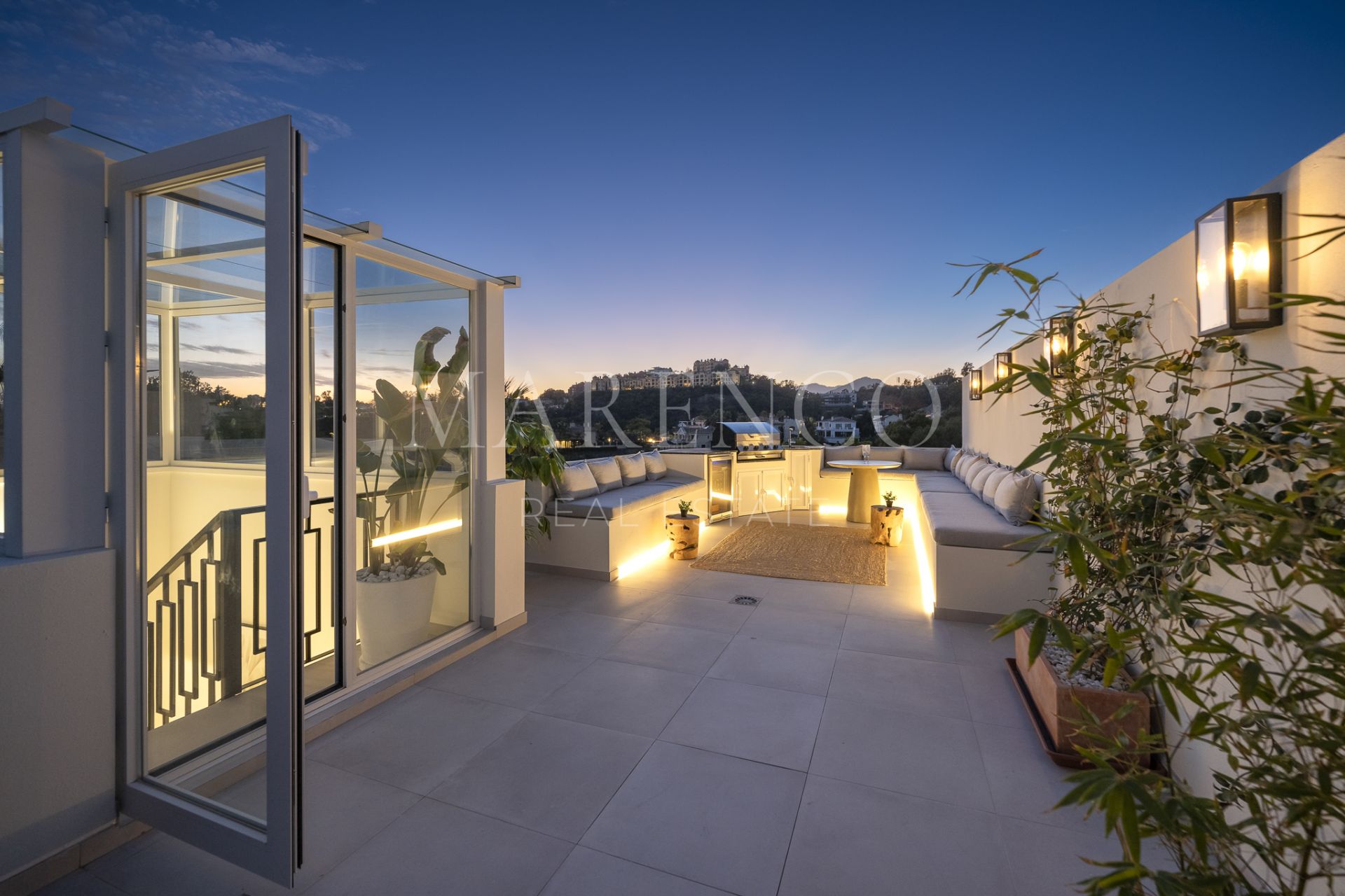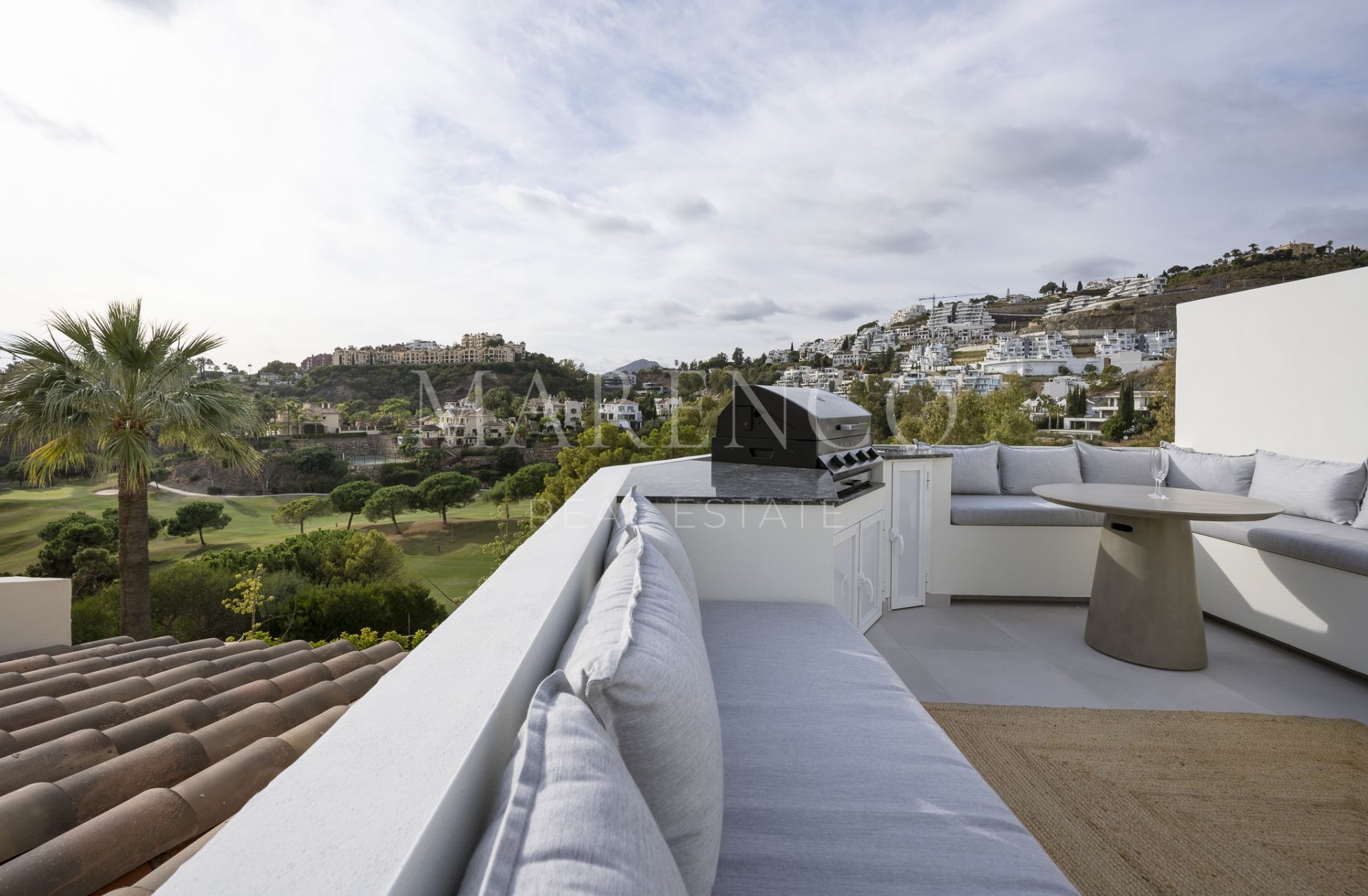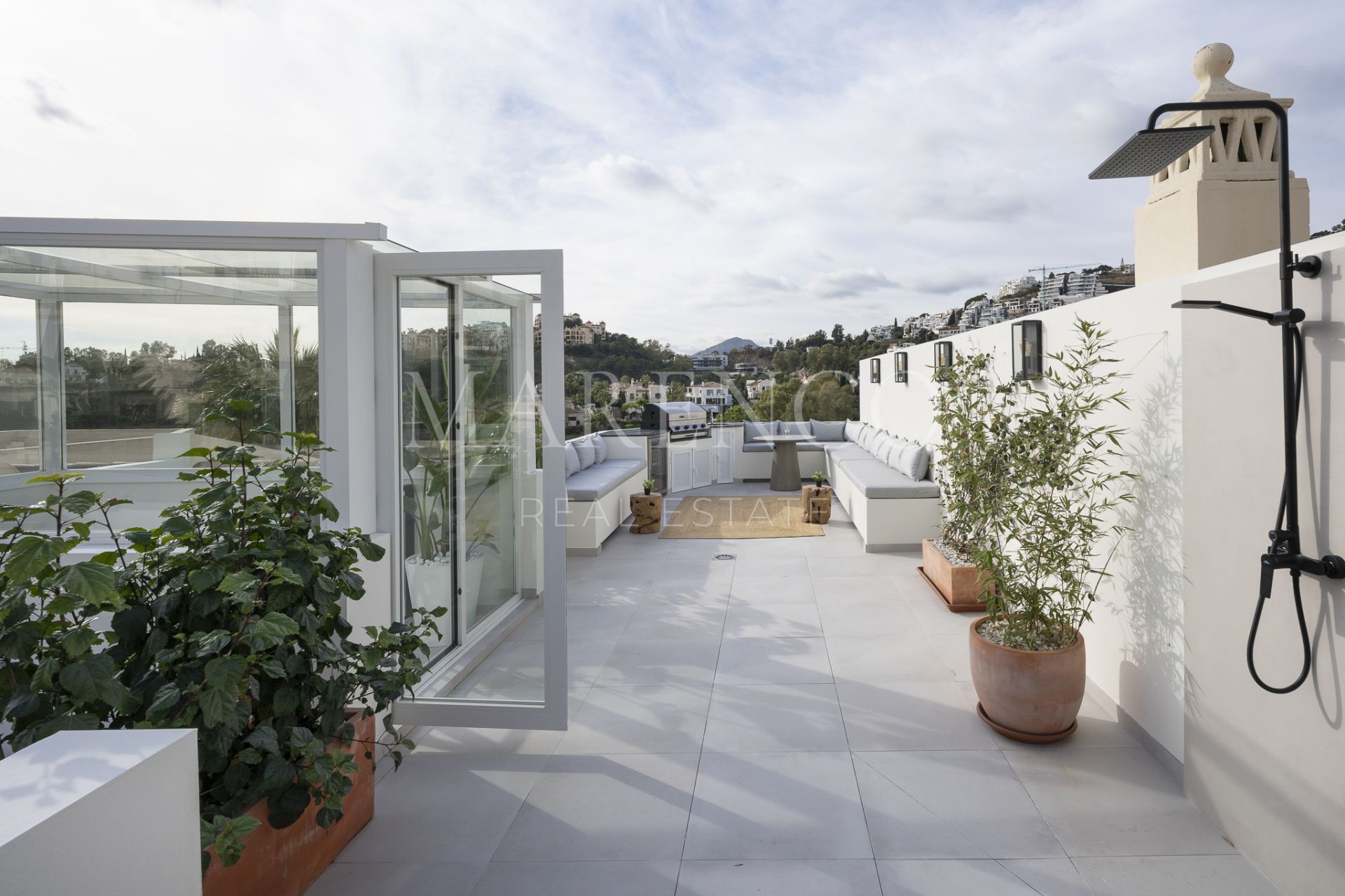 En la planta superior, hay un solárium con gimnasio al aire libre, zona de barbacoa y chill-out y un espacio exterior extra. Esta zona ofrece una vista panorámica a la montaña, campos de golf y al mar.