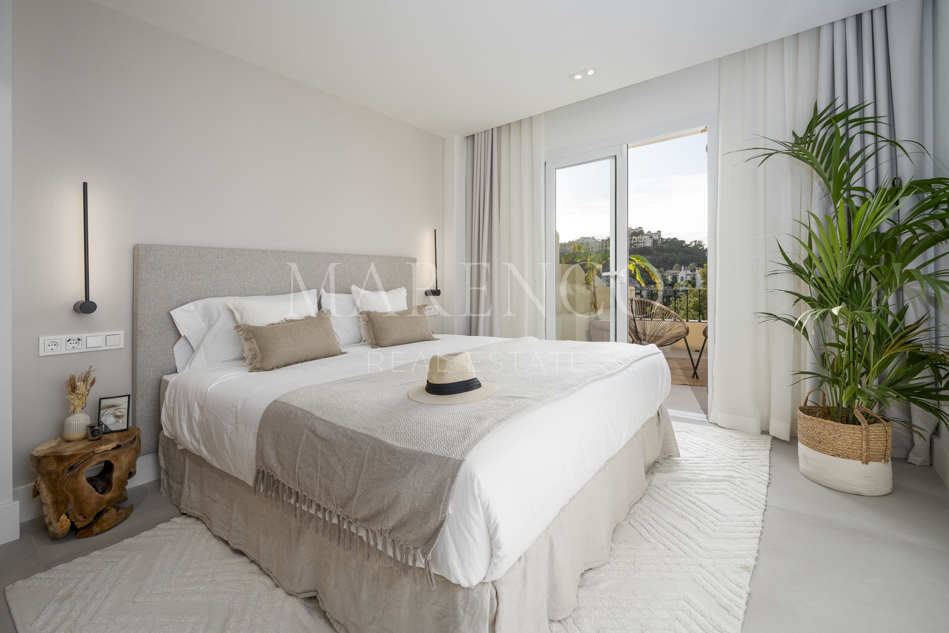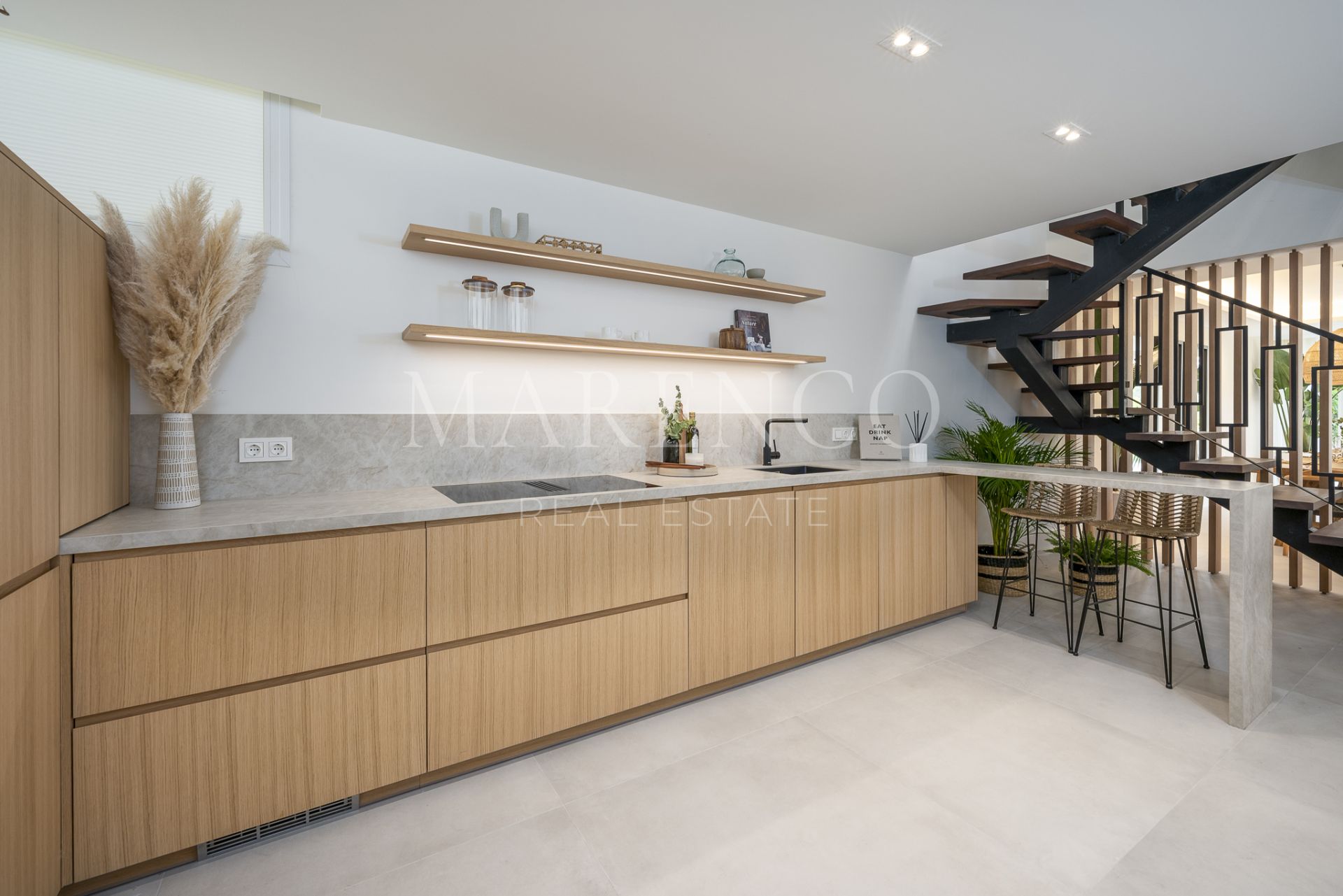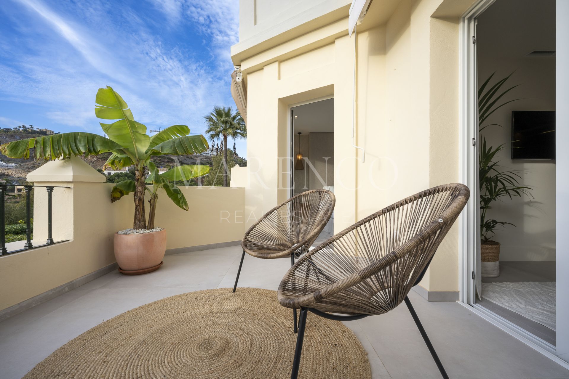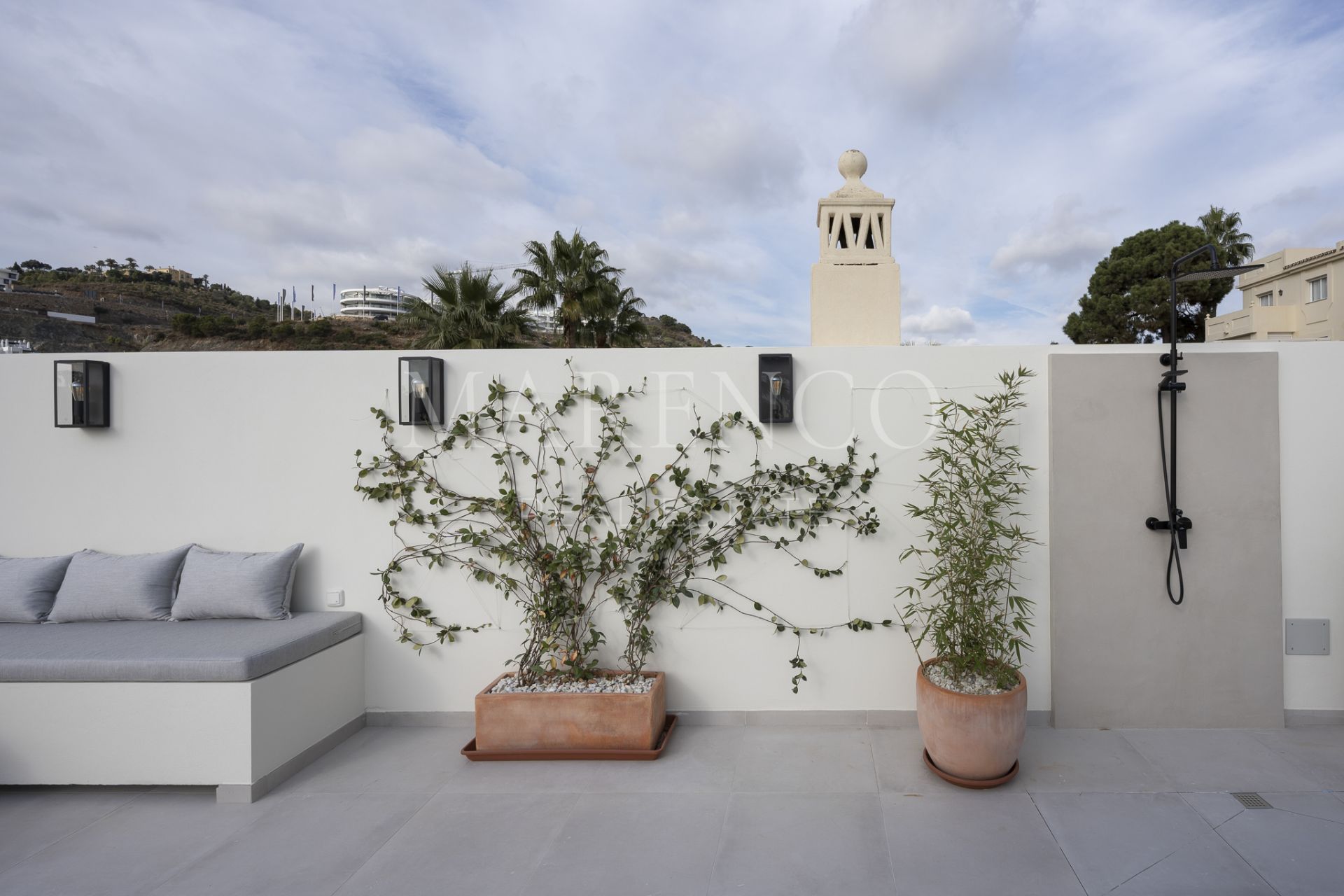 En la planta superior, hay un solárium con gimnasio al aire libre, zona de barbacoa y chill-out y un espacio exterior extra. Esta zona ofrece una vista panorámica a la montaña, campos de golf y al mar.