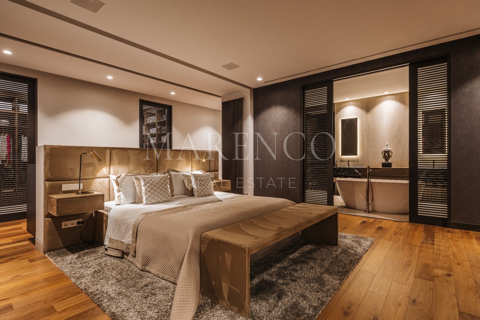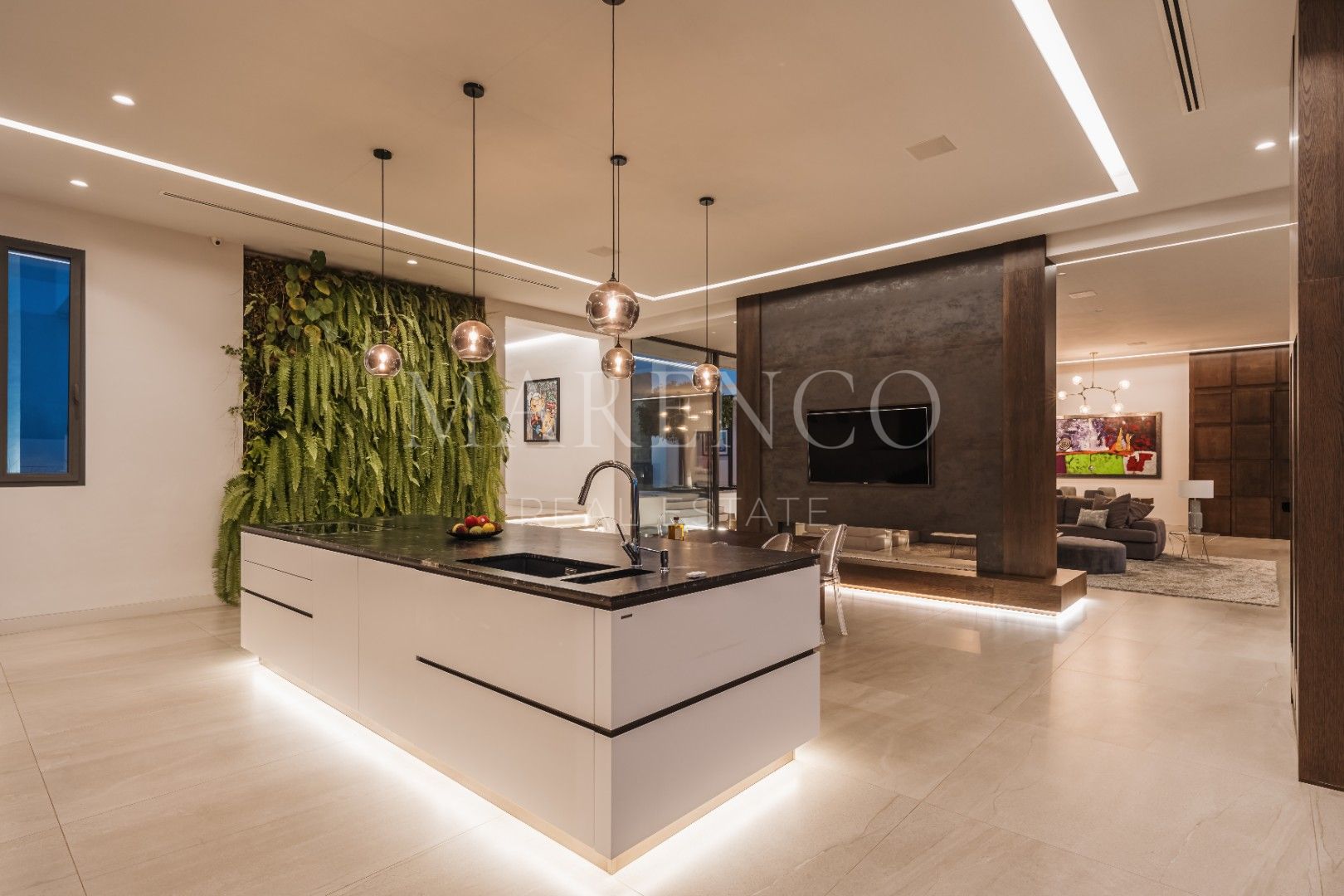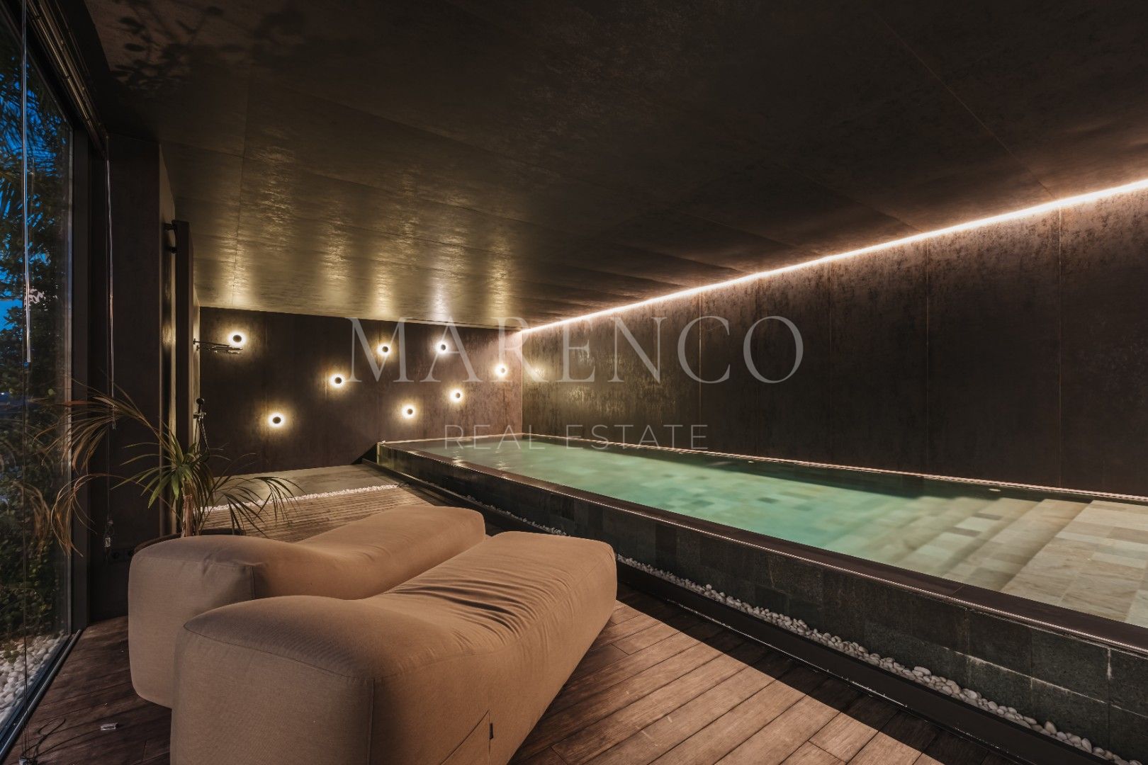 Se encuentra en una parcela de casi 6,000m² , distribuida en una sola planta, esta amplia villa de 1.021m2 .Al llegar a través del camino de entrada privado, te recibirán las vistas enmarcadas por el generoso garaje y la silueta elegante de la propiedad. El espectacular hall de entrada de doble altura, encapsulado en vidrio para maximizar la luz, te dejará sin aliento desde el primer momento. Una de las características más destacadas es el lujoso atrio central, que alberga césped, árboles y una piscina, rodeado por las zonas de estar de una sola planta. Esta moderna mansión marbellí cuenta con seis dormitorios y nueve baños, una sala de cine, gimnasio y spa, piscinas cubiertas y al aire libre, un amplio jardín de siete plantas, una piscina interior y exterior, un garaje para siete coches y dependencias independientes para el personal.