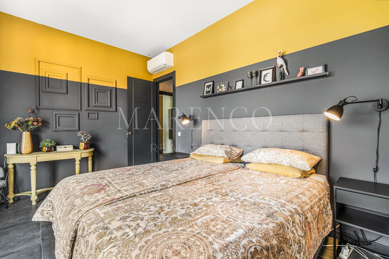 La cocina, de origen alemán, está equipada con electrodomésticos de alta gama, como horno y frigorífico/congelador de la marca Smeg, y un lavavajillas Siemens que se controla a través de una aplicación. La encimera de piedra natural de granito negro y la cocina blanca se integran perfectamente con la tira de iluminación LED que proporciona un ambiente elegante y moderno.