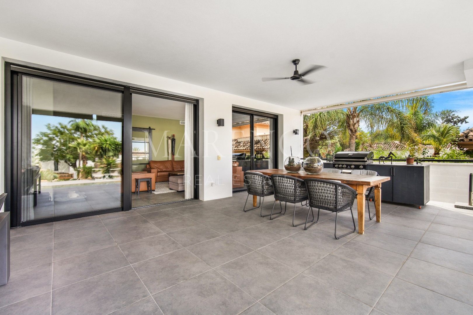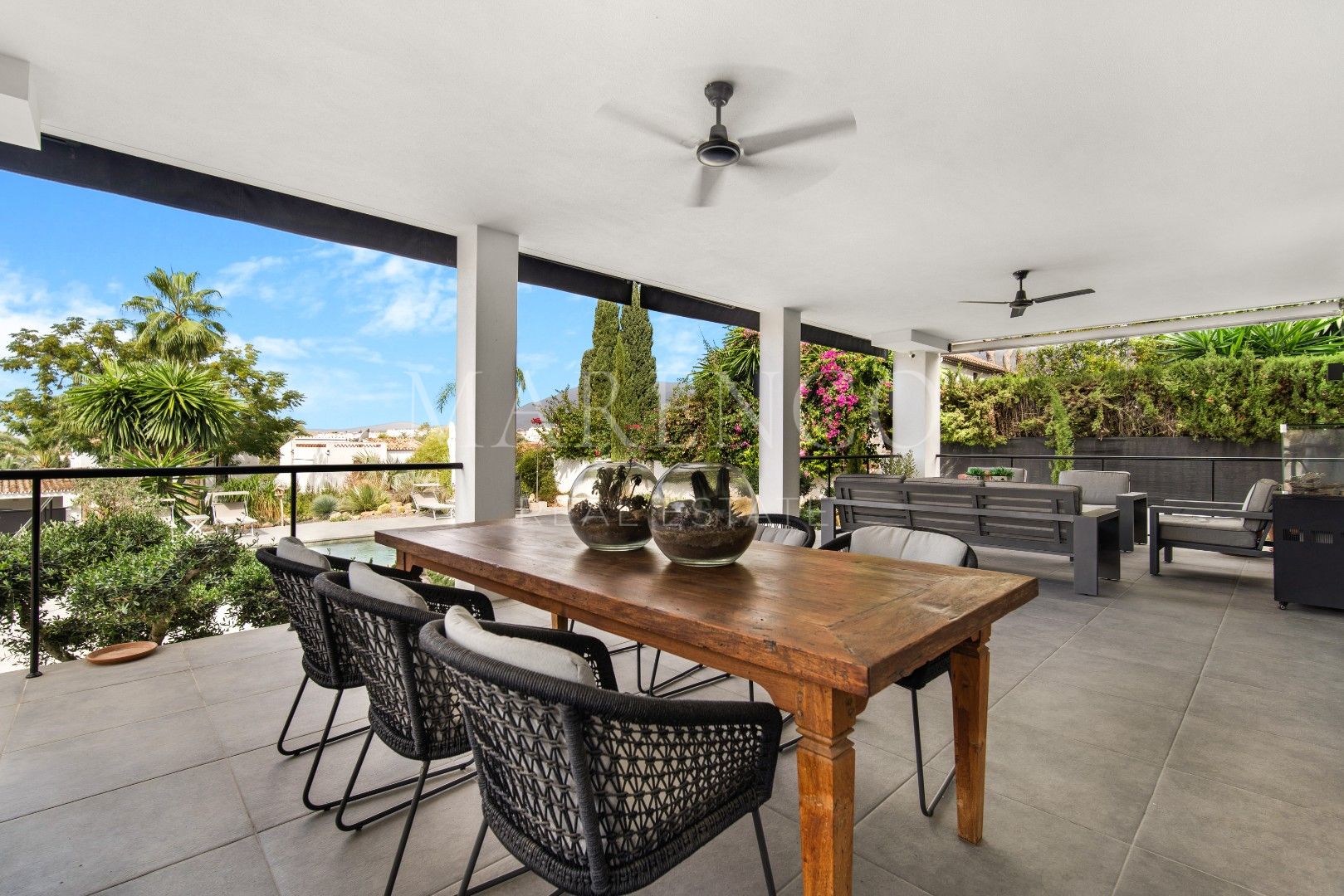 Os presento Villa Flora, excepcional villa independiente ubicada en la tranquila urbanización de Lomas del Pozuelo, dentro del prestigioso Río Real, Marbella. Se encuentra a un paso de elegantes clubes de playa y uno de los mejores campos de golf en la Costa del Sol. Con una ubicación estratégica, está a tan solo cinco minutos en coche de la ciudad y la playa, así como a 35 minutos del aeropuerto.