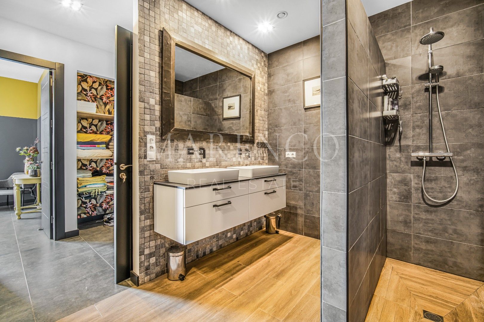 Los detalles de esta villa son impresionantes: la piscina, revestida con baldosas especiales para piscinas de la reconocida empresa española Serena Mix, brinda un aspecto exclusivo tanto a la piscina como al jardín, acorde con el estándar de una propiedad de esta categoría. La piscina también cuenta con una refrescante zona de ducha.