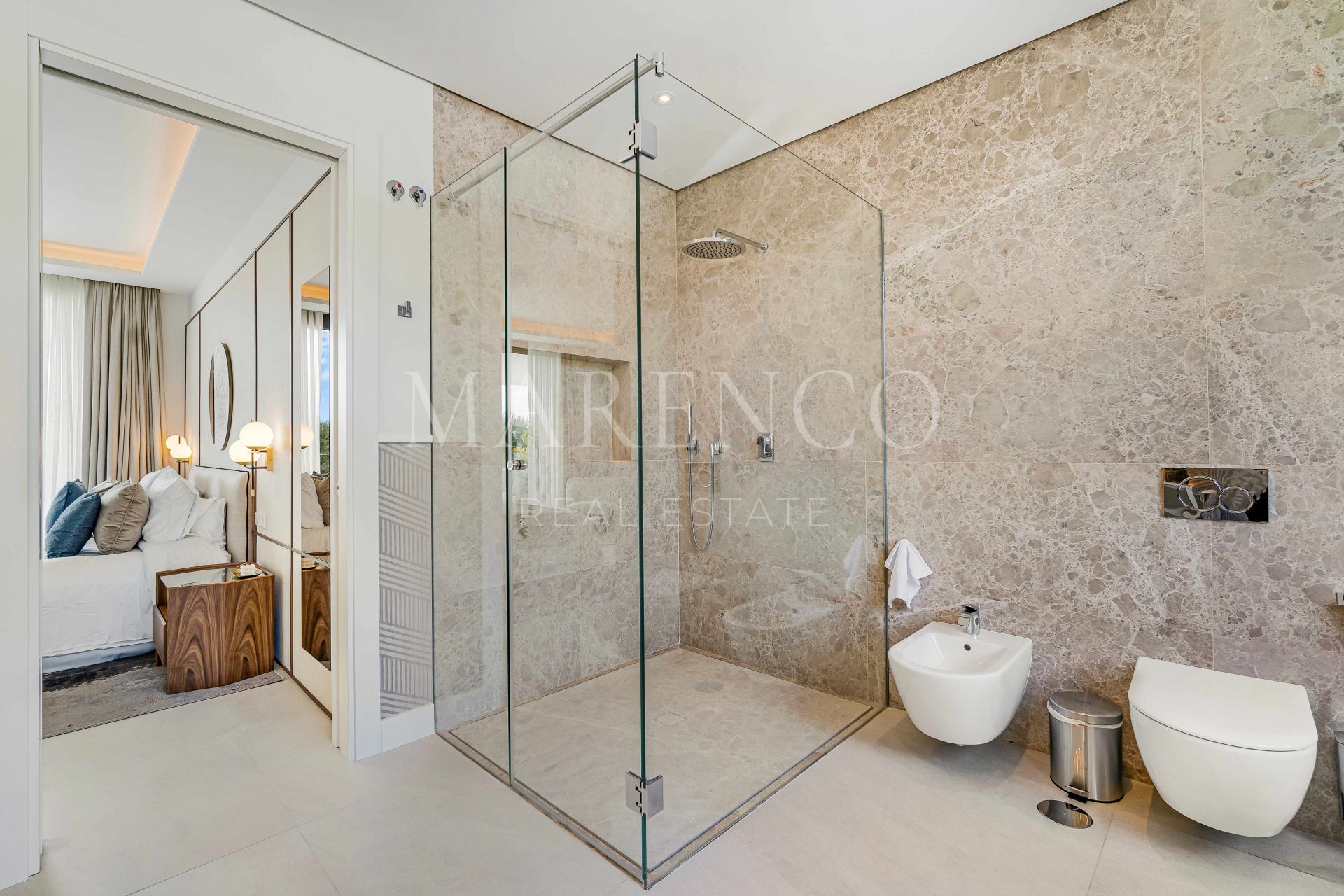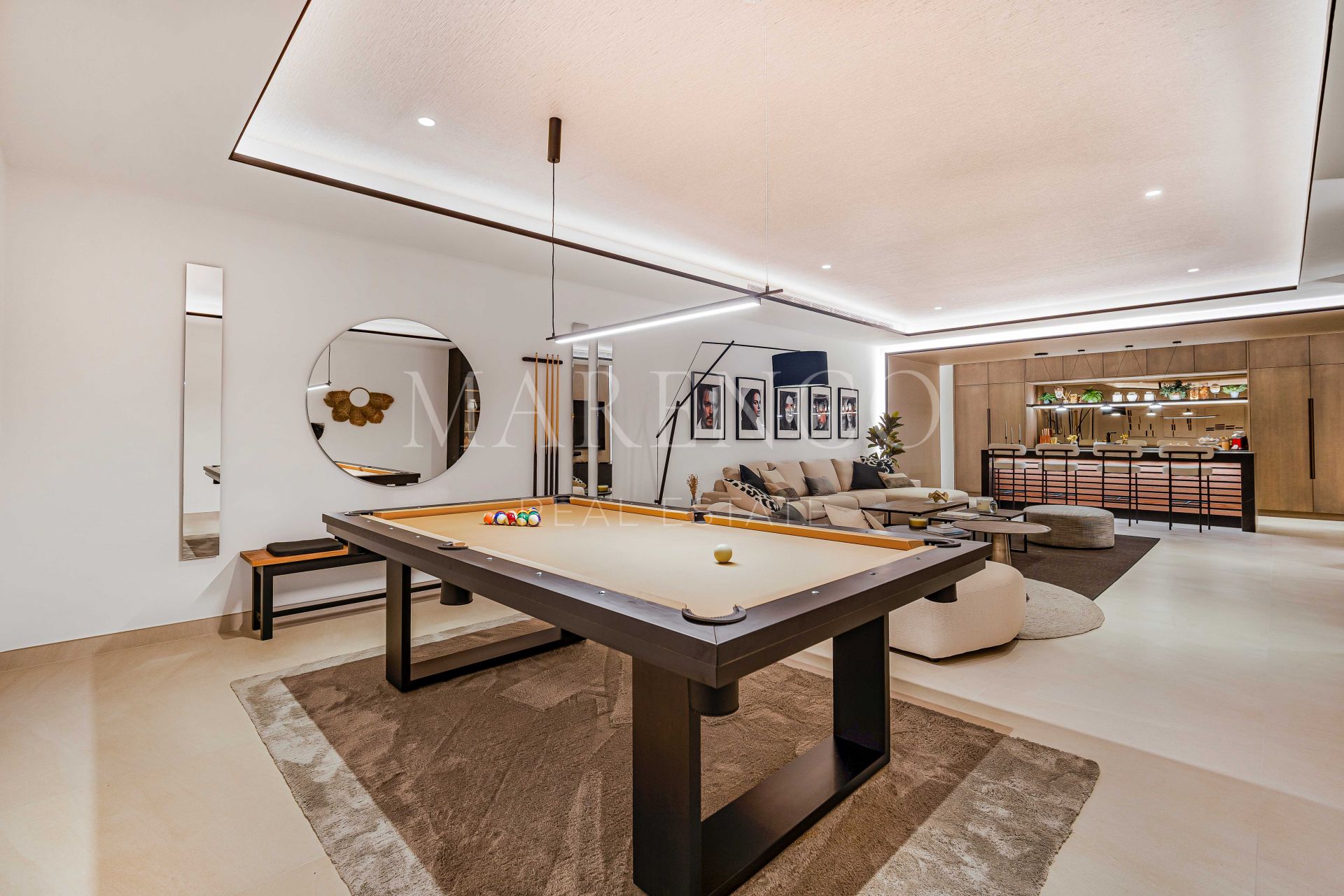 En la primera planta se encuentran dos suites para invitados; una lujosa suite principal con vestidor y una terraza privada. Desde este nivel también se accede a un amplio solárium con espectaculares vistas al mar, equipado con jacuzzi y cocina al aire libre. El nivel inferior de la propiedad ofrece una sala de entretenimiento con mesa de billar, salón y bar; dos suites para invitados; y acceso al garaje.