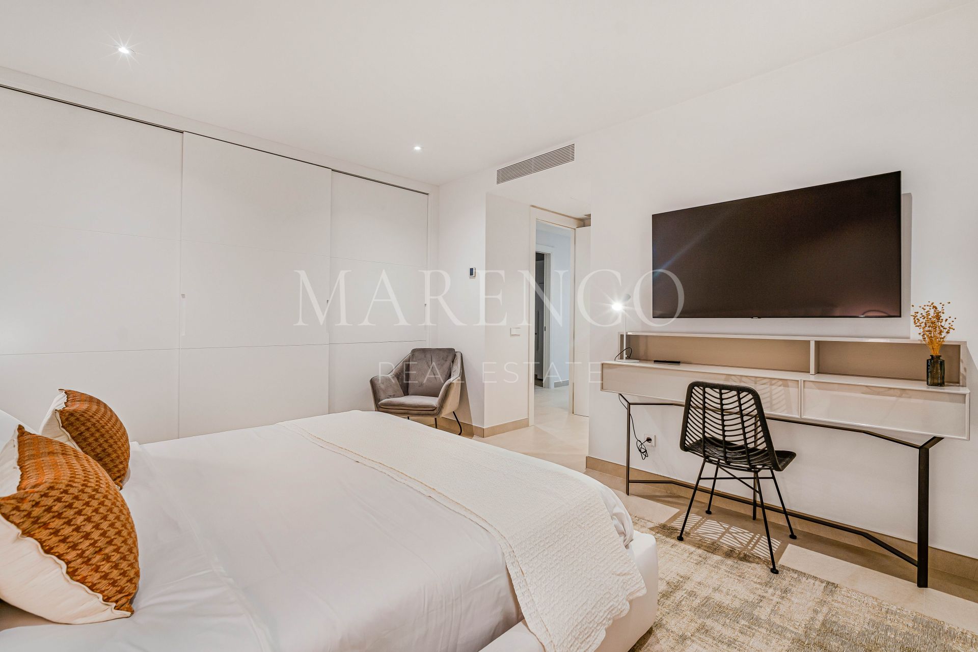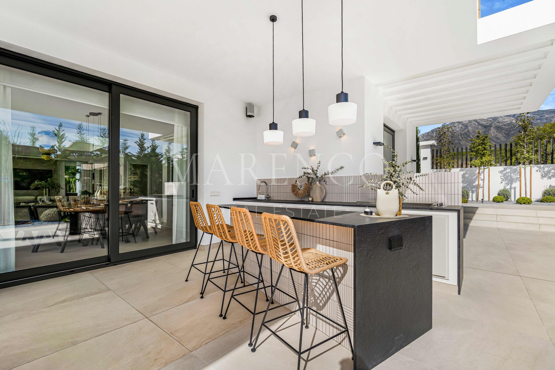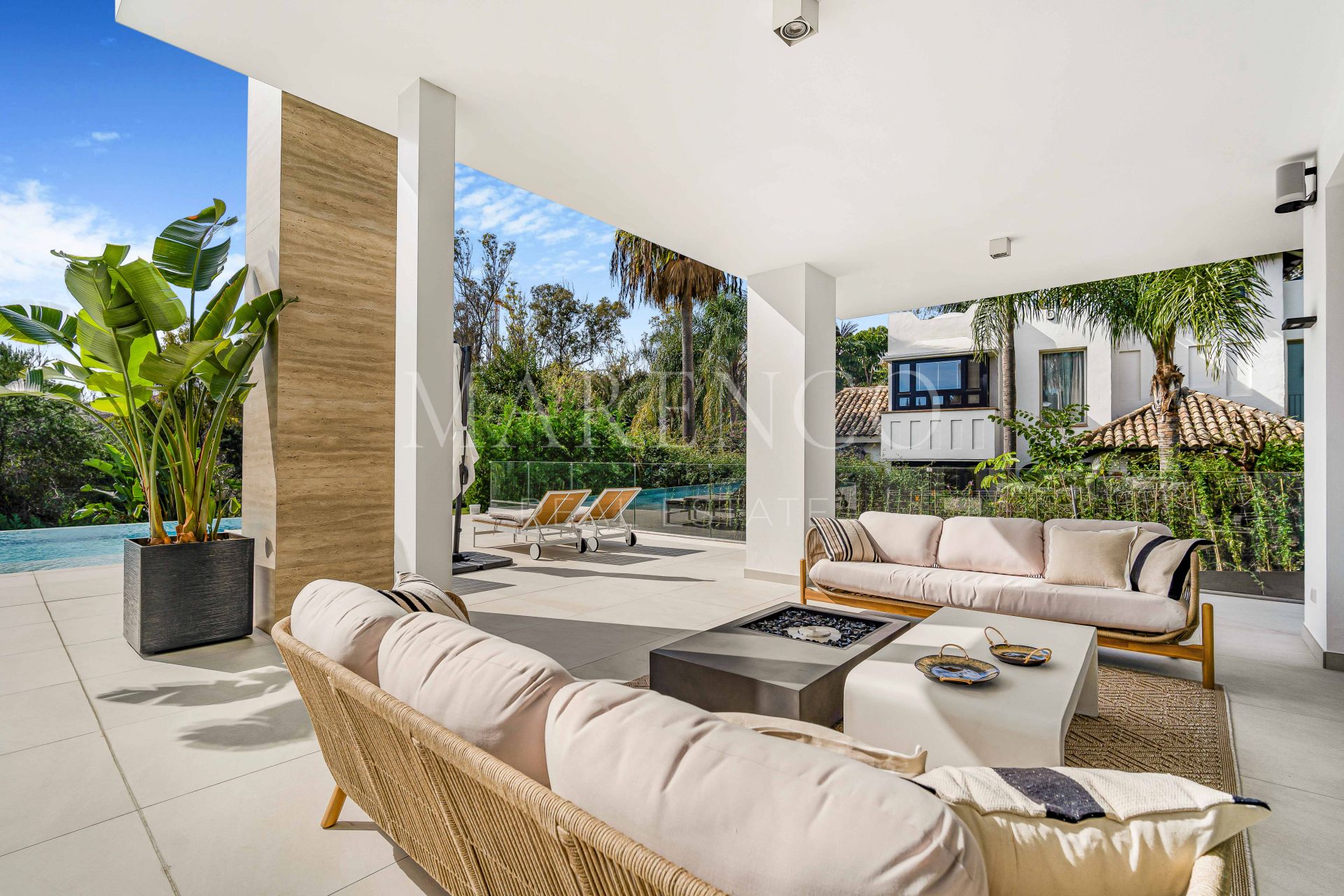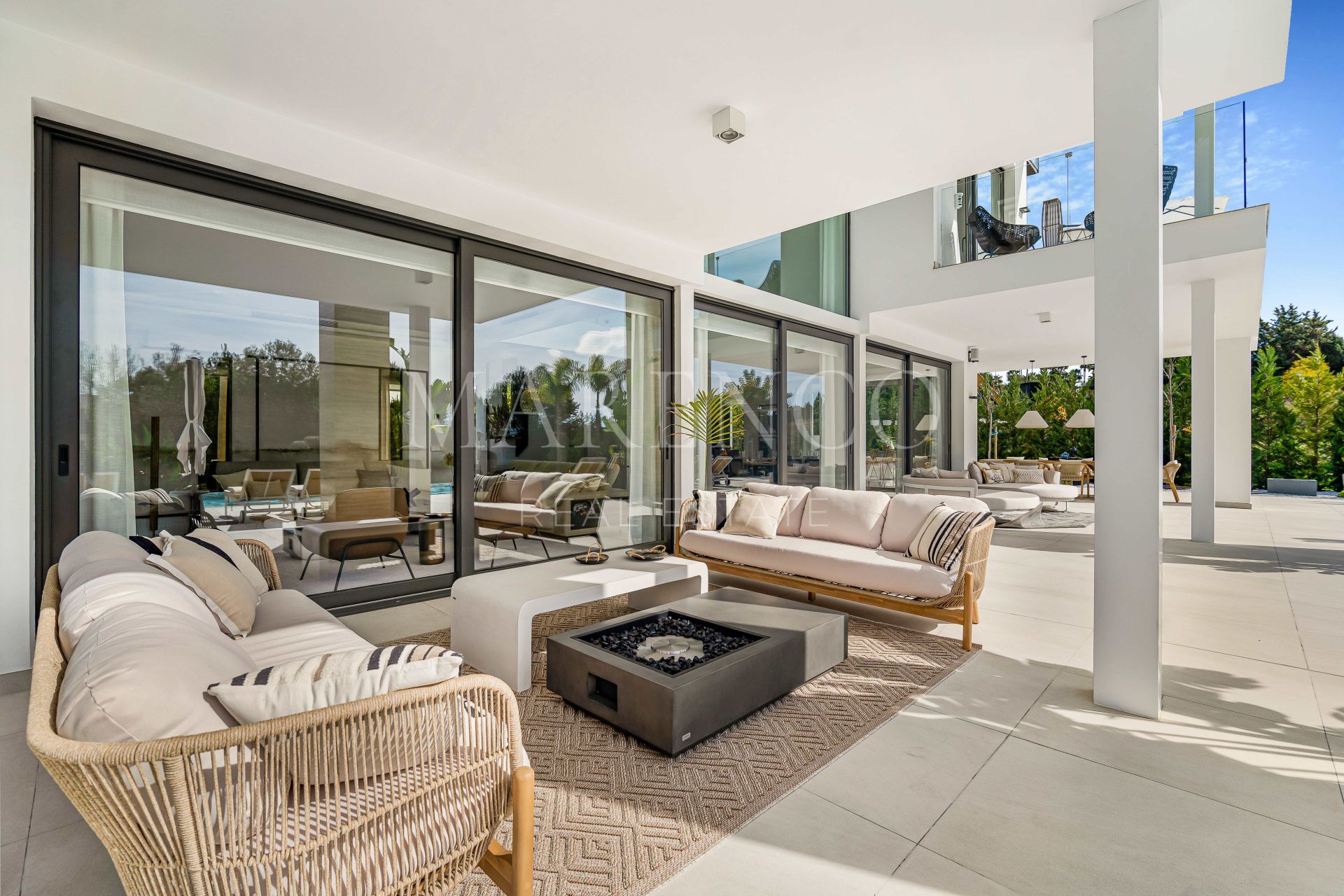 Villa completamente nueva de seis habitaciones, orientada al sur, en Lomas del Marqués, una exclusiva comunidad cerrada situada justo encima del Puente Romano en la Milla de Oro de Marbella; a poca distancia a pie de la playa y con fácil acceso tanto a Puerto Banús como al centro de Marbella. Esta impresionante propiedad cuenta con un impecable jardín privado paisajístico con piscina climatizada; una sala de estar y comedor de concepto abierto con acceso directo al jardín; una cocina de alta gama de diseño abierto; y una suite para invitados.